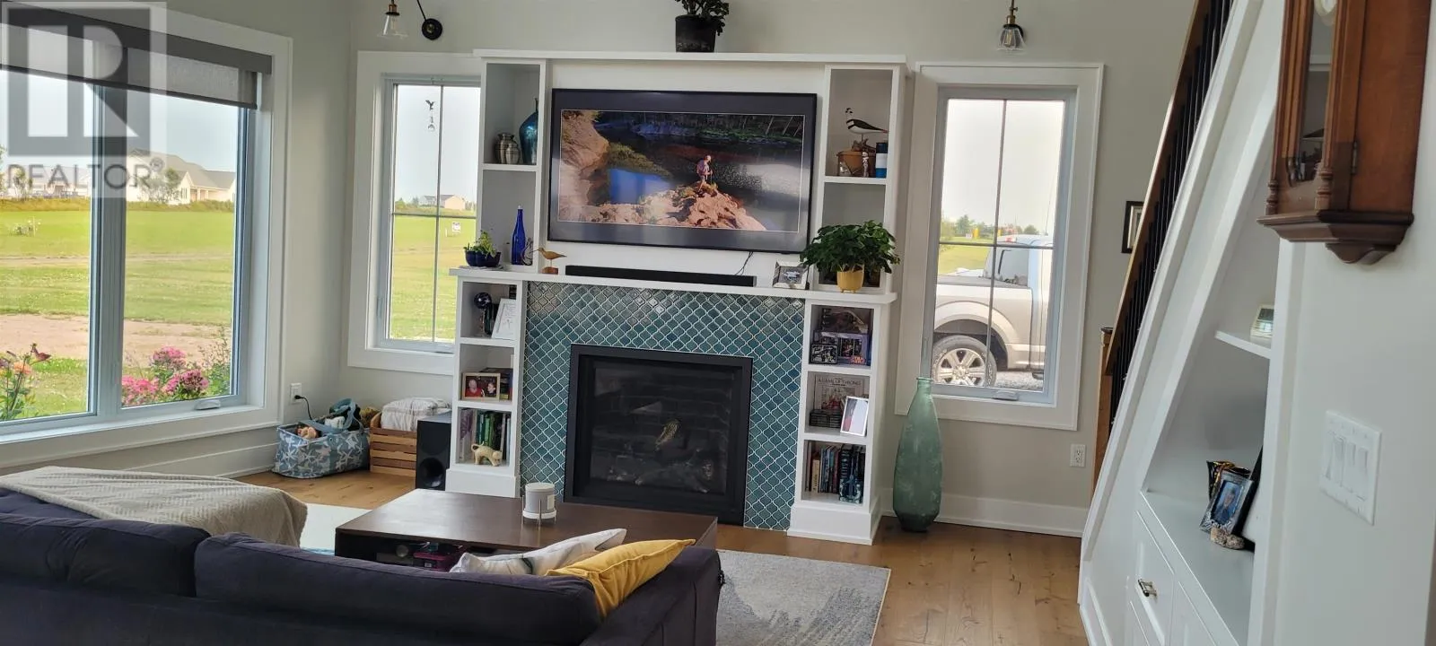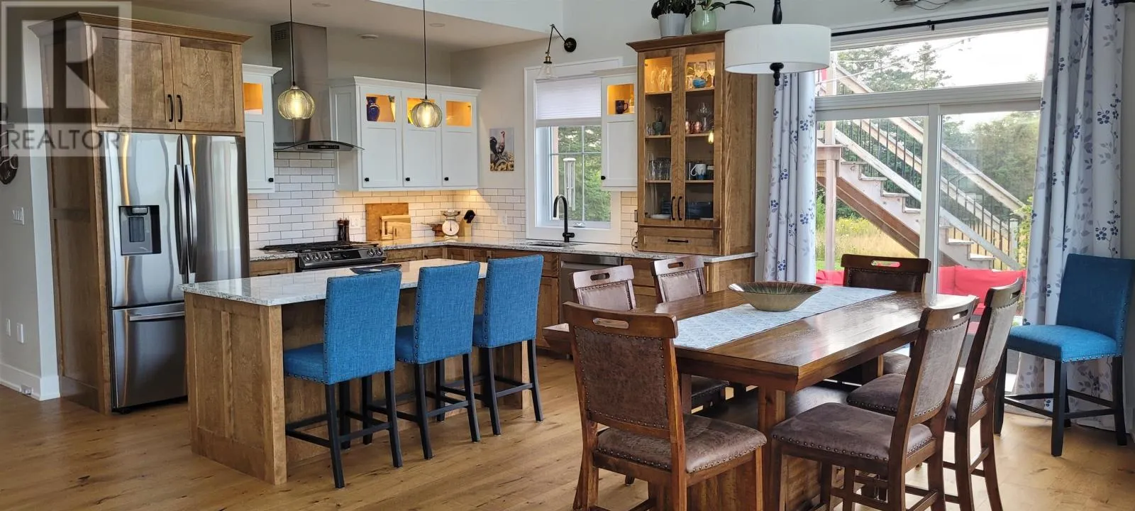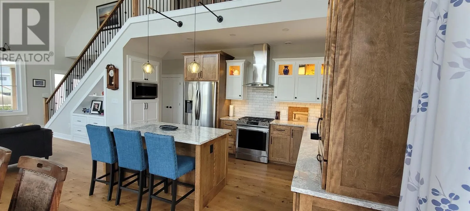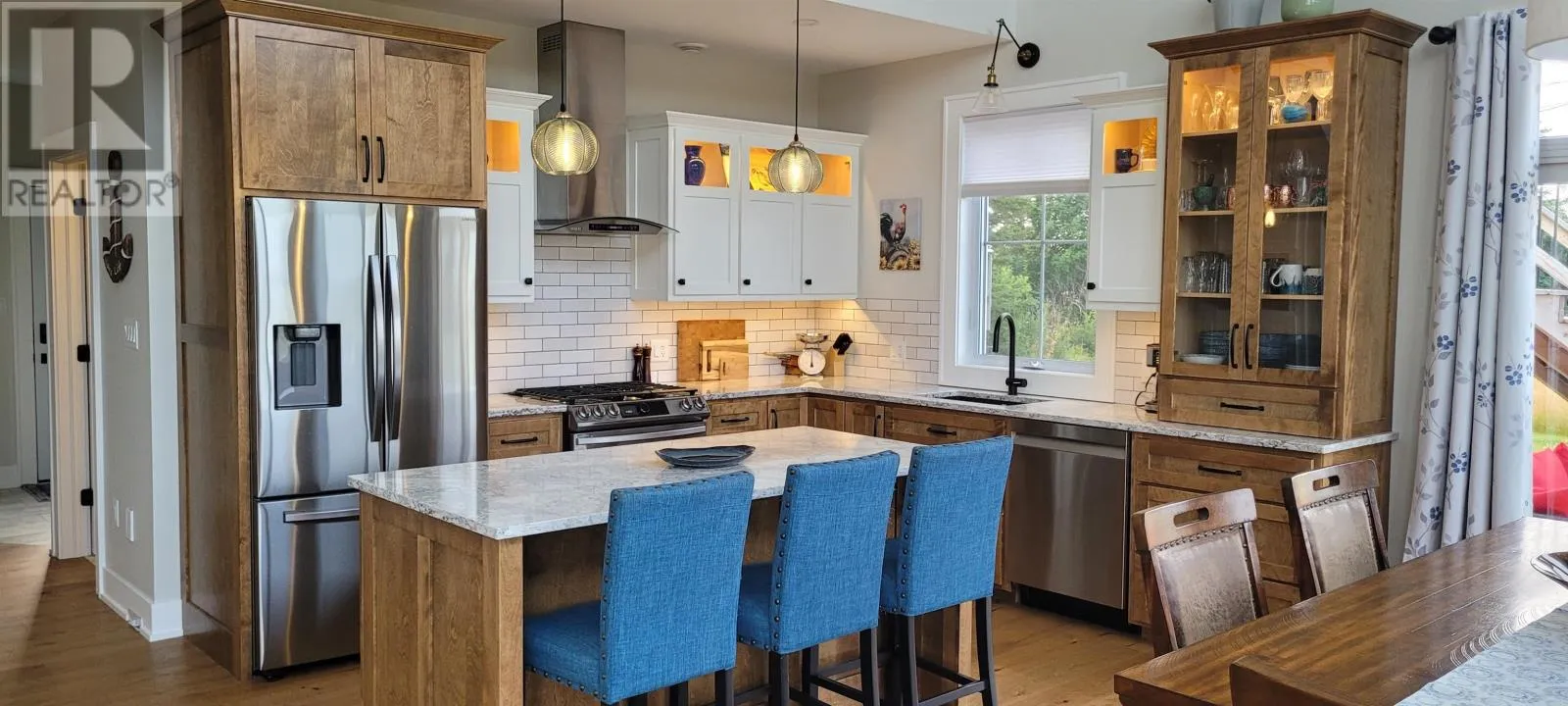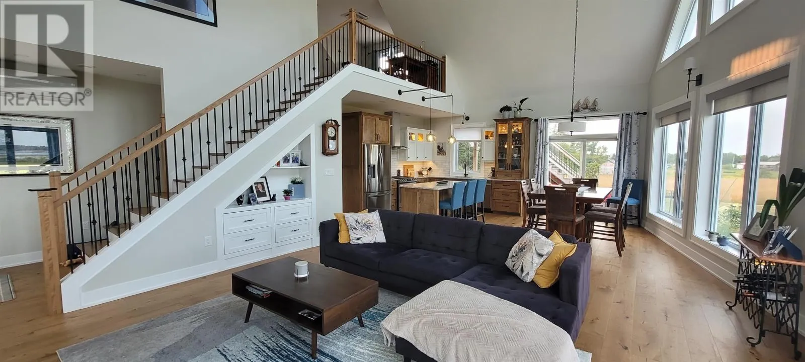 Off Rte # 6 at Gallants Clover Farm Store onto Rte # 243 approx 2 kms on right onto Ocean Vista Dr to last home on left. Custom Built Contemporary Chalet style Waterview home only 2 years old, built with Exceptional Quality throughout on a large level lot in the sought after area of South Rustico within 3 mins of Grocery store with home made baking goods and Gas Bar; a short distance to some of PEI's best Beaches. Also within 10 mins to 6 Golf courses , many Gourmet Restaurants and only 20 mins to the Capital city of Charlottetown & Airport. This home was custom designed by the owners and as soon as you enter the property you get the feel the Owners have put lots of thought into creating a beautiful country paradise. As you enter the home you will feel the spaciousness with the Cathedral ceilings and floor to ceiling windows. The Living/Greatroom with Mantel & Custom Cabinetry encasing the Propane Fireplace and TV. Amazing waterviews, not to mention the Sunrises while having your morning coffee. The Custom built Kitchen C/W Granite Countertops, S/S Appliances, Large Island, Pantry with pullouts & Built in Microwave and High volume Range hood over propane Cooktop & Oven and 36" Fridge. Dining room off kitchen with Patio Door to 28' x 14' Concrete Patio. A Guest bedroom , Full Bath c/w Heated floor, Laundry room c/w Heated floor & Washer & Dryer and Utility room complete main floor. Engineered Hardwood flooring throughout. Beautiful open Staircase leads to Owners suite with spacious Bedroom, En-Suite bath with walk-in shower c/w Heated floor and large Walk-in Closet along with another Patio Door to a 10' x 14' Deck with views of the Ocean!! and stairs to concrete patio. Many built-ins throughout add to the convenience for storage. The detached 24' x 28' Heated Garage with 10'6 Ceiling is ideal to keep you Vehicle and any other pcs of equipment along with a great workshop. A very nice garden producing your own Vegetables and flowers with Sunflowers , etc. This home is a Must to view!! Note: All measurements are approximate and should be ver (id:27476)