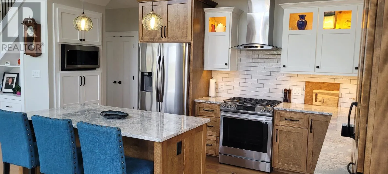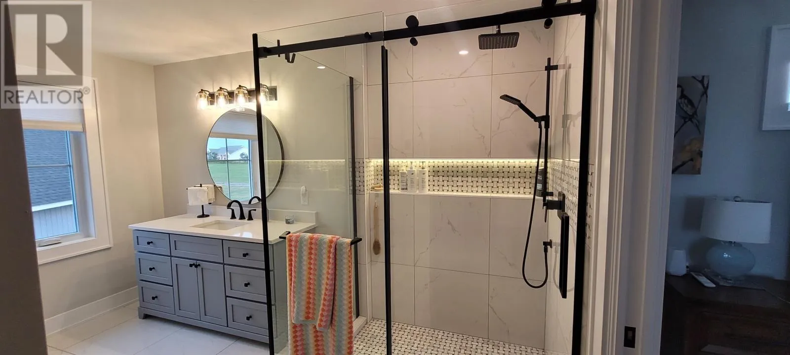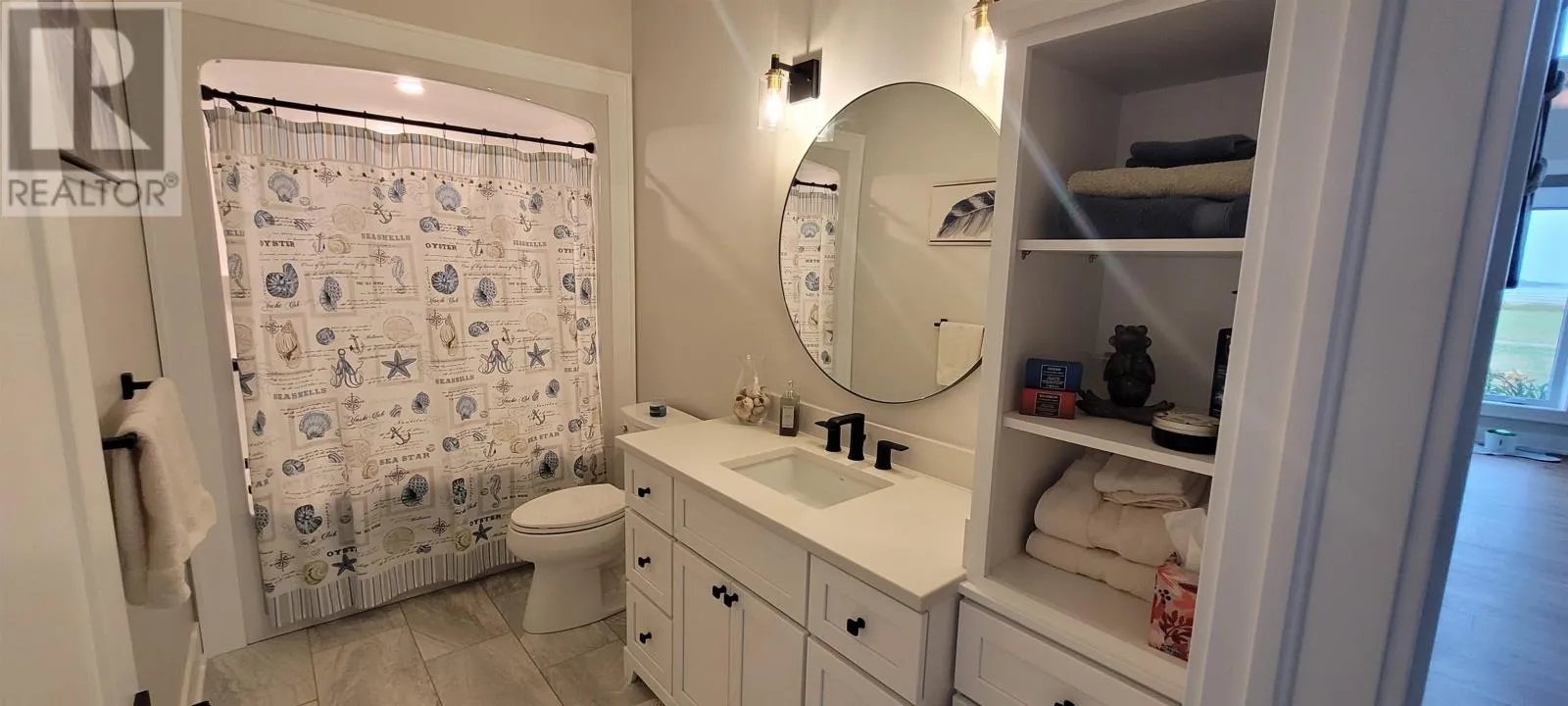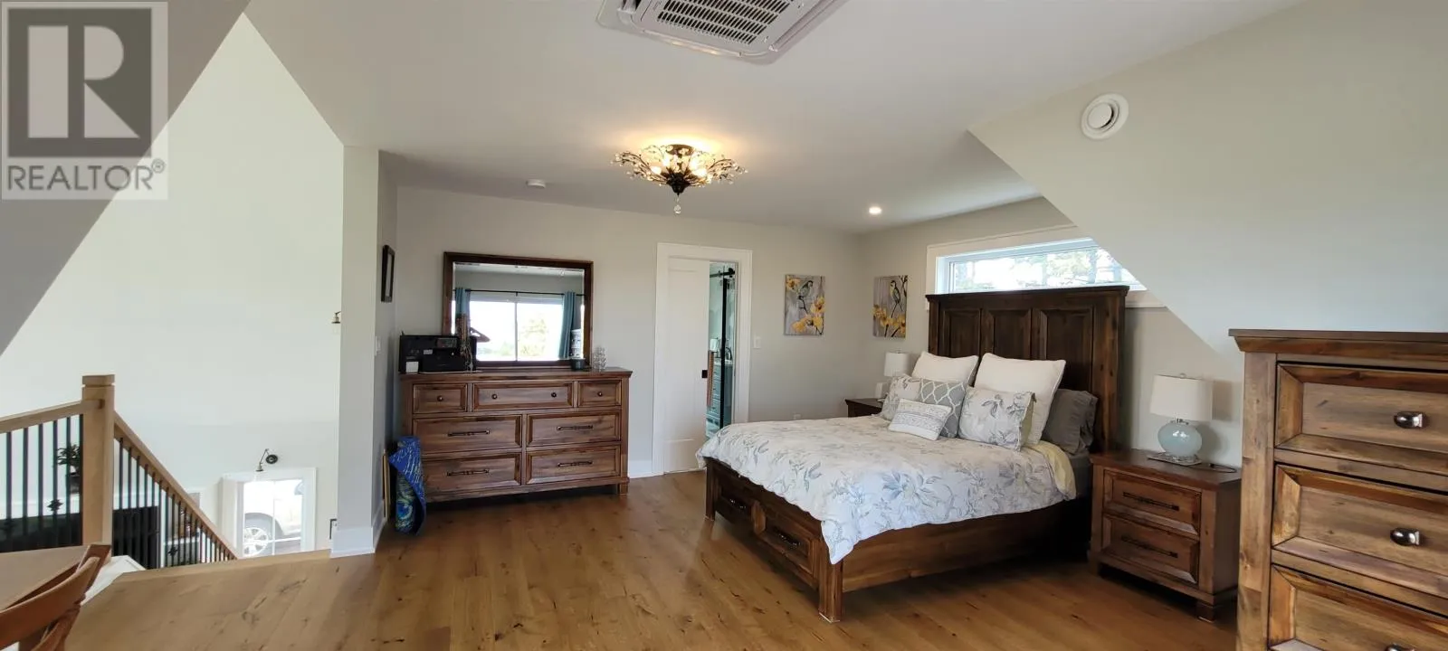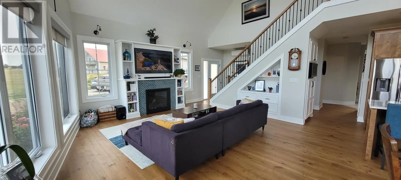 Off Rte # 6 at Gallants Clover Farm Store onto Rte # 243 approx 2 kms on right onto Ocean Vista Dr to last home on left. Custom Built Contemporary Chalet style Waterview home only 2 years old, built with Exceptional Quality throughout on a large level lot in the sought after area of South Rustico within 3 mins of Grocery store with home made baking goods and Gas Bar; a short distance to some of PEI's best Beaches. Also within 10 mins to 6 Golf courses , many Gourmet Restaurants and only 20 mins to the Capital city of Charlottetown & Airport. This home was custom designed by the owners and as soon as you enter the property you get the feel the Owners have put lots of thought into creating a beautiful country paradise. As you enter the home you will feel the spaciousness with the Cathedral ceilings and floor to ceiling windows. The Living/Greatroom with Mantel & Custom Cabinetry encasing the Propane Fireplace and TV. Amazing waterviews, not to mention the Sunrises while having your morning coffee. The Custom built Kitchen C/W Granite Countertops, S/S Appliances, Large Island, Pantry with pullouts & Built in Microwave and High volume Range hood over propane Cooktop & Oven and 36" Fridge. Dining room off kitchen with Patio Door to 28' x 14' Concrete Patio. A Guest bedroom , Full Bath c/w Heated floor, Laundry room c/w Heated floor & Washer & Dryer and Utility room complete main floor. Engineered Hardwood flooring throughout. Beautiful open Staircase leads to Owners suite with spacious Bedroom, En-Suite bath with walk-in shower c/w Heated floor and large Walk-in Closet along with another Patio Door to a 10' x 14' Deck with views of the Ocean!! and stairs to concrete patio. Many built-ins throughout add to the convenience for storage. The detached 24' x 28' Heated Garage with 10'6 Ceiling is ideal to keep you Vehicle and any other pcs of equipment along with a great workshop. A very nice garden producing your own Vegetables and flowers with Sunflowers , etc. This home is a Must to view!! Note: All measurements are approximate and should be ver (id:27476)