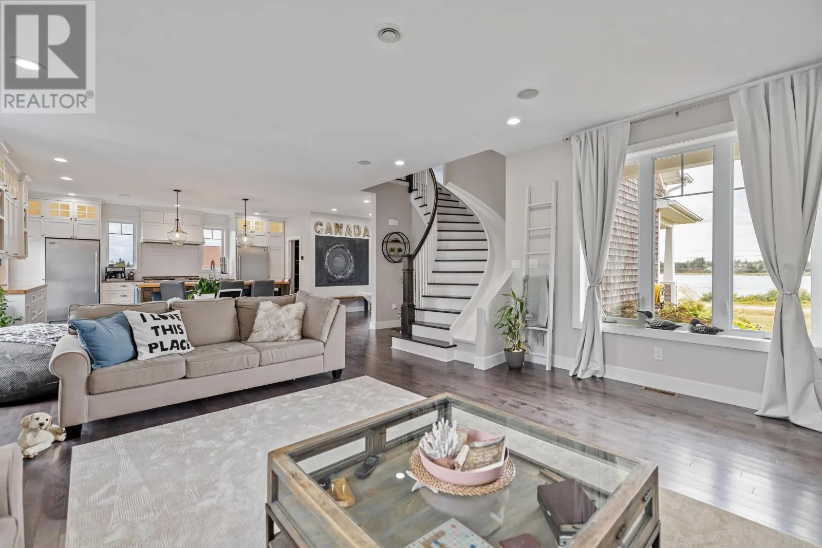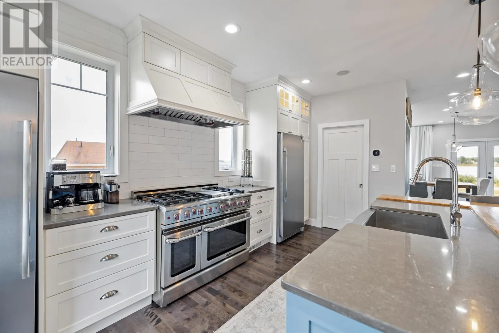 Experience luxury waterfront living with this exceptional estate in Rustico, Prince Edward Island. Offering over 5,500 sq. ft. of finished space, this rare property is only 17 minutes from Charlottetown and minutes from PEI's finest beaches, golf courses, dining and amenities. The main home spans approx. 4,500 sq. ft. and blends comfort and style with three spacious bedrooms, a versatile guest/fourth bedroom, and a private office. The chef?s kitchen features a 48" propane stove, full fridge/freezer, and walk-in pantry, while the dining area and living room capture stunning panoramic water views. A propane fireplace, geothermal heating, and heated basement floors add to the home's warmth and efficiency. Entertainment options include a private theatre, home gym, and unique touches like the custom built Ravenwood Slide, a kid's secret room, and a landscaped backyard with fire pit and basketball court. The primary suite offers a spa-like ensuite and a private deck for sunrise or sunset views. Attached is a 1,500 sq. ft. ICF-built in-law suite with separate entrance and utilities. This two-bedroom space includes a custom accessible bathroom, heated floors, propane fireplace, triple-pane windows, laundry, pantry, and its own well, perfect for extended family, rental income, or Airbnb. The property also features a 950 sq. ft. three-car garage with an unfinished bonus room above, ready for a guest suite, studio, or workshop. The garage is also equipped with a 11kw solar panel system for added energy efficiency. Located in one of PEI's most desirable coastal communities, this estate offers a rare blend of privacy, elegance, and convenience. Whether you seek a family compound, an income-generating property, or a peaceful waterfront escape, this Rustico retreat delivers timeless luxury and endless opportunity. (id:27476)