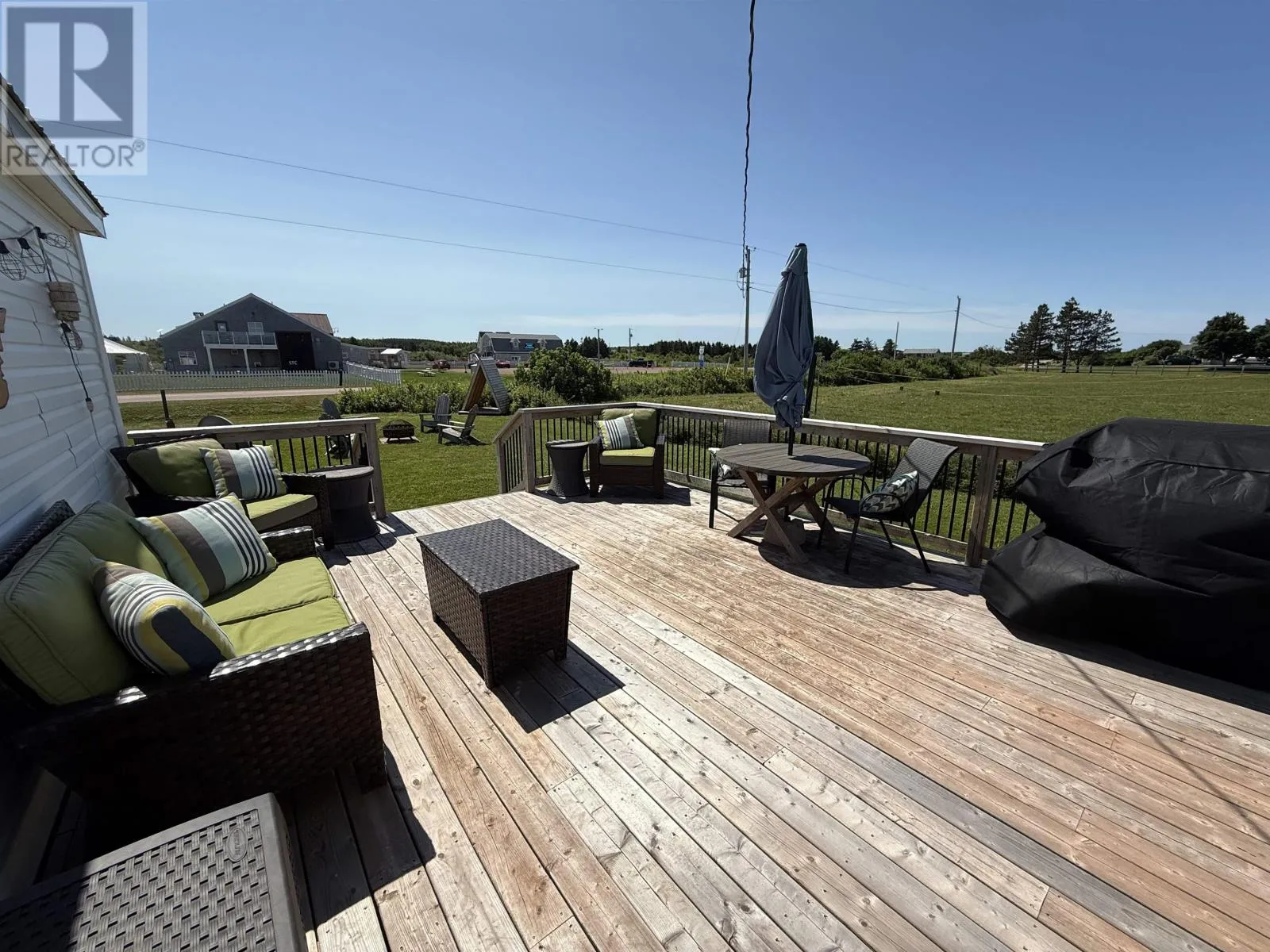Travelling West on Route 12, turn left onto Stompin Tom Road in Skinners Pond, first house on the left. Tucked away in the heart of one of PEI's most serene coastal communities, this beautiful 2 bedroom property is your dream escape - whether you are seeking a year round retreat, a profitable rental, or your own private getaway just a stones throw from the ocean. When you step inside you will be instantly impressed, this house comes fully furnished and professionally decorated. Every detail is perfect from the bright airy living room to the eat in kitchen to the cozy bedrooms. Outside enjoy an expansive deck with ocean views is the perfect place to BBQ or simply hang out with family and friends. For added versatility, a heated, furnished, and screened-in shed offers the ideal bonus space ? think guest overflow, a reading nook, or your own creative studio. (id:27476)