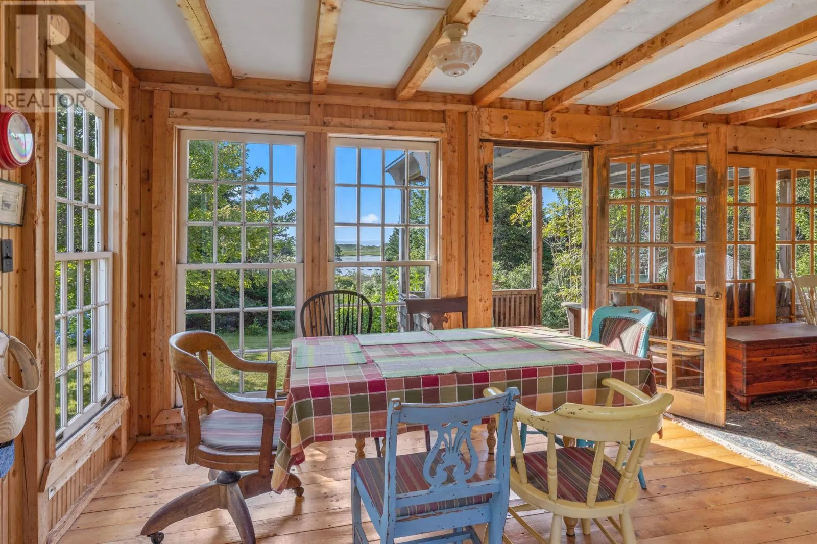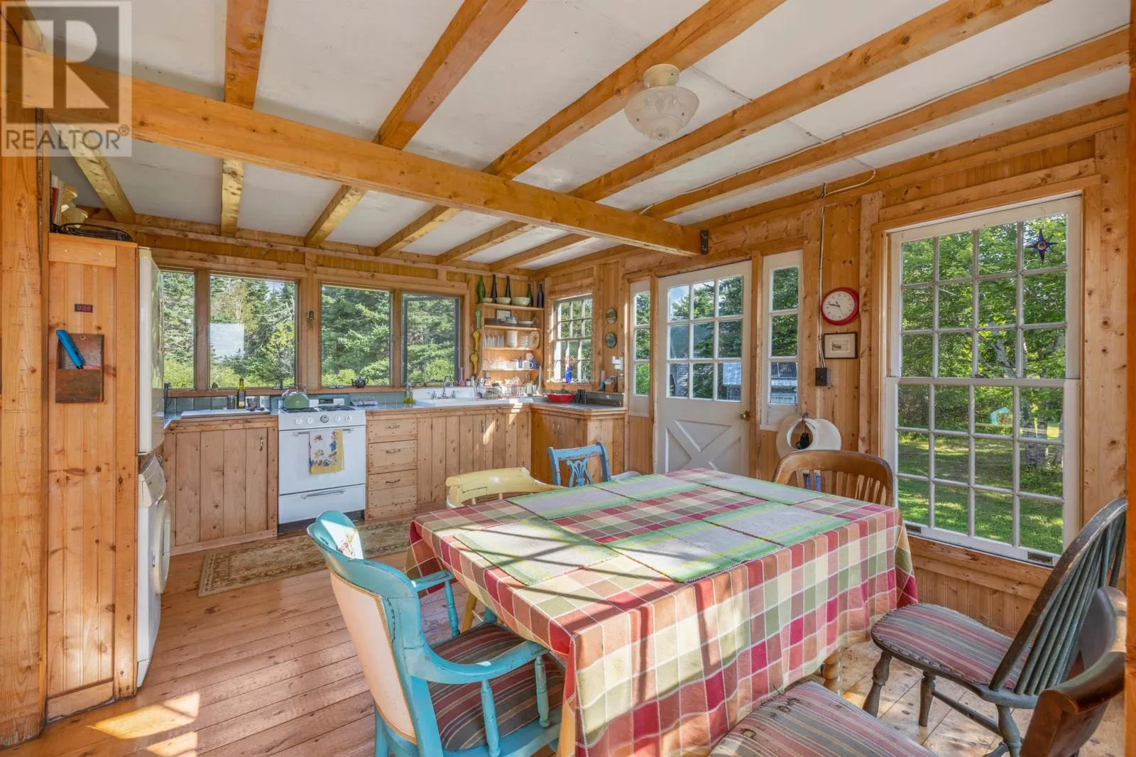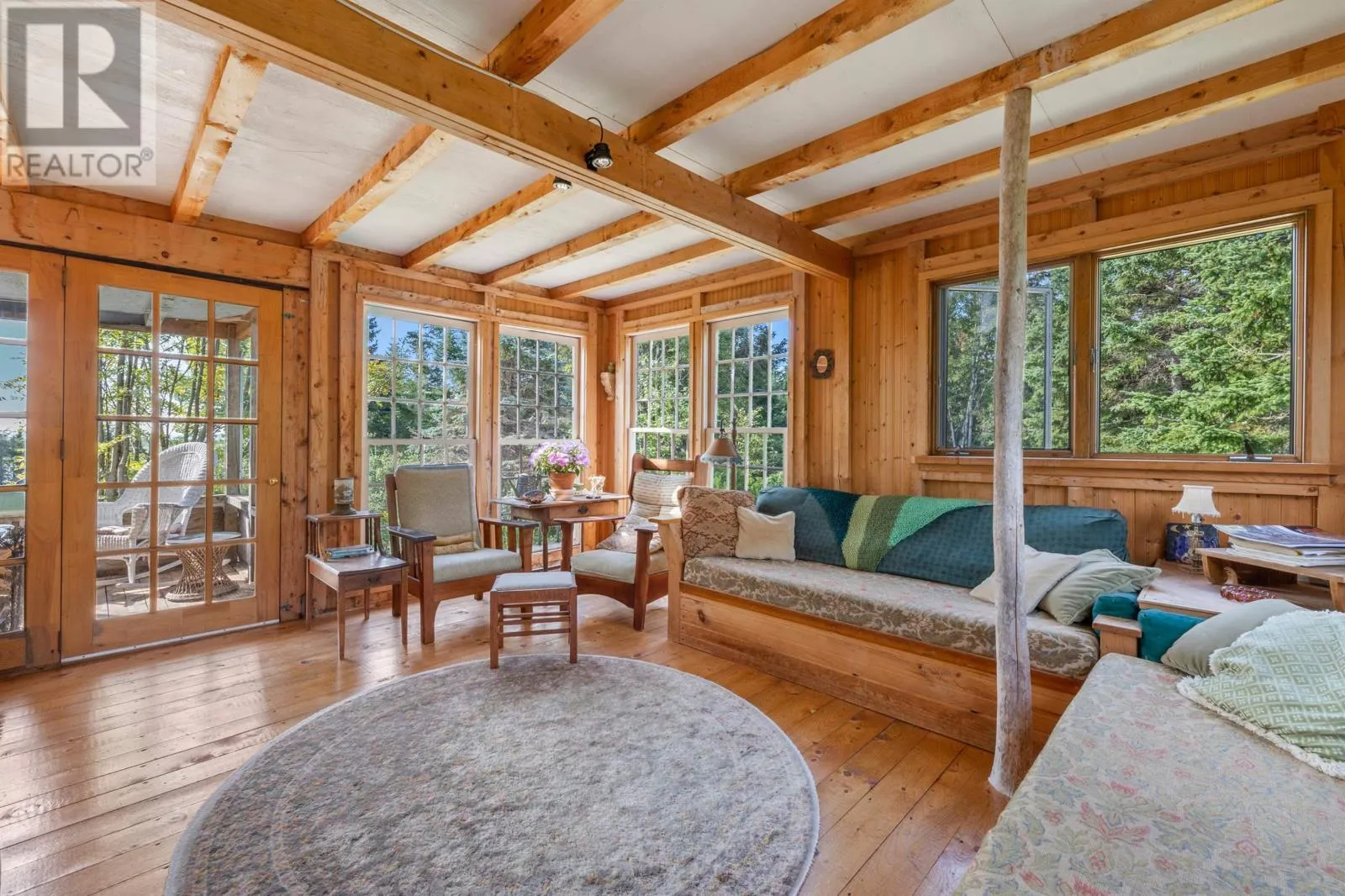 Discover your private paradise on this exceptional 12-acre off-the-grid property, perfectly nestled along the pristine shores of South Lake, near East Point. This unique retreat offers a rare opportunity to embrace nature in all its splendor, with 660 feet of frontage on the tranquil waters of South Lake and a short canoe paddle to a breathtaking white sandy beach. The property features a charming main house and three cozy cabins, Main house is 1024 sqft, 2 of the cabins are each 288 sqft and the third smaller cabin us 200 sqft. A detached garage/workshop, all exuding rustic charm. The main house and two of the cabins are fully equipped with solar power and running water, making them ready for Immediate use. The third, smallest cabin is a blank canvas, awaiting your personal touch to connect it to water and power. Tucked away from the hustle and bustle, this serene escape is the ideal setting for a family retreat, where memories are made and cherished. Alternatively, it offers an incredible opportunity as a rental business, sure to captivate guests with its secluded beauty and unique off-grid living experience. This turn-key property must be seen to be believed. Whether you're seeking a personal haven or a lucrative investment, 3996 East Point Road is sure to impress. Experience the unmatched tranquility and charm of this one-of-a-kind property today. (id:27476)