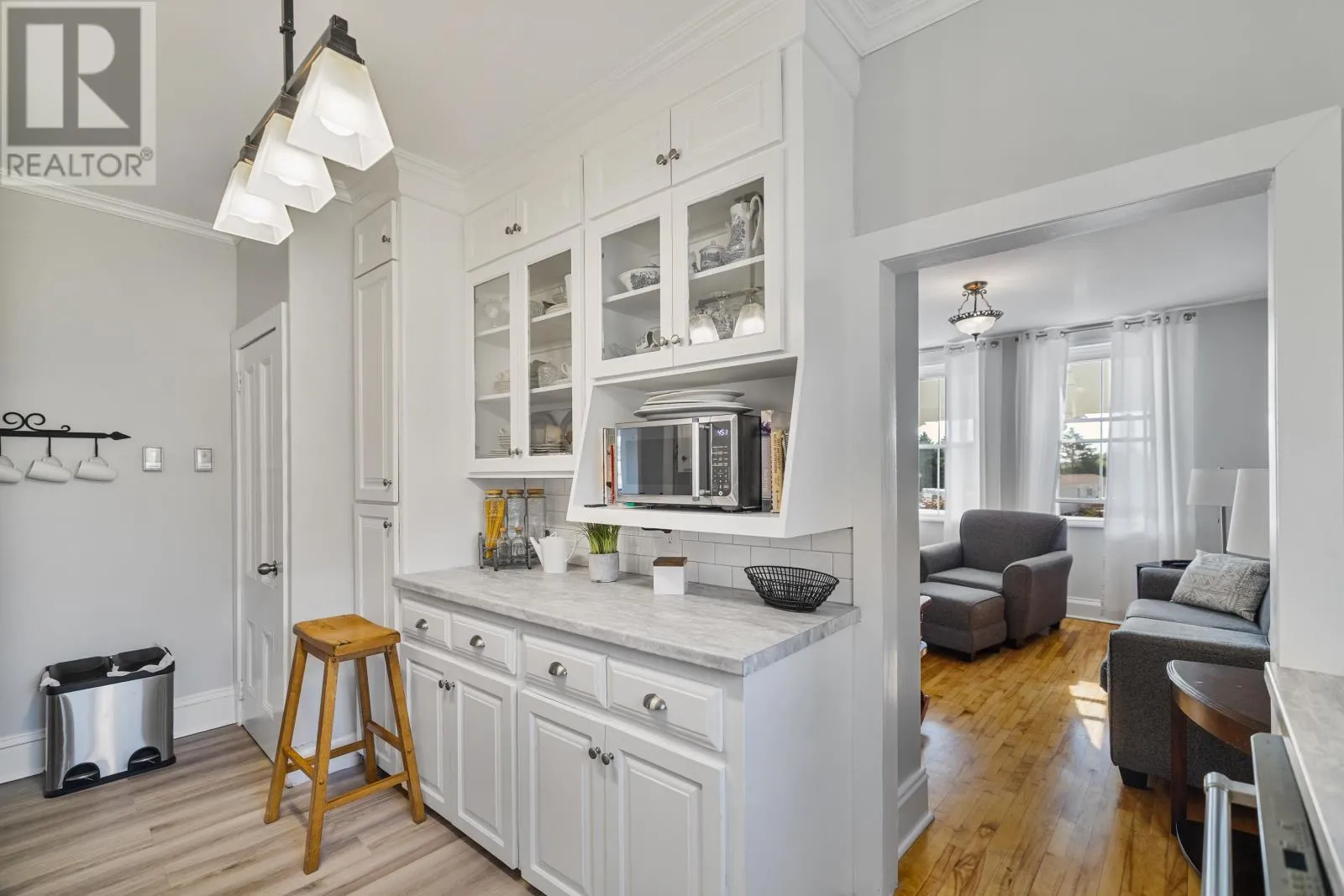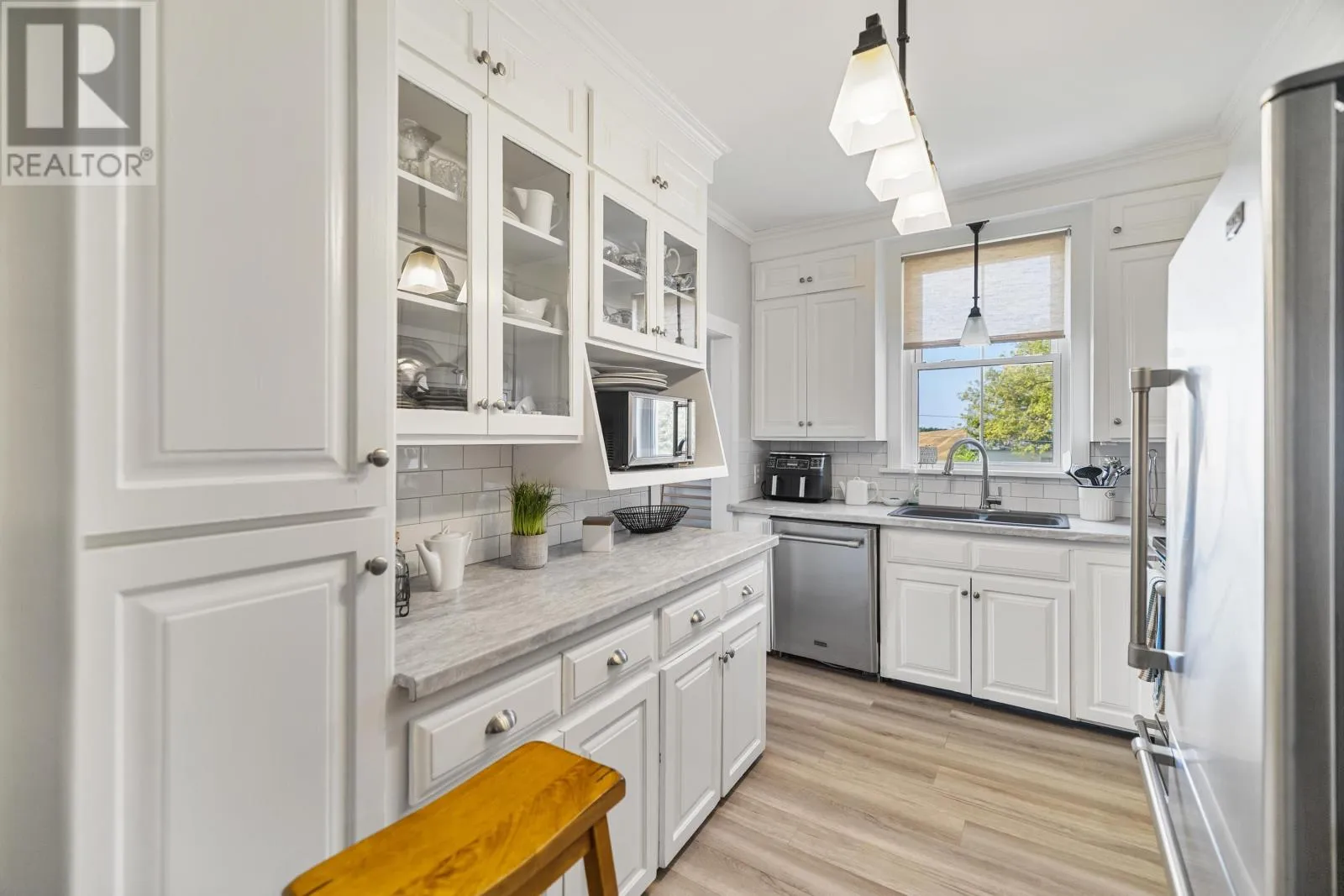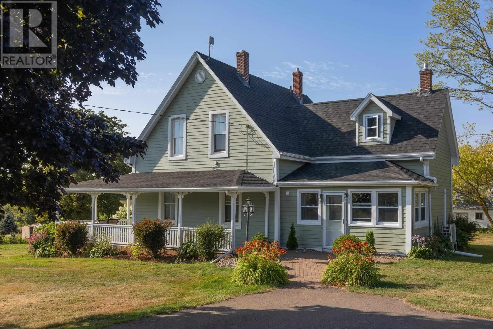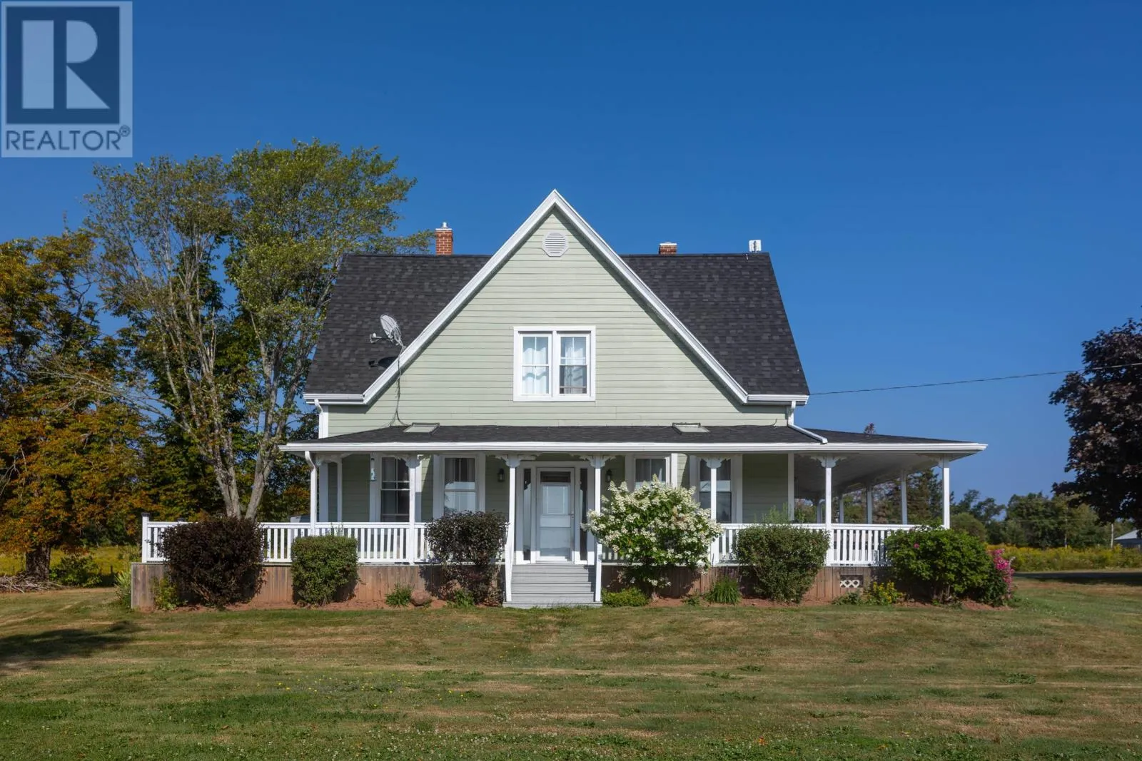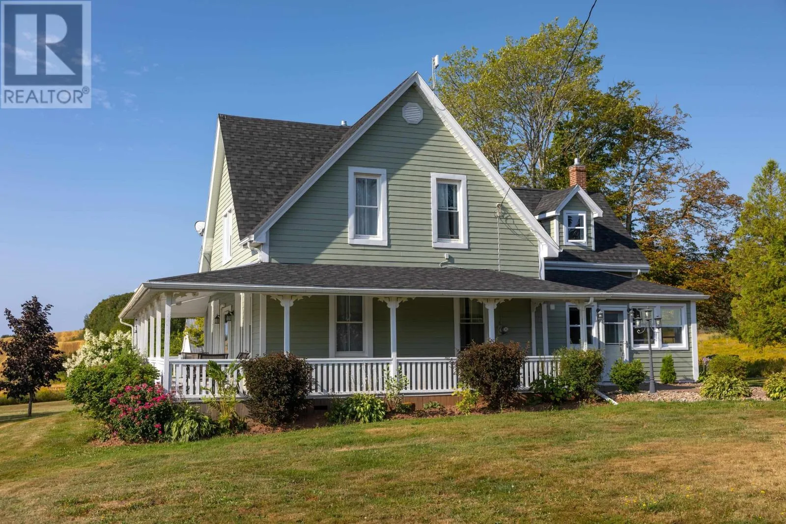 FIRST EXIT IN NORTH RIVER TO STAY ON TCH. ABOUT 12 MINUTES UNTIL YOU SEE W RIVER ROAD ON YOUR LEFT. DRIVE TO THE END, TAKE A RIGHT ONTO ST CATHERINE'S, PROPERTY IS UP A BIT ON YOUR LEFT. This charming 4 bedroom, 2 bathroom farmhouse style home blends timeless character with modern comfort. Its classic green siding and inviting wrap-around porch set the tone for peaceful outdoor living. Inside, light grey walls and a combination of polished hardwood and wood-look flooring create a bright, cohesive flow through the main living spaces. The updated kitchen features crisp white cabinetry, a subway tile backsplash, and ample counter space-perfect for everyday meals or entertaining. The spacious living and dining areas offer warmth and flexibility for family life or hosting guests. Upstairs, cozy bedrooms with unique sloped ceilings add architectural charm, while two full bathrooms provide convenience and comfort. Thoughtfully updated and well-maintained, this home is move-in ready and offers the perfect blend of style, space, and setting. Located in St. Catherines, it offers a peaceful, rural lifestyle defined by its beautiful countryside and a strong sense of community. Located in Queens County, it is conveniently situated just a short drive from the provincial capital of Charlottetown, providing residents with easy access to city amenities, including shopping, dining, and cultural events, while maintaining the tranquility of country living. (id:27476)