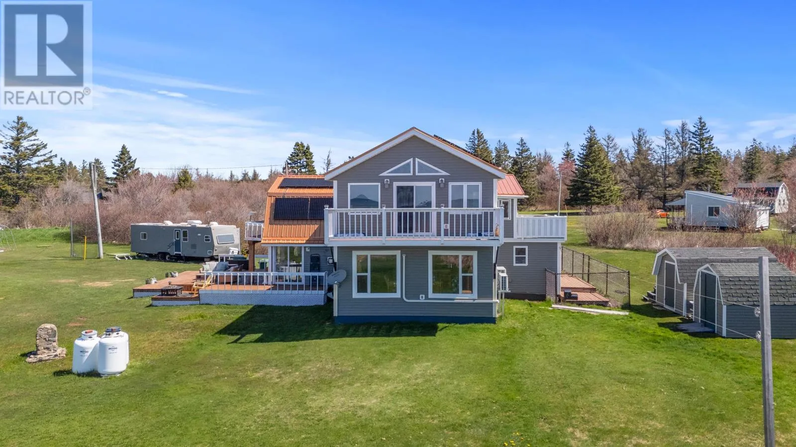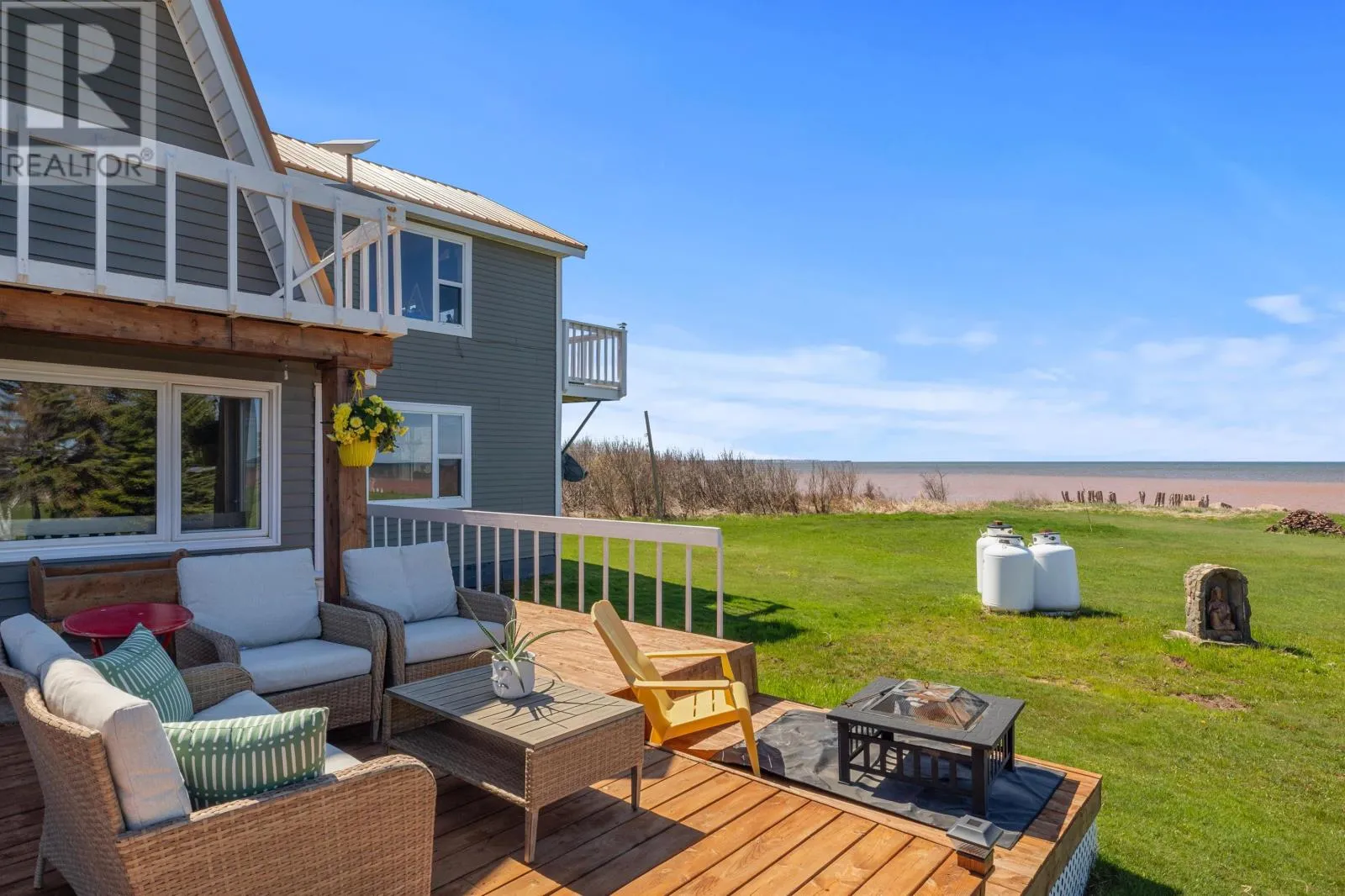 The dream is real and it?s here waiting for you. This home has been lovingly updated and is ready for new owners. Imagine waking up to the sound of the waves rolling over the sandbars and the sea birds diving for prey. With 220 ft of sandy beachfront you can walk directly onto the Northumberland Strait?s sea floor at low tide and explore the sand bars for hours on end. At high tide swim, kayak, paddle board or kite surf for miles. There will be nothing holding you back to enjoy any salt water activity you can imagine. Located only 45 min to the Confederation Bridge and 20 minutes to the local grocery store. This home boasts two bedrooms on the upper level, with the primary suite featuring a private staircase from the kitchen and a brand new four-piece bathroom. The private balcony off the primary offers stunning, unobstructed views of the strait. The second bedroom is just as impressive, complete with a wraparound mezzanine that overlooks the living room and its own private balcony. On the main level is a third bedroom which is currently being used as the laundry and can easily be converted back. The brand new custom kitchen was thoughtfully designed and locally built using reclaimed wood, with lots of counter space & handmade concrete sink.  Some of the renovations include but not limited to - new kitchen, primary bathroom, main bath cabinets, fixtures, appliances, flooring, heat pumps, propane fireplace, solar panels & new metal roof. All of this plus upgraded insulation, electrical & plumbing. All of this and a bonus ?bunkhouse? trailer for summer guests is included. Properties like this may only come along once or twice in your lifetime. This is your chance, act now before it's gone. All measurements deemed correct & should be verified by the purchaser is important. (id:27476)