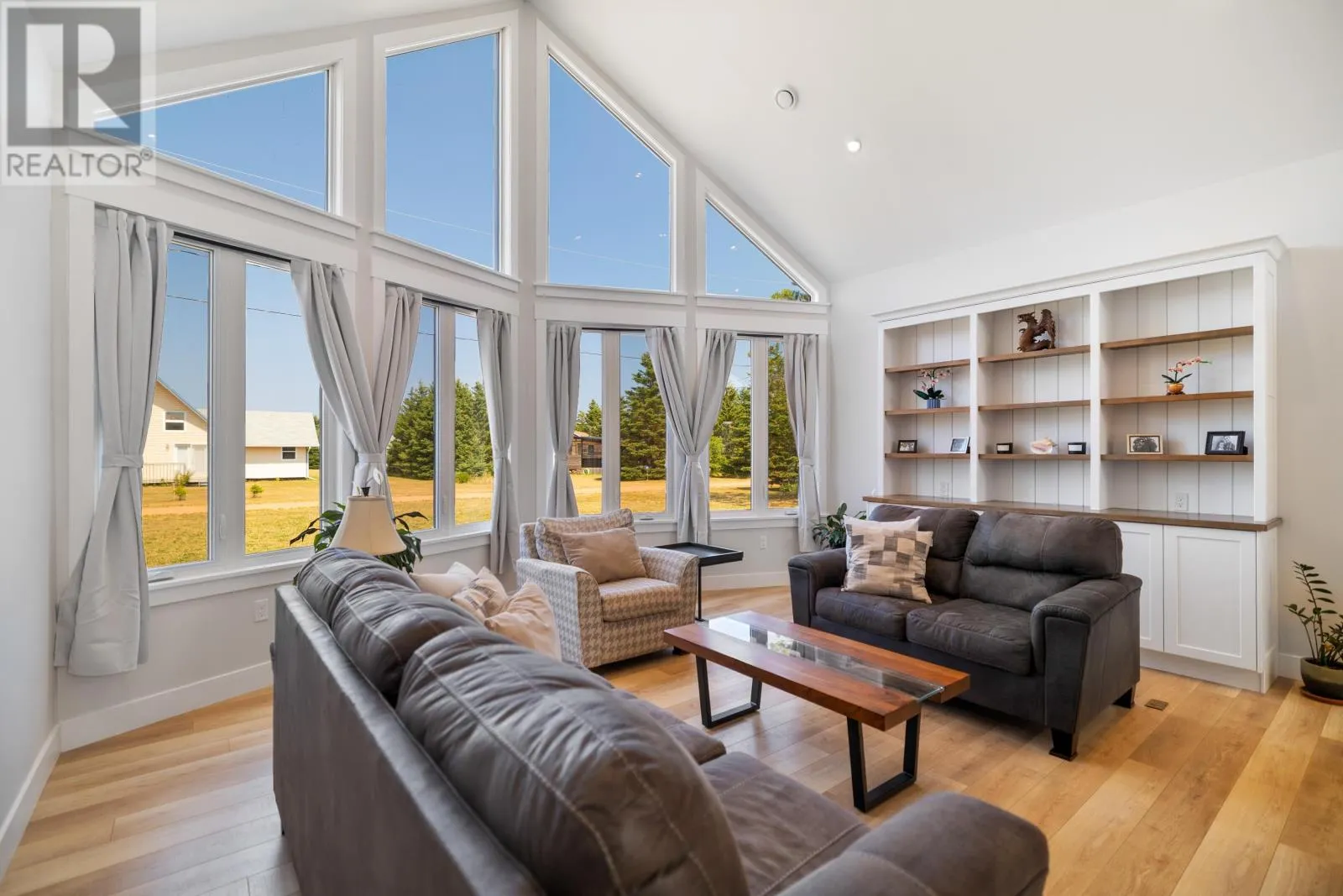 Experience the very best of Island living in this newly constructed masterpiece by Gill Construction, featuring a custom kitchen by John Dunphy?perfectly designed for cooking, gathering, and making memories. Step into the soaring cathedral ceilings and be greeted by an abundance of windows, flooding the open-concept living space with natural light and framing serene country and coastal views. At the heart of the home, a two-sided propane fireplace adds warmth and ambiance to both the living and dining areas. The luxurious primary suite offers a spa-like ensuite bath and a generous walk-in closet, while two additional well-sized bedrooms share a beautifully appointed full bath. Designed for both relaxation and fun, this home features a private hot tub room, an outdoor shower for rinsing off after beach days, and a large screened-in sun porch for morning coffee or evening drinks. The laundry room is as stylish as it is functional, complete with a custom dog bath?making life easier for both two- and four-legged family members. Just minutes from the pristine 5-mile stretch of white sand at St. Peter's Harbour Beach?famed for its rolling dunes?and close to the world-class Crowbush Golf Resort, this property blends modern craftsmanship with timeless coastal charm. (id:27476)