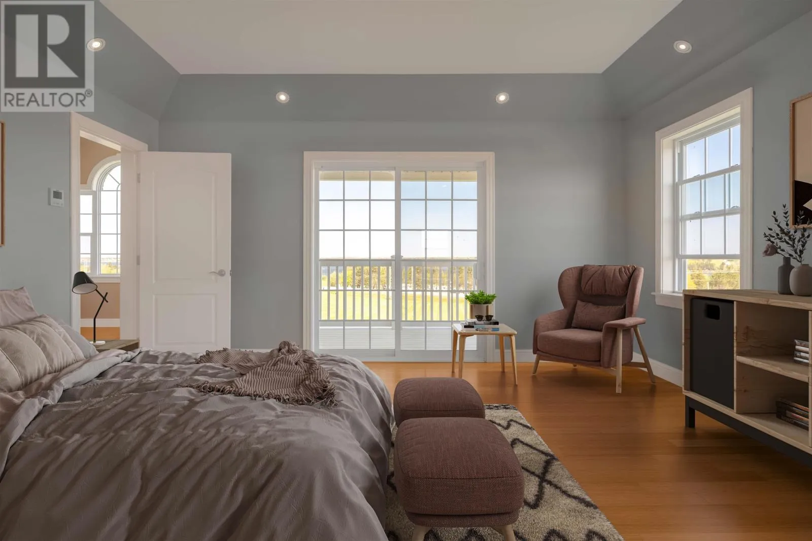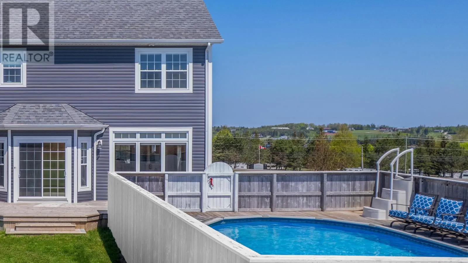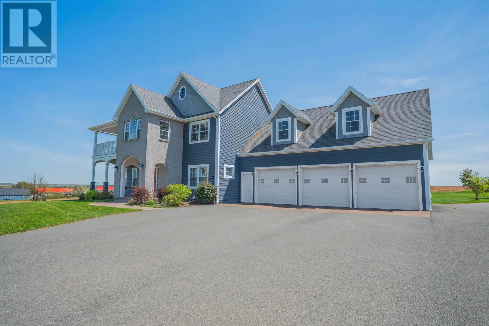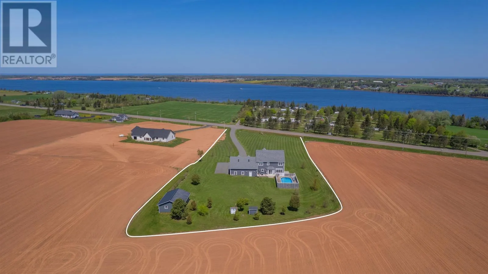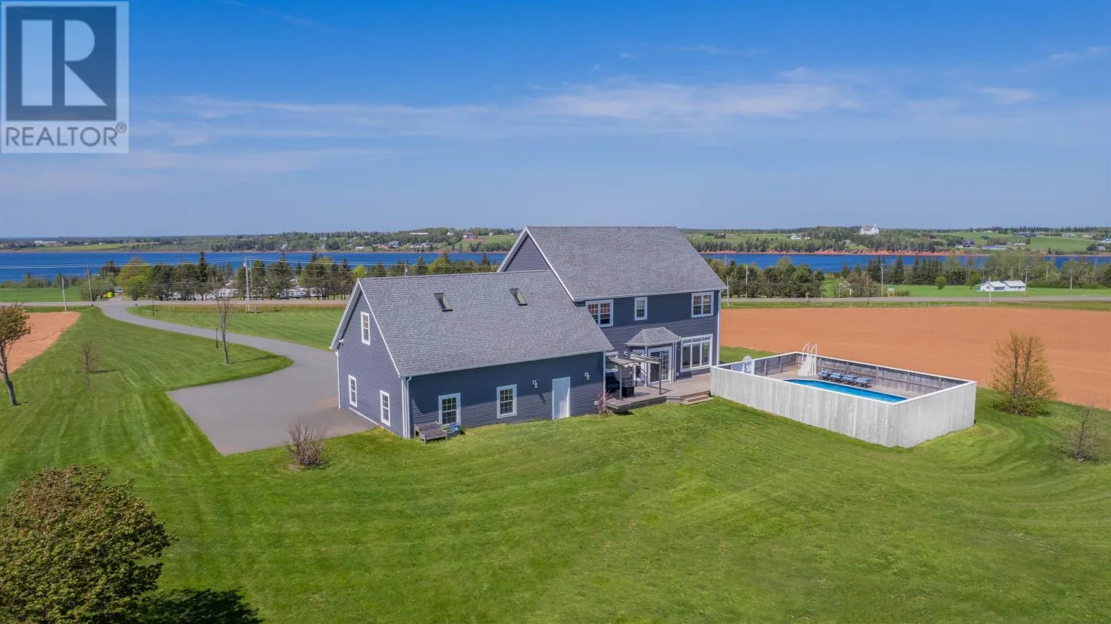 Set on a rise facing the still waters of St. Peters Bay, this estate was designed to feel both rooted and expansive. The approach is formal yet inviting, with clean architectural lines, mature landscaping, and an enduring sense of quiet elegance. Every element of the home has been shaped by function, proportion, and the light that moves across the property from morning to evening. Inside, the main level flows through a series of beautifully scaled rooms. The living room centres on a propane fireplace and opens into a dining area designed for gathering. A custom hardwood kitchen with detailed cabinetry and warm finishes anchors the space. The main floor also includes a dedicated laundry room and access to the heated three-car garage. Upstairs, the primary suite opens to a covered balcony overlooking the bay. The ensuite features a deep soaking tub beneath picture windows and a glass walk-in shower finished with tile. A full dressing room offers generous storage. Two additional bedrooms share the upper floor, along with a full bathroom. The vaulted bonus room above the garage is filled with natural light and offers flexibility for use as a fourth bedroom, studio, or retreat. The lower level includes a half bath and partially finished space with potential for cinema, gym, or additional living. The home is heated with a geothermal system and four ductless heat pumps across five zones. A detached garage offers additional storage or workshop potential. The grounds are bordered by mature trees and curated perennial beds. A heated pool and pergola create an outdoor atmosphere of leisure and refinement. Located minutes from the Nordic Spa and the protected shoreline of Greenwich, this is a property that brings together coastal clarity and lasting architecture. (id:27476)