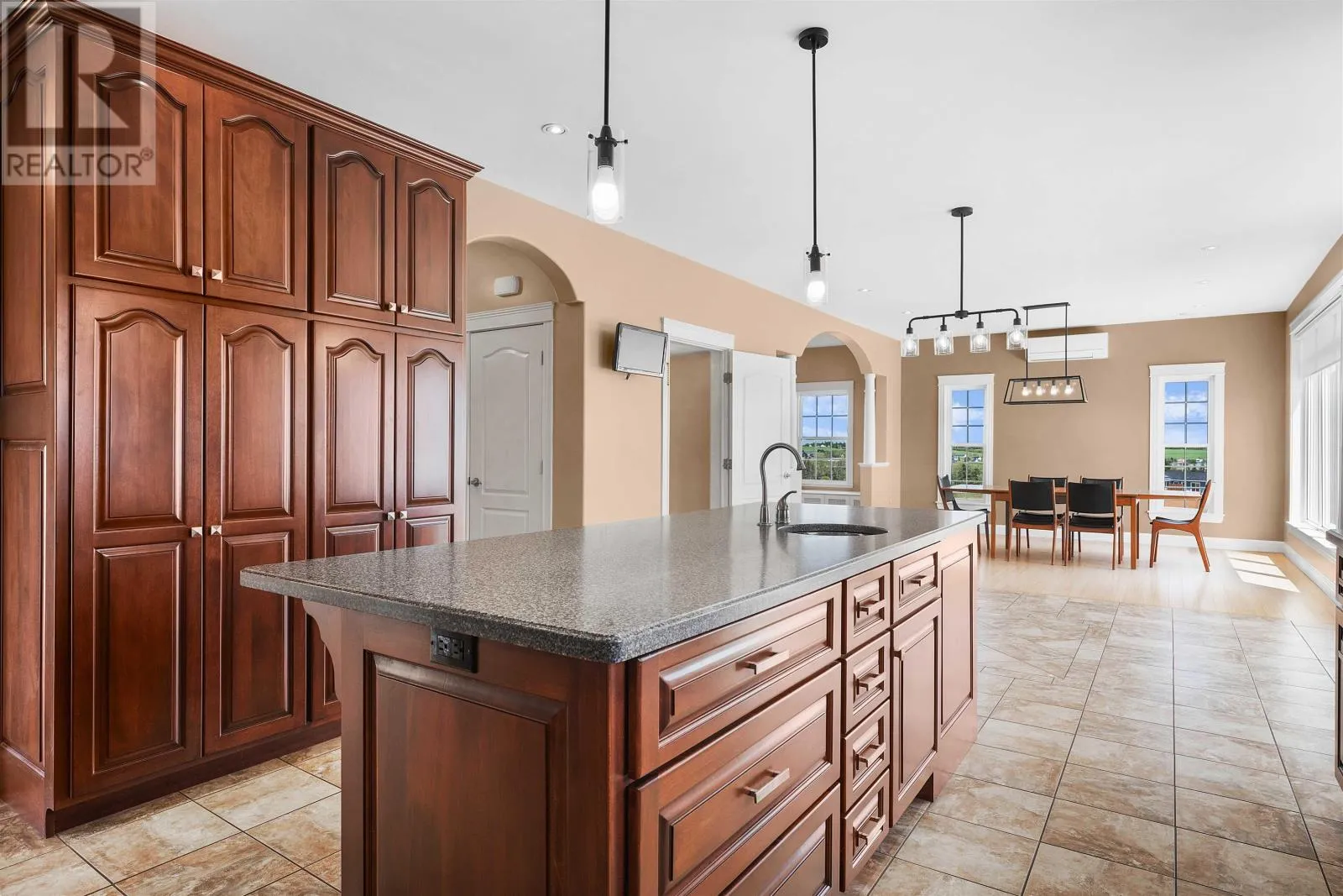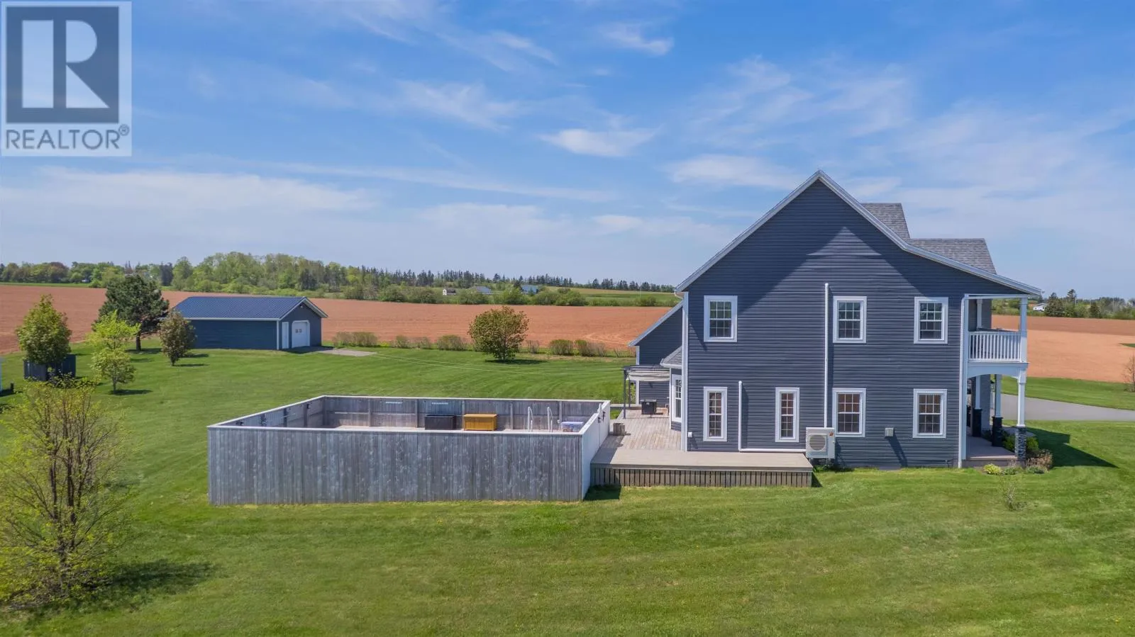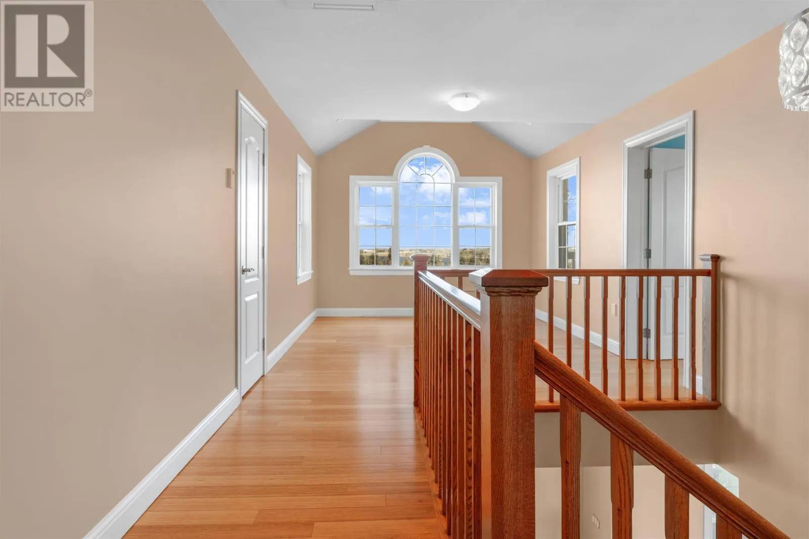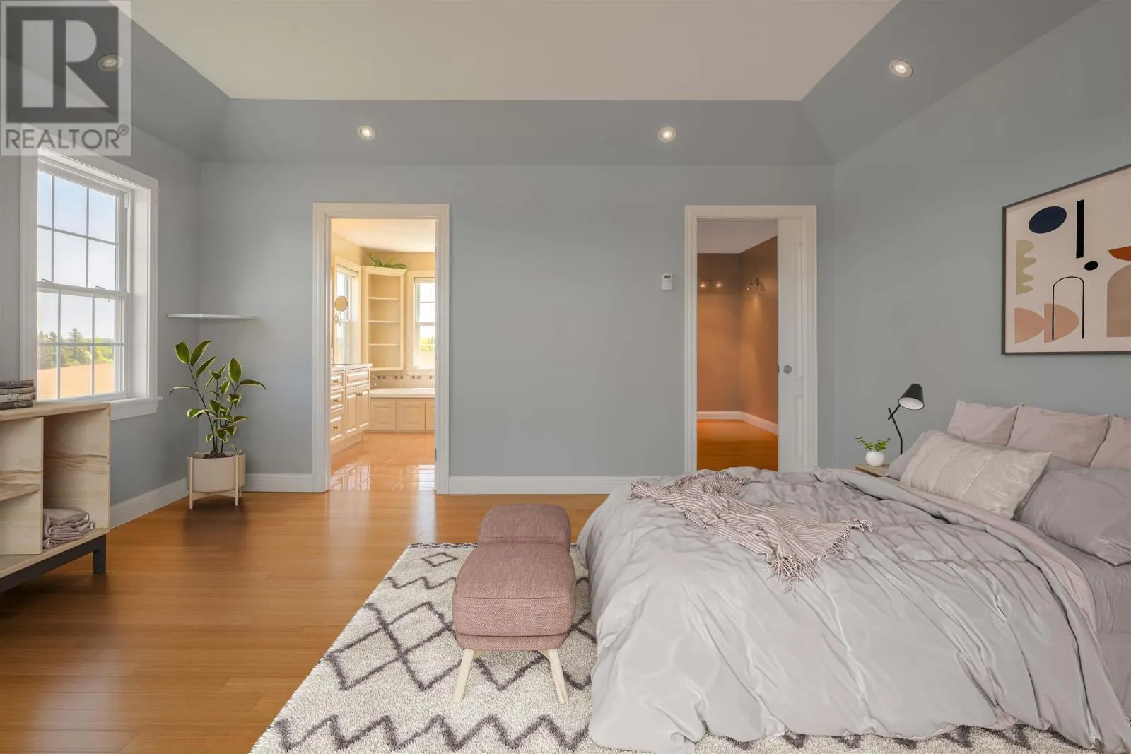 Set on a rise facing the still waters of St. Peters Bay, this estate was designed to feel both rooted and expansive. The approach is formal yet inviting, with clean architectural lines, mature landscaping, and an enduring sense of quiet elegance. Every element of the home has been shaped by function, proportion, and the light that moves across the property from morning to evening. Inside, the main level flows through a series of beautifully scaled rooms. The living room centres on a propane fireplace and opens into a dining area designed for gathering. A custom hardwood kitchen with detailed cabinetry and warm finishes anchors the space. The main floor also includes a dedicated laundry room and access to the heated three-car garage. Upstairs, the primary suite opens to a covered balcony overlooking the bay. The ensuite features a deep soaking tub beneath picture windows and a glass walk-in shower finished with tile. A full dressing room offers generous storage. Two additional bedrooms share the upper floor, along with a full bathroom. The vaulted bonus room above the garage is filled with natural light and offers flexibility for use as a fourth bedroom, studio, or retreat. The lower level includes a half bath and partially finished space with potential for cinema, gym, or additional living. The home is heated with a geothermal system and four ductless heat pumps across five zones. A detached garage offers additional storage or workshop potential. The grounds are bordered by mature trees and curated perennial beds. A heated pool and pergola create an outdoor atmosphere of leisure and refinement. Located minutes from the Nordic Spa and the protected shoreline of Greenwich, this is a property that brings together coastal clarity and lasting architecture. (id:27476)