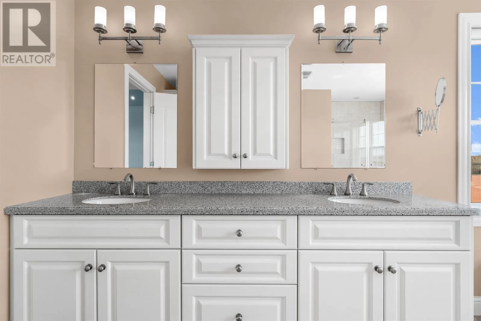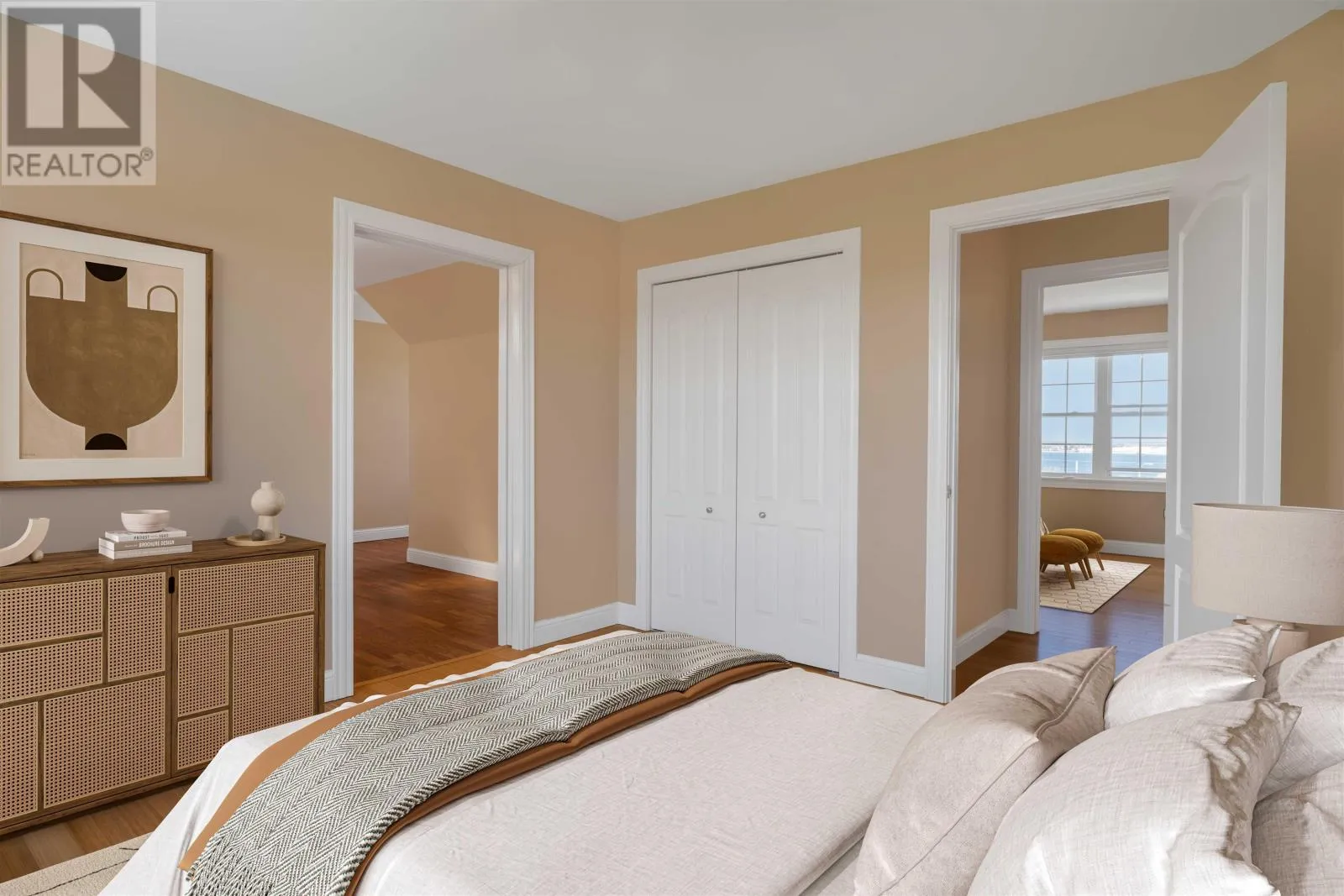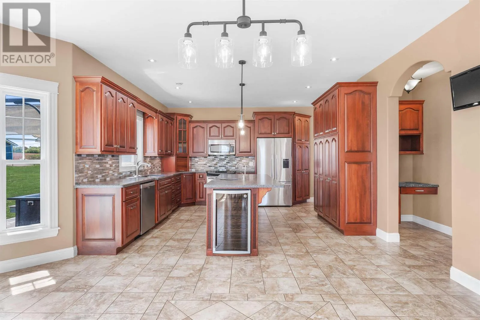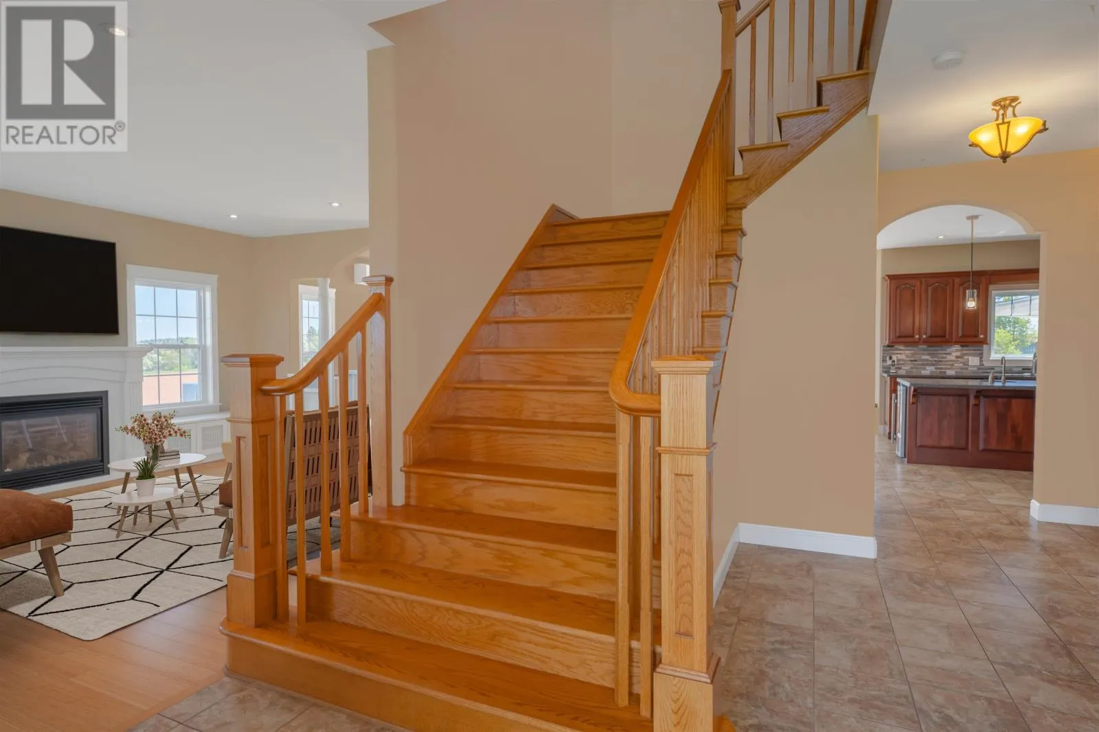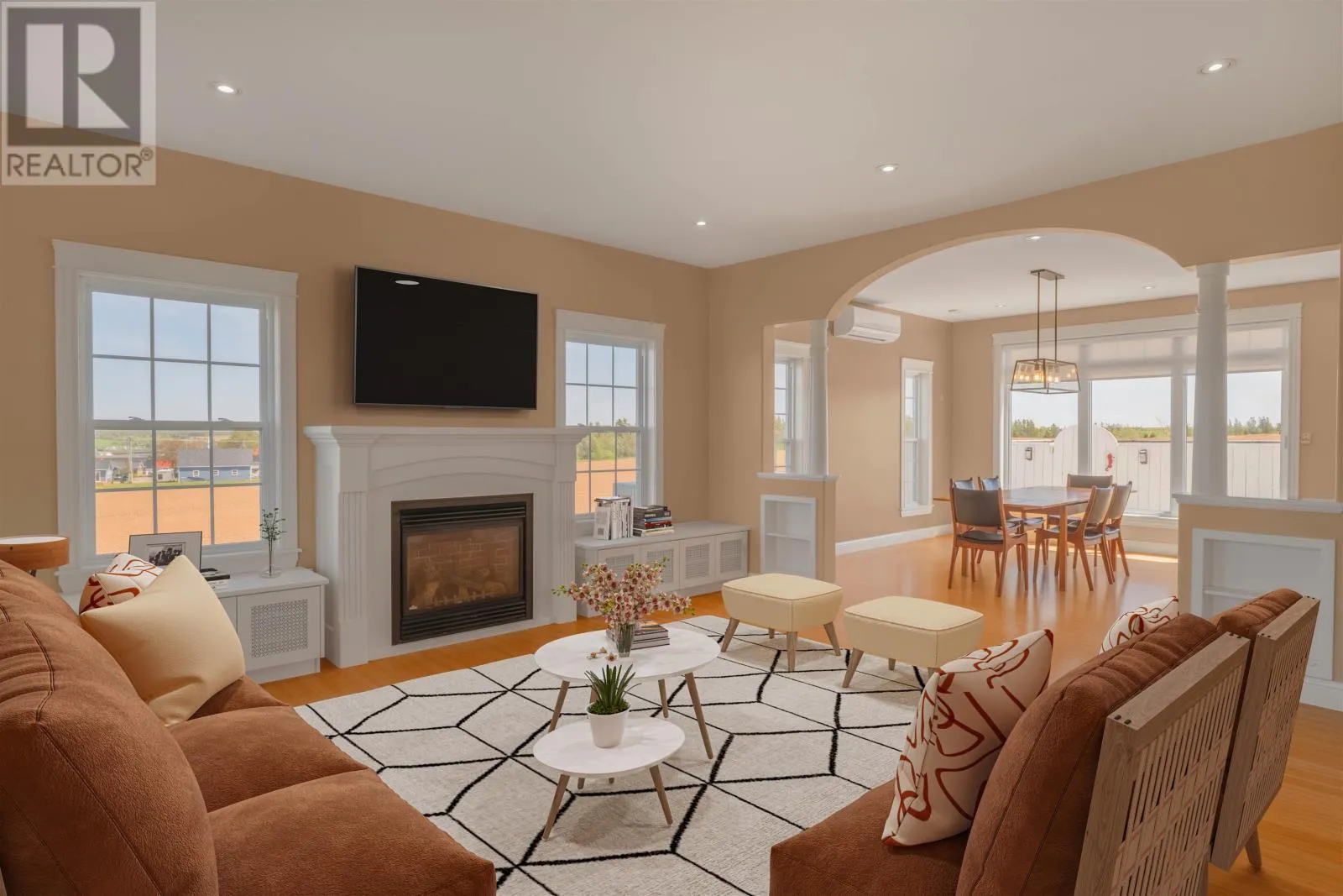 Set on a rise facing the still waters of St. Peters Bay, this estate was designed to feel both rooted and expansive. The approach is formal yet inviting, with clean architectural lines, mature landscaping, and an enduring sense of quiet elegance. Every element of the home has been shaped by function, proportion, and the light that moves across the property from morning to evening. Inside, the main level flows through a series of beautifully scaled rooms. The living room centres on a propane fireplace and opens into a dining area designed for gathering. A custom hardwood kitchen with detailed cabinetry and warm finishes anchors the space. The main floor also includes a dedicated laundry room and access to the heated three-car garage. Upstairs, the primary suite opens to a covered balcony overlooking the bay. The ensuite features a deep soaking tub beneath picture windows and a glass walk-in shower finished with tile. A full dressing room offers generous storage. Two additional bedrooms share the upper floor, along with a full bathroom. The vaulted bonus room above the garage is filled with natural light and offers flexibility for use as a fourth bedroom, studio, or retreat. The lower level includes a half bath and partially finished space with potential for cinema, gym, or additional living. The home is heated with a geothermal system and four ductless heat pumps across five zones. A detached garage offers additional storage or workshop potential. The grounds are bordered by mature trees and curated perennial beds. A heated pool and pergola create an outdoor atmosphere of leisure and refinement. Located minutes from the Nordic Spa and the protected shoreline of Greenwich, this is a property that brings together coastal clarity and lasting architecture. (id:27476)