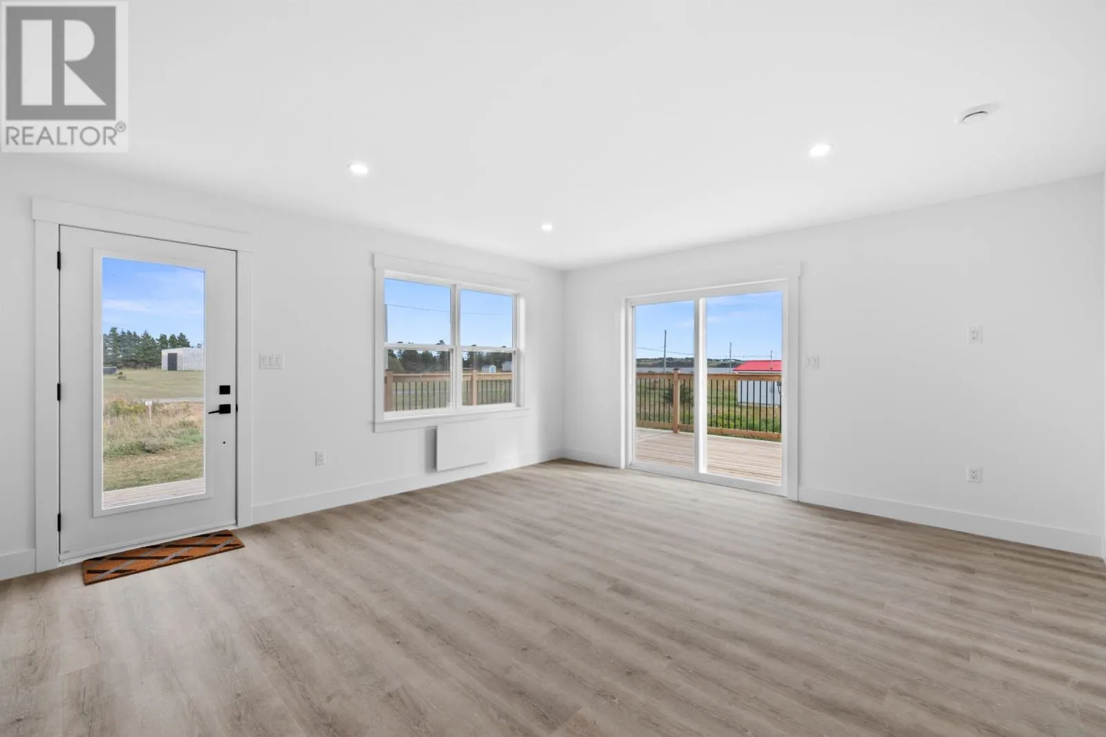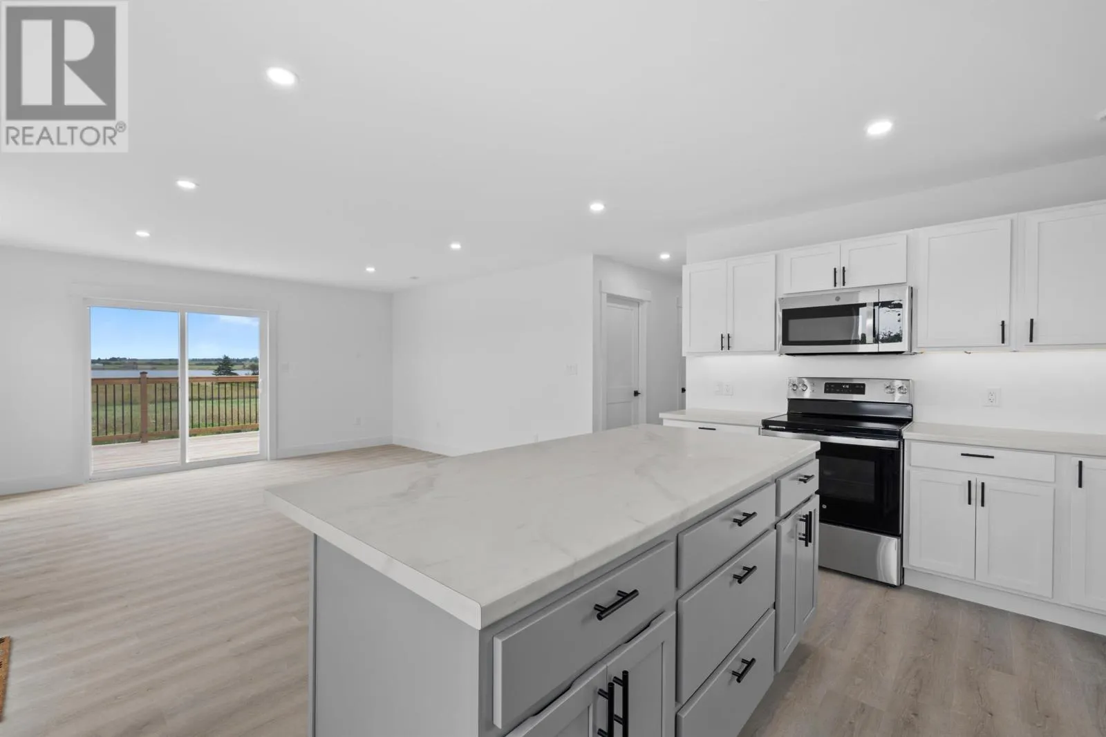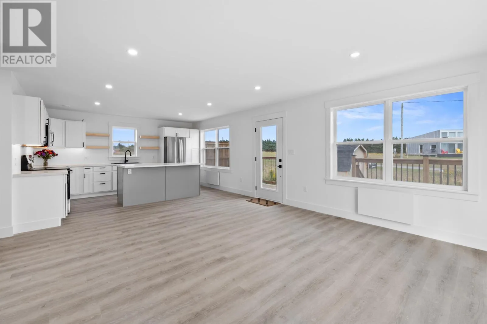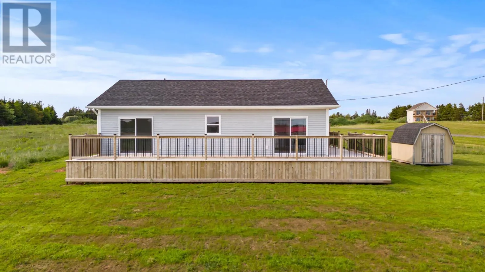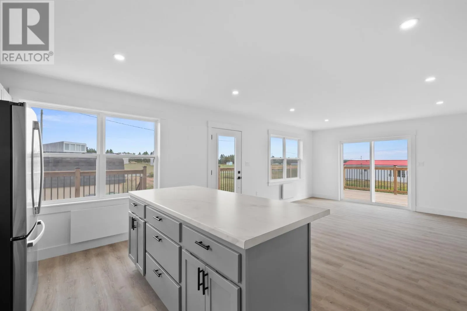 Welcome to 54 Shining Waters Blvd, a newly built, fully insulated year-round cottage/home offering breathtaking panoramic views of St. Peter's Bay. Located in a well-maintained gravel road subdivision, it provides communal access to the water, boat slip and green space to protect the view. This property is ideally situated in the heart of St. Peters, just minutes from Greenwich National Park, the North Shore Beaches, Mysa Nordic Spa, and only 35 minutes from Charlottetown.This home offers 1,120 sq. ft. of open-concept living, with a modern kitchen, dining, and living area. The kitchen features a 6.5 ft island, new appliances, recessed lighting throughout, and sliding doors from the living room leading to an oversized deck with stunning bay views. The hallway leads to two spacious guest bedrooms, a full bathroom, and a combined laundry/utility room. The primary bedroom suite also has sliding doors to the deck with water views and includes a large ensuite bathroom. With vinyl plank flooring throughout, the home is heated by stelpro electric wall heaters and a heat pump for year-round comfort. This property is just minutes from Year-around, T3 transit bus route stop at Mysa Spa from Souris, St Peters & Ch'town. Floor plan & Survey available. (id:27476)
