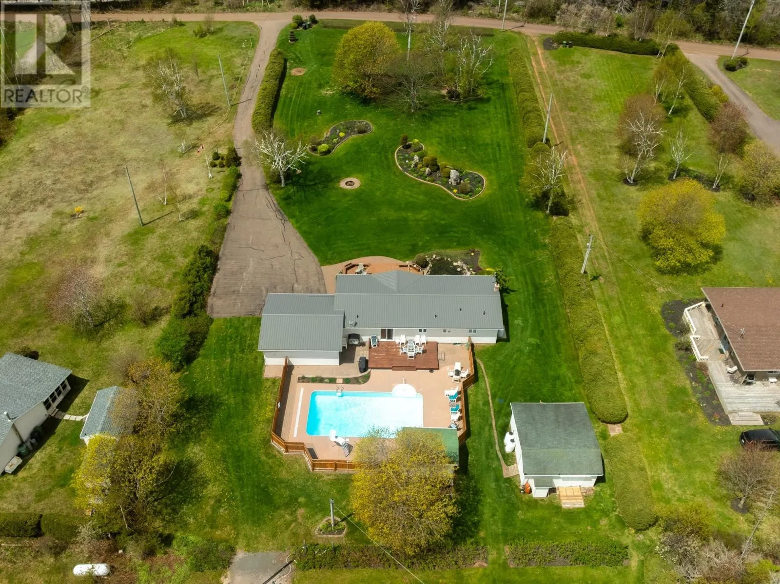 From RTE 25 Bayshore Road, Stanhope - Turn on to Blanchard Lane, property is on right hand side. (VIDEO - Click on the Multi-Media Link) Enjoy your evenings watching the sunset overlooking the beautiful manicured gardens on this lovely one acre property. Pride of ownership is well felt as you tour this property. The attention to detail with the landscaped flower beds, Koi and Goldfish pond, mature trees, and rose bushes offer that added touch of nature at its finest. This charming 2 bedroom, 2 bath year round property is located in the heart of Stanhope. Nestled in a sought after cottage country it is a year round retreat that gives you the best of what relaxation has to offer. Dive into the heated inground pool, or enjoy the warm rays of the sun lounging poolside in the backyard. The main floor offers an open concept kitchen, dining and living room with the master bedroom, walkin closet and ensuite bathroom just down the hall. A spacious second bedroom and second full size bath are also on the main floor. The lower level has a huge recreational/family room as well as 3 other rooms that are currently being used as bedrooms however they do not have egress windows. The choice is yours as to what you would like to use the space for. Utility and furnace room is also on this level as well as a decent size storage room with shelving for storage bins to keep your belongings neat and tidy. The attached heated 24X24 garage has a fantastic bonus kitchenette with propane stove and second fridge also included with the property. A new steel roof was installed recently and will give longevity for years to come. Only a stone's throw away from the North Shore Provincial parks, Stanhope Golf Course and many seasonal fine dining restaurants, this property will surely give you a sense of peace and tranquility of your own private resort. Only 25mins to Charlottetown. All measurements are approximate and should be verified by the Buyer(s). (id:27476)