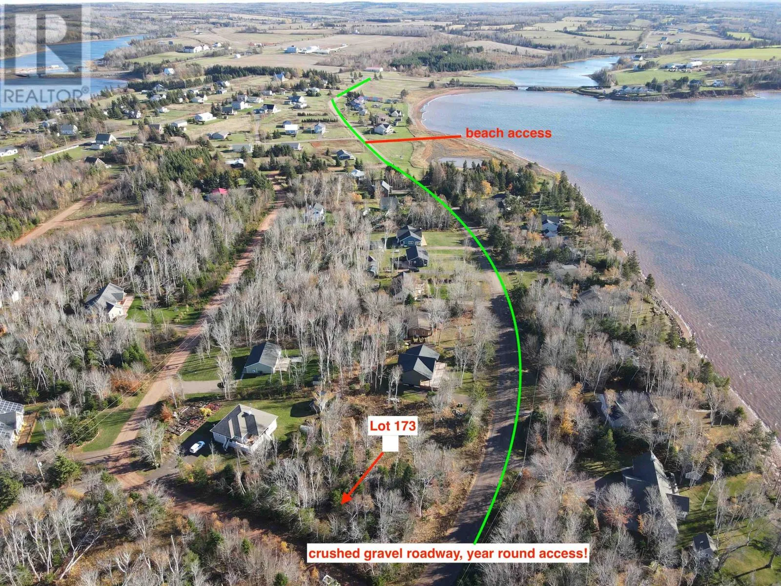 From Route 6 turn onto Seawood Drive Lot 173 Seawood Drive ? one of the few remaining lots in this desirable subdivision ? is now available for your new home or cottage. This 0.30-acre property is located just minutes from Cavendish, offering easy access to beaches, restaurants, amusement parks, and seasonal entertainment. Summerside and Charlottetown are both within a 25-minute drive. Municipal water and sewer services are available at the roadside for convenient hookup. A short walk away, residents can enjoy the subdivision?s private beach and water access, ideal for swimming and other recreational activities. Annual fees are $446.92 and $280 (HST included) for water, sewer, and road maintenance. (id:27476)