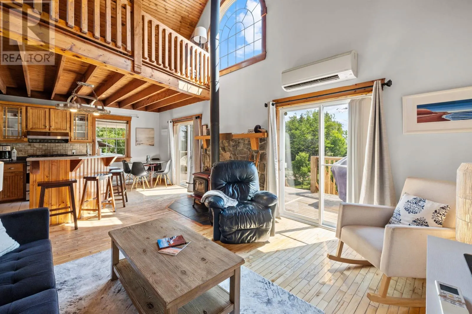 Welcome to 138 Seawood Drive, Stanley Bridge - Located in the desirable Seawood Estates subdivision, this charming home sits on a beautifully landscaped and private lot with distant bay views and access to the water. Featuring 3 spacious bedrooms, 2 full bathrooms, and a 1-car garage, this home blends cozy rustic charm with thoughtful updates. Step inside to an inviting open-concept layout with vaulted ceilings, a warm wood-burning fireplace, and kitchen with pantry that flows into the dining and living areas. Two sliding doors lead to a brand-new wrap-around deck and covered gazebo - perfect for enjoying morning coffee or entertaining. The main level offers two comfortable bedrooms and a full bath. Upstairs, you'll find a generous primary suite complete with an ensuite bath with shower and a cozy loft space ideal for a sitting area, office or reading nook. The lower level features a welcoming foyer, laundry area, storage space, and access to the 1 car attached garage. Additional highlights include a newer roof, fresh interior and exterior paint, updated tile floors in the kitchen and bathroom, new washer and fridge, a large garden shed surrounded by beautiful flowers and mature landscaping. The home is heated with a combination of a wood stove, electric baseboards, and a heat pump for year-round comfort. Located on a year-round road with access to the Cavendish community well system, this home is just minutes from the attractions of Cavendish and Stanley Bridge, and centrally located between Charlottetown and Summerside. This home is perfect for a great weekly rental investment property, year around home or cottage retreat. (id:27476)