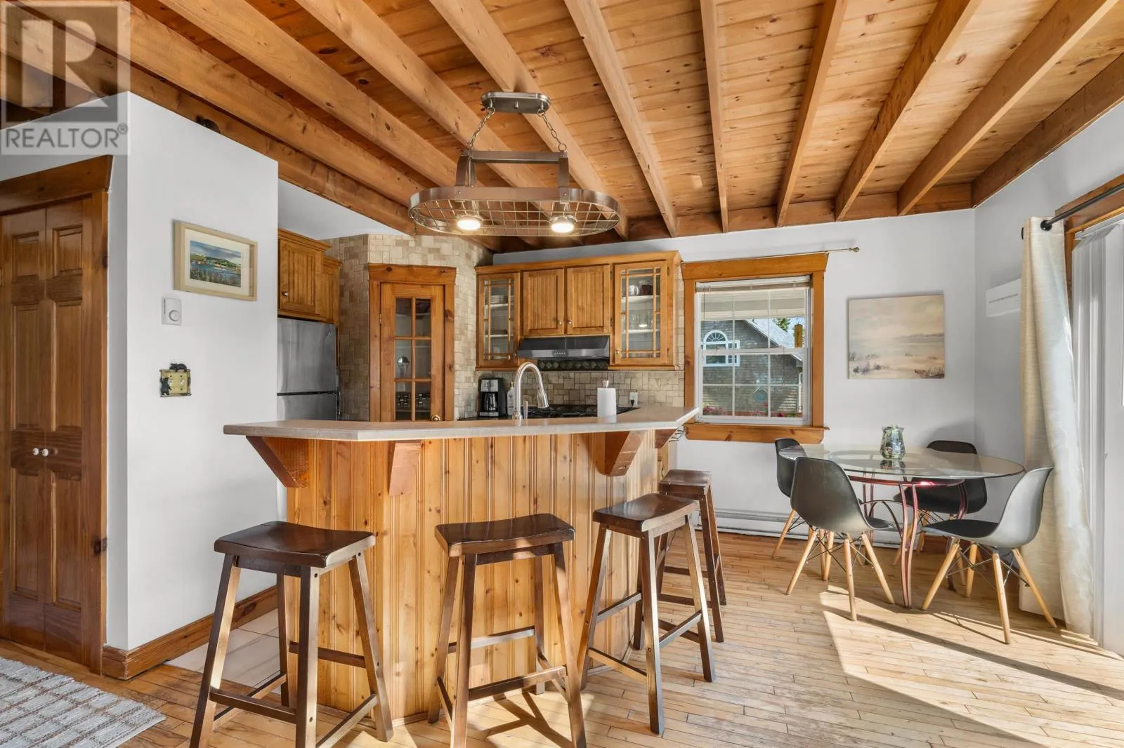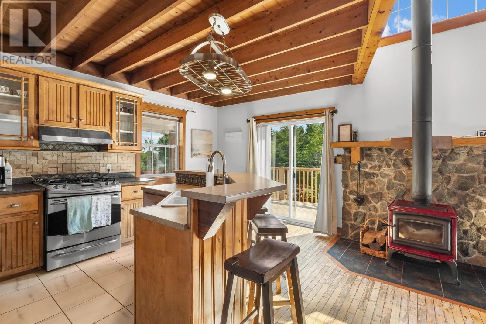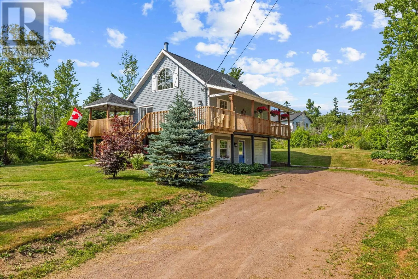 Welcome to 138 Seawood Drive, Stanley Bridge - Located in the desirable Seawood Estates subdivision, this charming home sits on a beautifully landscaped and private lot with distant bay views and access to the water. Featuring 3 spacious bedrooms, 2 full bathrooms, and a 1-car garage, this home blends cozy rustic charm with thoughtful updates. Step inside to an inviting open-concept layout with vaulted ceilings, a warm wood-burning fireplace, and kitchen with pantry that flows into the dining and living areas. Two sliding doors lead to a brand-new wrap-around deck and covered gazebo - perfect for enjoying morning coffee or entertaining. The main level offers two comfortable bedrooms and a full bath. Upstairs, you'll find a generous primary suite complete with an ensuite bath with shower and a cozy loft space ideal for a sitting area, office or reading nook. The lower level features a welcoming foyer, laundry area, storage space, and access to the 1 car attached garage. Additional highlights include a newer roof, fresh interior and exterior paint, updated tile floors in the kitchen and bathroom, new washer and fridge, a large garden shed surrounded by beautiful flowers and mature landscaping. The home is heated with a combination of a wood stove, electric baseboards, and a heat pump for year-round comfort. Located on a year-round road with access to the Cavendish community well system, this home is just minutes from the attractions of Cavendish and Stanley Bridge, and centrally located between Charlottetown and Summerside. This home is perfect for a great weekly rental investment property, year around home or cottage retreat. (id:27476)
