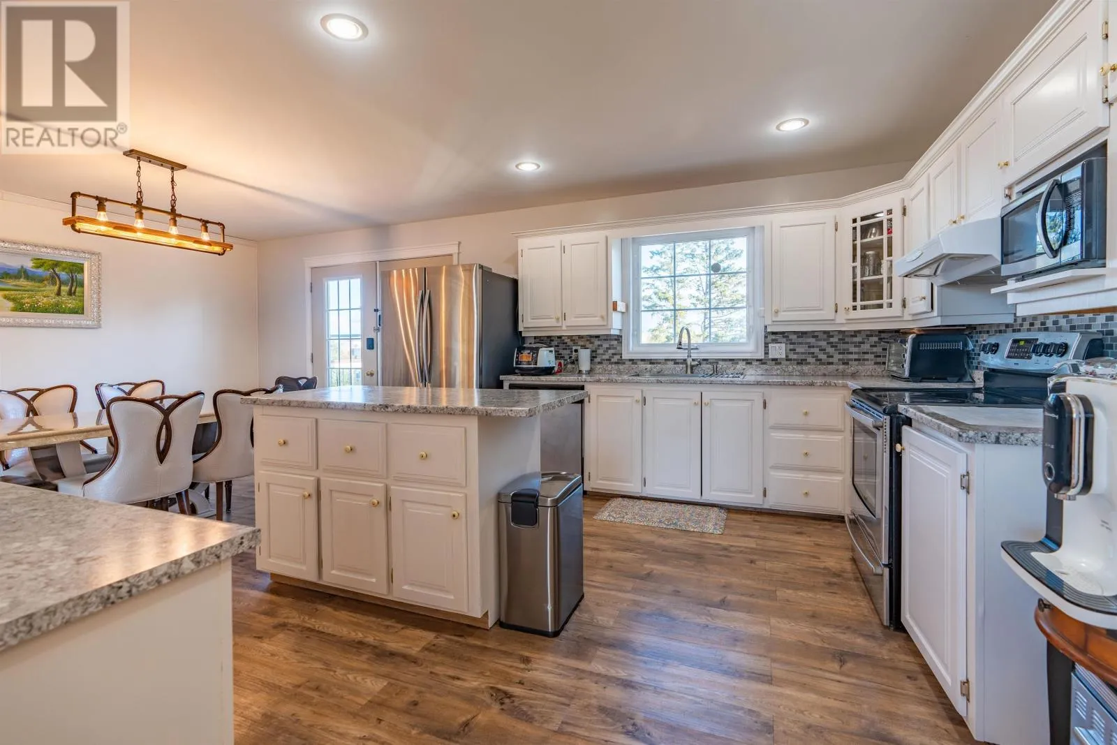 14 Millennium Drive in Stratford is located in a quiet residential neighborhood, the home is just minutes from schools, shopping, recreational facilities, and the Hillsborough Bridge, providing easy access to Charlottetown and surrounding areas. This charming home offers a bright and spacious living experience. The main level features a living room with large windows that fill the space with natural light, a beautifully renovated kitchen overlooking the backyard through elegant double glass doors, and an inviting dining area adjacent to the kitchen. The master bedroom and two additional bedrooms are conveniently located on the main floor. The lower level includes one bedroom, a versatile family or recreation room, an office, and a full bathroom, providing ample space for family living. The attached garage is generously sized with in-floor heating, making it ideal for a workshop, gym, or creative space. Outside, the property boasts a large, well-maintained backyard perfect for family gatherings, outdoor activities, or pets. All measurements are approximate and should be independently verified by the buyer. (id:27476)