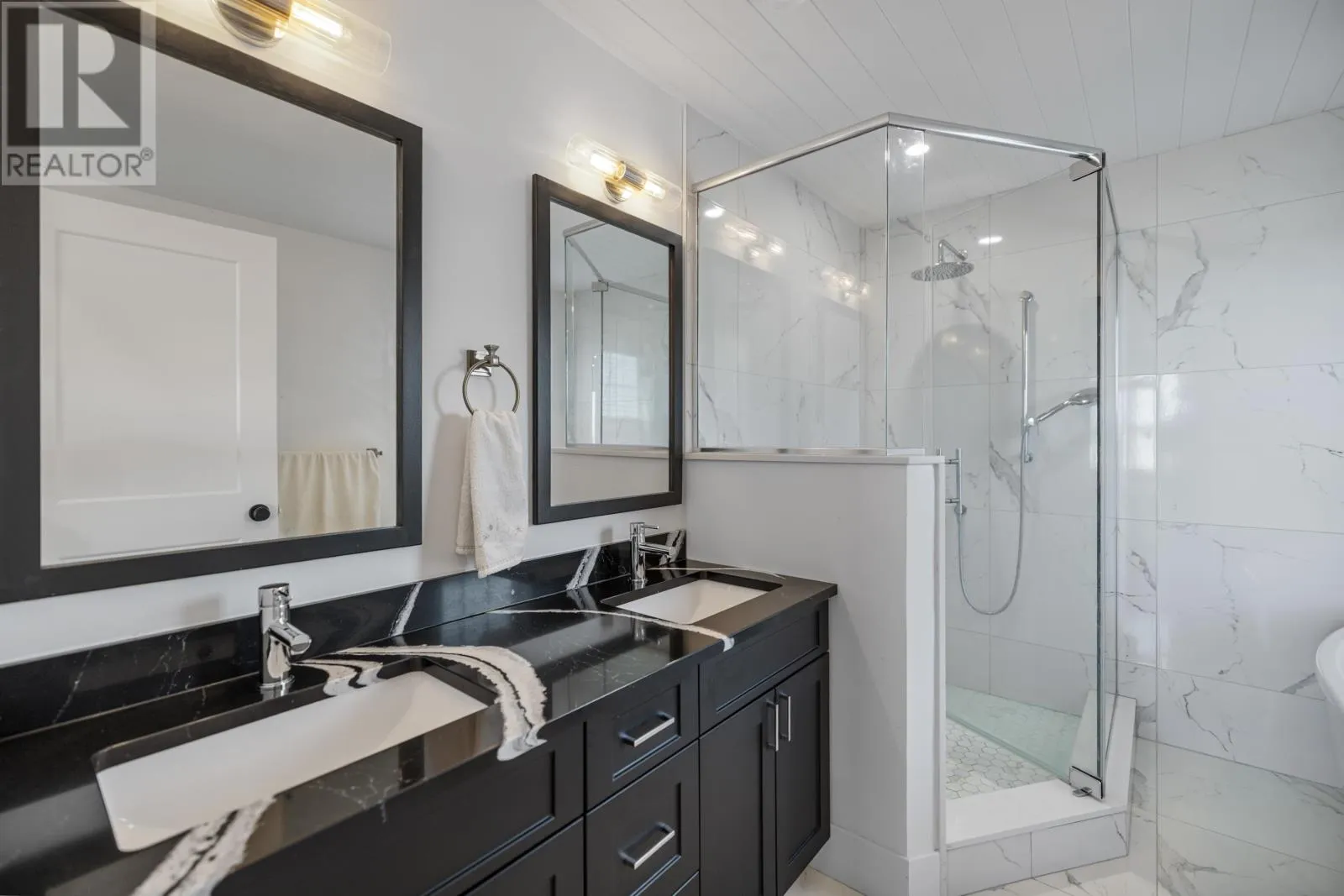 Set on a spacious 0.47-acre lot, this impressive 7-bedroom, 4-bathroom home is a striking showcase of modern design and architectural detail. High-end finishes are found throughout, including Joe Dunphy stone countertops, custom cabinetry, and Chianti engineered hardwood floors. The exterior welcomes you with a stamped walkway, stone façade, double paved driveway, and an expansive 8' x 25' covered veranda overlooking the private lot. Inside, a bright and airy open-concept layout connects the living room, dining area, and kitchen?ideal for entertaining. Design features include 3D shadow box wainscoting, recessed and halogen LED lighting, and European-imported fixtures. The chef-inspired kitchen offers quartz countertops with a waterfall island, herringbone tile backsplash, matching fixtures, and a butler?s pantry complete with butcher block counter and microwave. The main level also includes a slate-floored mudroom with built-in storage, laundry area, full bathroom, an office or bedroom, and a Napoleon electric fireplace. Upstairs, five bedrooms are anchored by a luxurious primary suite featuring tray ceilings, a soaker tub, and a marble-accented walk-in glass shower. The fully finished lower level provides a large rec room, custom bar, additional bedroom, full bathroom, and ample storage?offering exceptional space for family living and entertaining. (id:27476)