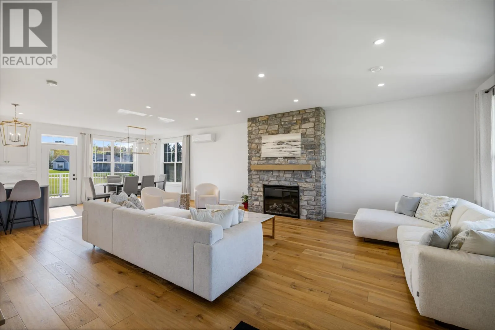 Set on a spacious 0.47-acre lot, this impressive 7-bedroom, 4-bathroom home is a striking showcase of modern design and architectural detail. High-end finishes are found throughout, including Joe Dunphy stone countertops, custom cabinetry, and Chianti engineered hardwood floors. The exterior welcomes you with a stamped walkway, stone façade, double paved driveway, and an expansive 8' x 25' covered veranda overlooking the private lot. Inside, a bright and airy open-concept layout connects the living room, dining area, and kitchen?ideal for entertaining. Design features include 3D shadow box wainscoting, recessed and halogen LED lighting, and European-imported fixtures. The chef-inspired kitchen offers quartz countertops with a waterfall island, herringbone tile backsplash, matching fixtures, and a butler?s pantry complete with butcher block counter and microwave. The main level also includes a slate-floored mudroom with built-in storage, laundry area, full bathroom, an office or bedroom, and a Napoleon electric fireplace. Upstairs, five bedrooms are anchored by a luxurious primary suite featuring tray ceilings, a soaker tub, and a marble-accented walk-in glass shower. The fully finished lower level provides a large rec room, custom bar, additional bedroom, full bathroom, and ample storage?offering exceptional space for family living and entertaining. (id:27476)