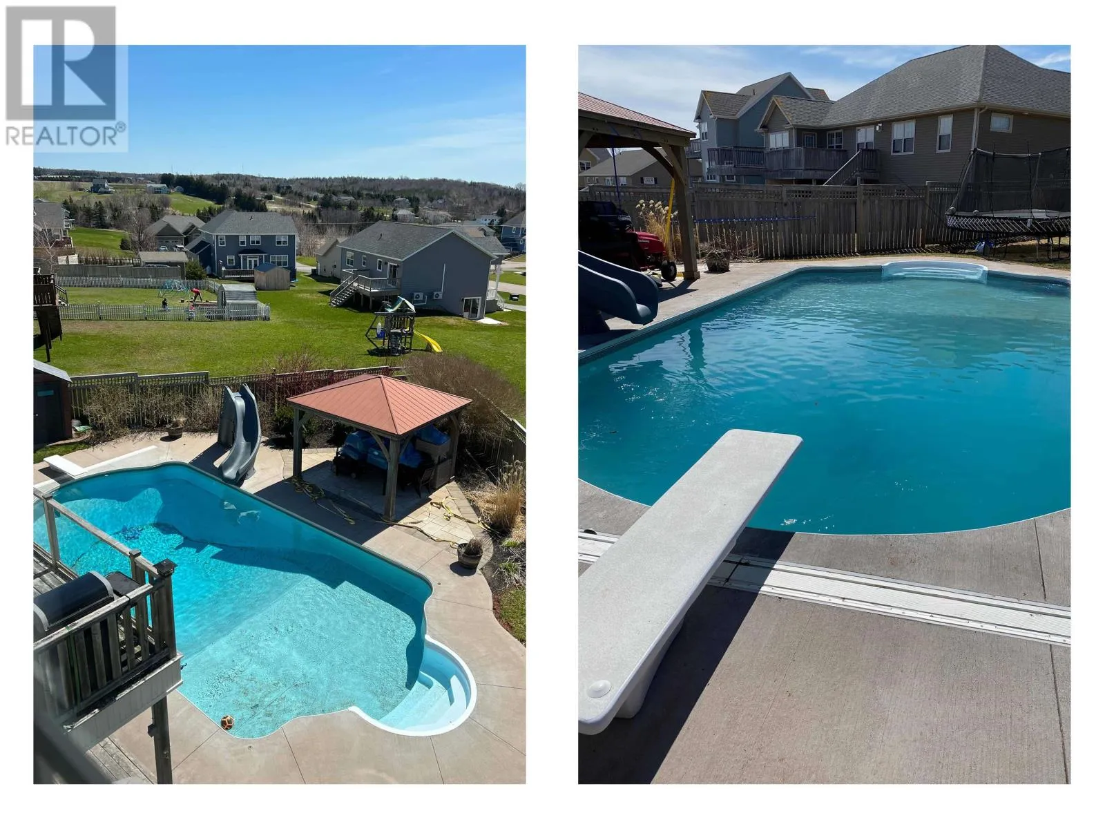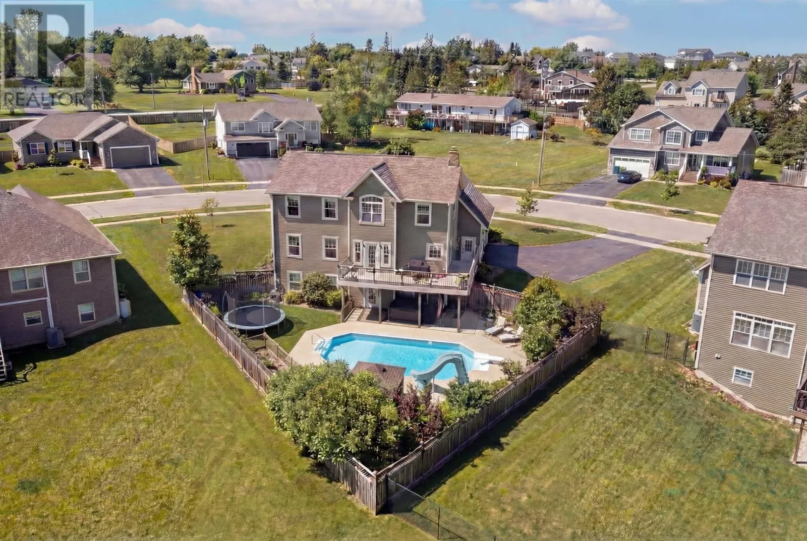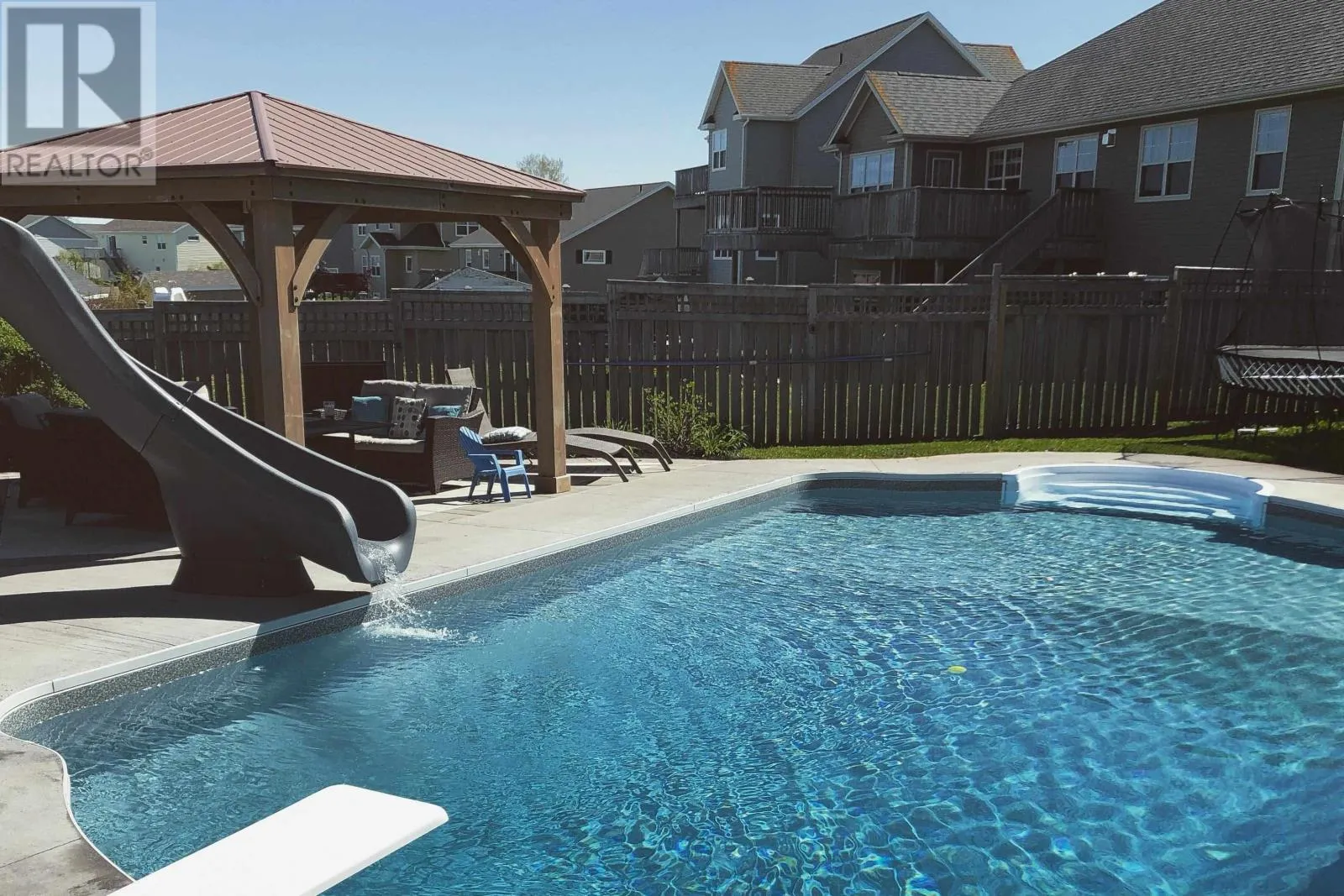 Set on an elevated site in Stratford, this residence pairs architectural clarity with a fully realized outdoor environment designed for year round living. Cementitious board siding, stone detailing, and covered access at both the front and rear establish a composed exterior presence, while the attached double garage integrates seamlessly into daily movement. Hardwood floors ground the main level, where kitchen, dining, and living areas connect with quiet confidence. The kitchen features solid wood cabinetry, propane range, pantry, and direct access to an upper deck overlooking the fully fenced grounds. A propane fireplace and built in millwork anchor the living space without excess. Upstairs, four bedrooms and a dedicated laundry room are consolidated on one level. The primary suite is oriented toward distant salt water views and includes a walk in closet and ensuite with soaker tub, glass shower, and heated tile floors. The walkout lower level extends the home?s functionality with a generous family room, in wall surround sound, electric fireplace, additional bedroom, full bath, and flexible gym or studio space. In floor heating runs through this level and the main garage. The rear landscape operates as an extension of the architecture. A heated inground pool with slide and diving board forms the centerpiece, complemented by a clear deck cover and a seven person self cleaning Hydropool beneath the covered terrace. Integrated outdoor speakers and full perimeter fencing create a contained and private setting. Approximately 650 metres to Keppoch Beach and close to Fox Meadow Golf Course and Stratford amenities, the property offers proximity to salt water while maintaining privacy. Approximately 2867 square feet across three finished levels. (id:27476)