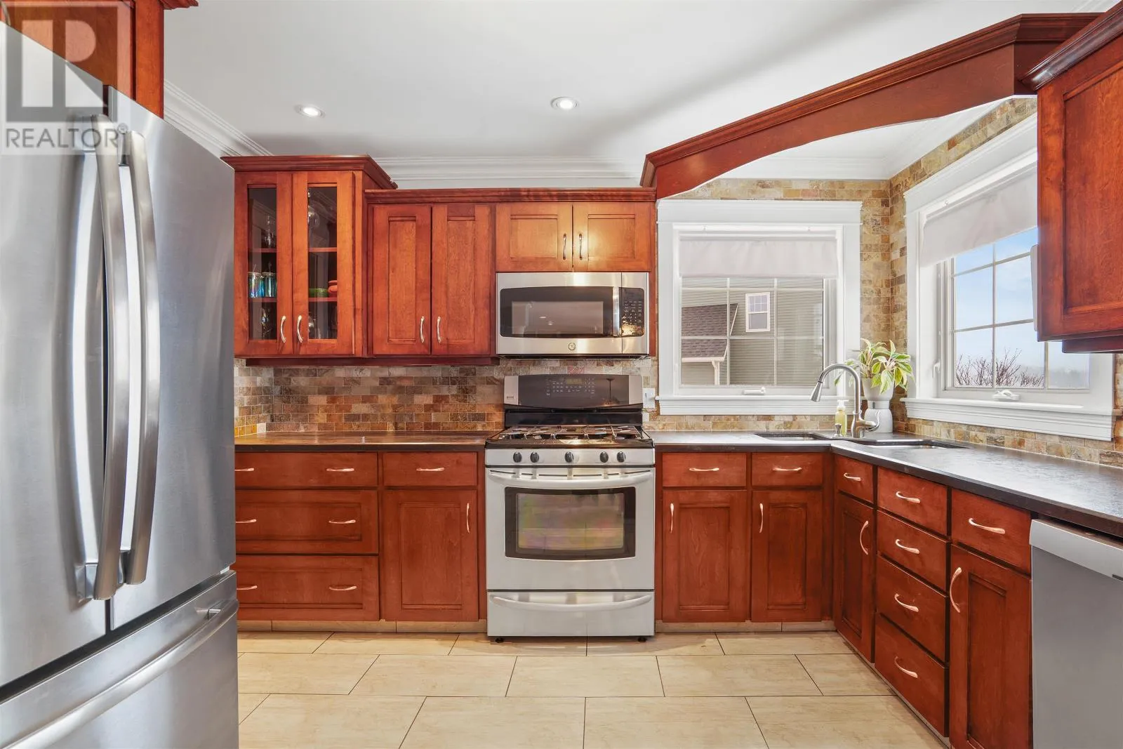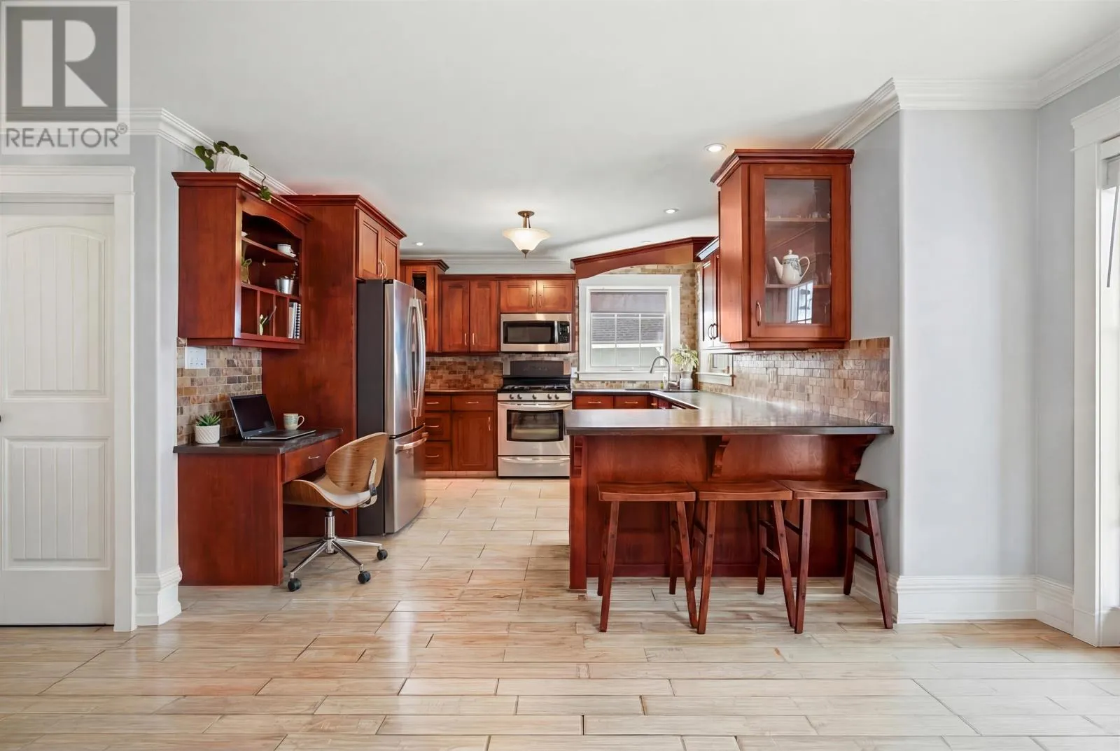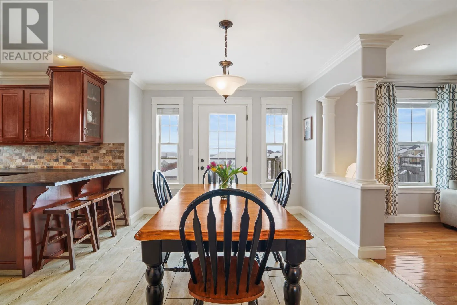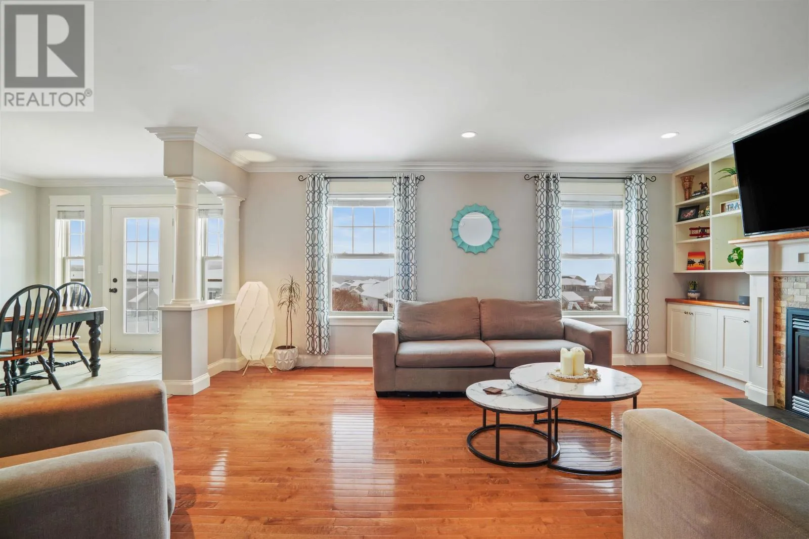 Set on an elevated site in Stratford, this residence pairs architectural clarity with a fully realized outdoor environment designed for year round living. Cementitious board siding, stone detailing, and covered access at both the front and rear establish a composed exterior presence, while the attached double garage integrates seamlessly into daily movement. Hardwood floors ground the main level, where kitchen, dining, and living areas connect with quiet confidence. The kitchen features solid wood cabinetry, propane range, pantry, and direct access to an upper deck overlooking the fully fenced grounds. A propane fireplace and built in millwork anchor the living space without excess. Upstairs, four bedrooms and a dedicated laundry room are consolidated on one level. The primary suite is oriented toward distant salt water views and includes a walk in closet and ensuite with soaker tub, glass shower, and heated tile floors. The walkout lower level extends the home?s functionality with a generous family room, in wall surround sound, electric fireplace, additional bedroom, full bath, and flexible gym or studio space. In floor heating runs through this level and the main garage. The rear landscape operates as an extension of the architecture. A heated inground pool with slide and diving board forms the centerpiece, complemented by a clear deck cover and a seven person self cleaning Hydropool beneath the covered terrace. Integrated outdoor speakers and full perimeter fencing create a contained and private setting. Approximately 650 metres to Keppoch Beach and close to Fox Meadow Golf Course and Stratford amenities, the property offers proximity to salt water while maintaining privacy. Approximately 2867 square feet across three finished levels. (id:27476)