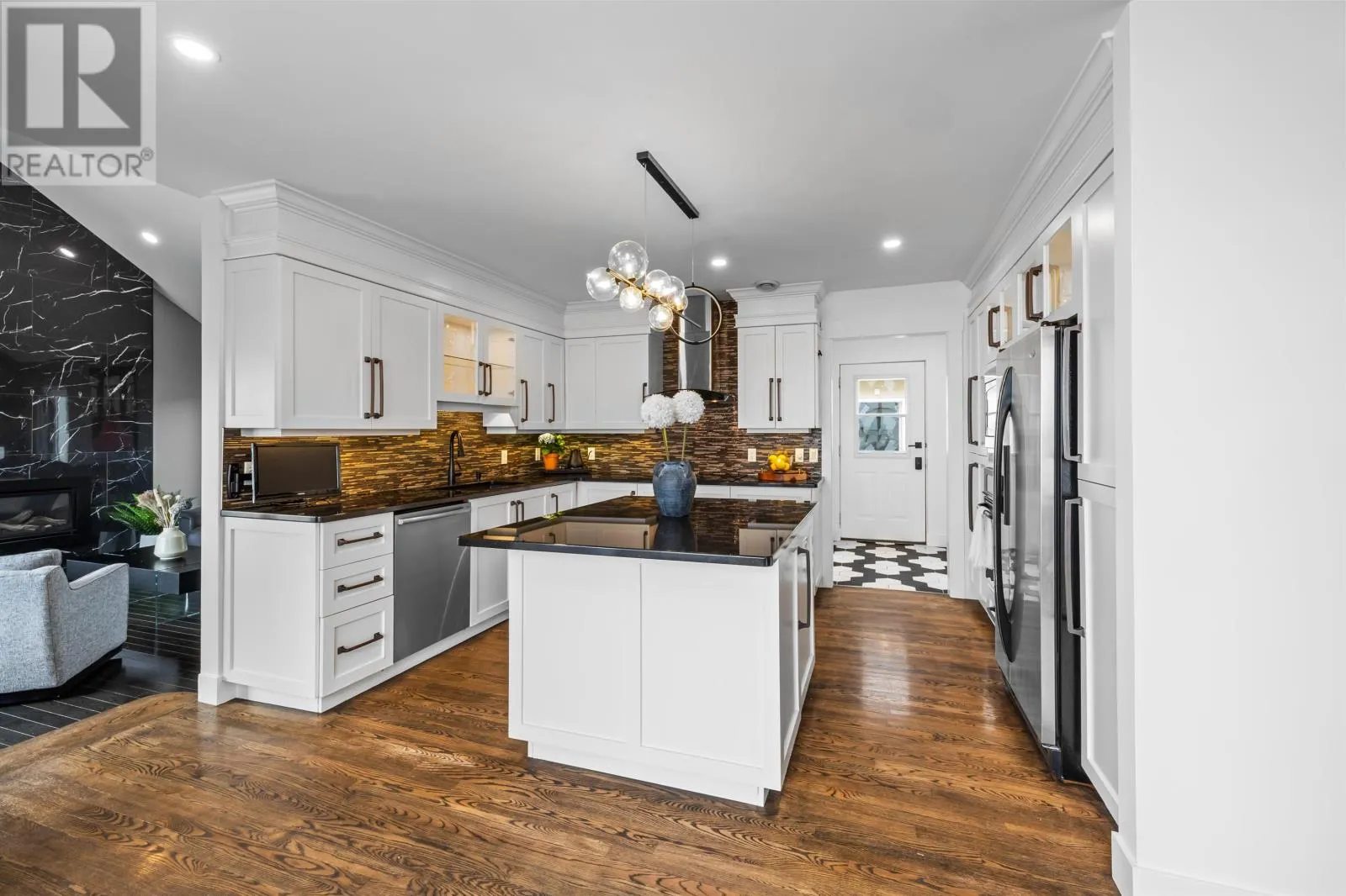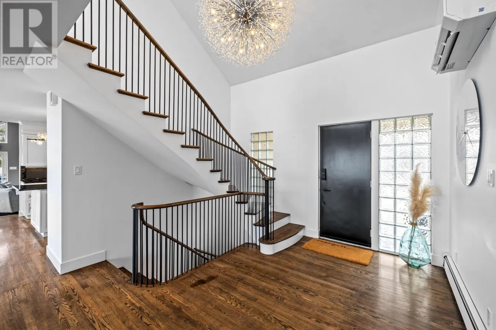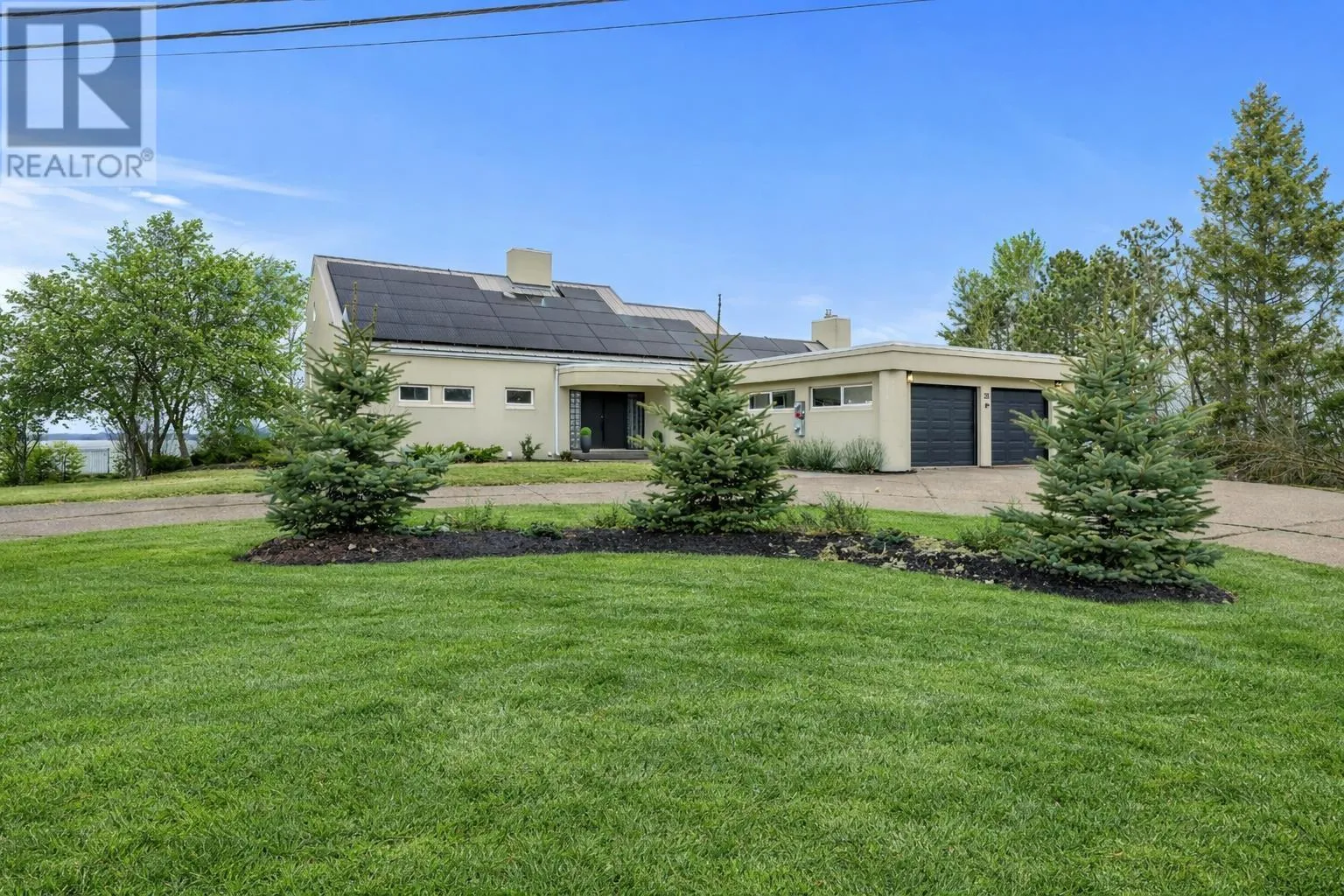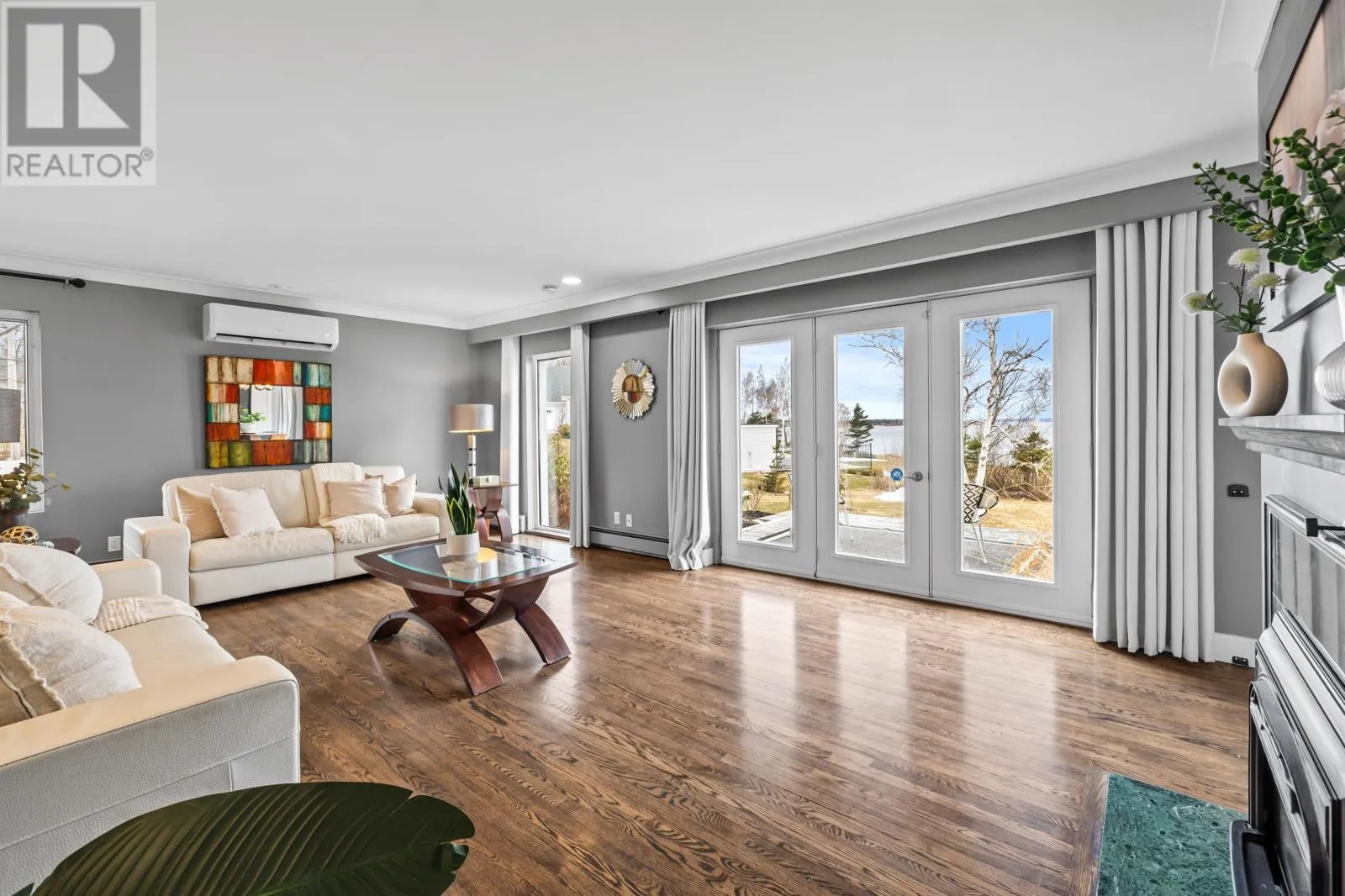 Welcome to 28 Battery Point Road, a private waterfront estate set on a full acre with 155 feet of exclusive shoreline in one of Stratford's most coveted enclaves. Custom-built and meticulously maintained, this landmark residence offers more than 4,000 square feet of refined living across three levels: five bedrooms, four bathrooms, a fully self-contained in-law suite, a double garage with a workshop, and sweeping water views from virtually every room. Step through the double-door entry into a grand foyer where a sweeping staircase and a stunning contemporary chandelier frame the Charlottetown city skyline, stretched across the harbour. Tall ships, cruise liners, and pleasure craft pass your front yard like a season-changing living painting. A sunken family room with a floor-to-ceiling marble gas fireplace and dark oak floors anchors the space. A formal living room with generous windows draws light through the day. A separate dining room with warm natural light on three sides. The updated kitchen features quartz counters, abundant cabinetry, and ample prep space. Every room opens directly onto the expansive wraparound deck system. On the second level, the grand primary suite includes a spa-inspired ensuite, a dedicated office or dressing room, and private patio access, all with views of the harbour and city lights. The fully finished lower level functions as a luxury in-law suite. It features two bedrooms, a dressing room, a full kitchen with quartz counters, granite island, gas fireplace, and double patio doors that open directly onto a private stone deck with a hot tub. A renovated laundry room, dedicated gym, and generous storage complete the level. Outside, a granite staircase, mature oaks, large blue spruce, extensive gardens, stone hardscaping, erosion control, solar panels installed in 2025, a propane generator, and new leaf guard gutters. A full renovation history is available upon request. 28 Battery Point Road is mov (id:27476)