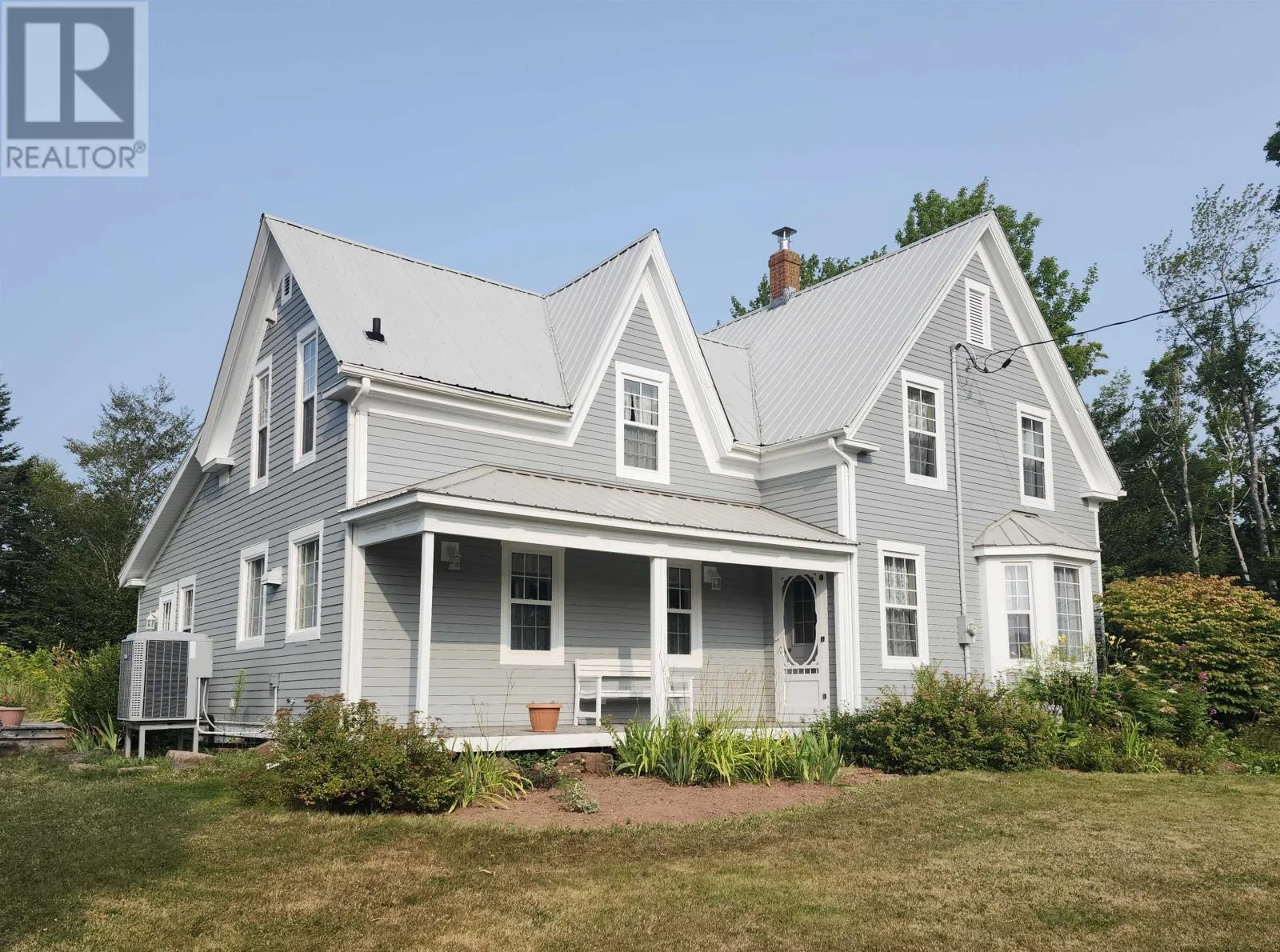 Restored Two-Storey Farmhouse - Cambridge, PEI Experience timeless country living in this fully restored classic farmhouse, perfectly located in the quiet community of Cambridge, just minutes from Montague. Offering 2,500 sq. ft. of thoughtfully designed space, this home blends traditional charm with modern comforts. Upstairs, you'll find three large bedrooms, each with its own private ensuite bath. The main level offers an additional bedroom, a half bath, and a generous eat-in kitchen featuring a new fridge and dishwasher. A bright, window-lined dining room fills the home with natural light, while the spacious family room invites relaxation and gathering. Comfort is ensured year-round with a 36,000 BTU ducted heat pump, keeping you warm in winter and cool during hot summer days. Outside, the beautifully landscaped yard leads to a 28' X 12' heated and powered bunkie on a concrete pad, as well as a 1,500 sq. ft. barn - perfect for storage, hobbies, or small-scale farming. The property's private setting, complete with a charming lane, makes it an ideal country retreat. All furnishings appliances, and a ride-on mower are included less (a few personal items), making this a true turn-key offering. (id:27476)
