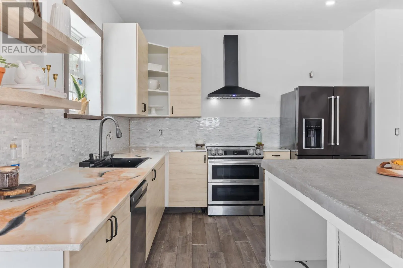 One of a kind new build almost completed! With 7 bedrooms and 5 bathrooms and a unique configuration this home would suit a multitude of buyers. On the main floor we have an impressive entry which opens to a large living room with an electric fireplace. On the other side of the 18 foot hallway is an office or den whichever would suit best and a laundry room with half bath. The kitchen and dining room overlook the inground pool and spill over hot tub which are surrounded by a black concrete deck and LED strip lighting. On the second floor is the primary suite and ensuite along with a second bedroom and full bathroom. The primary suite has a large sundeck, and washer dryer hook ups inside the closet. The ensuite has a walk-in shower, soaker tub and double sinks. Completing this level is also a self contained one bedroom Granny suite which can be accessed from the main home or from the exterior. As an added bonus is the bottom floor with four egress compliant bedrooms, a full washroom and kitchen/living area. The tenanted areas are currently on a month to month basis with a revenue of $3400.00 per month. Some technical specs include a centrally placed wet wall for easy access to plumbing and electrical, an extra electrical panel, individual electric heating for each bedroom plus multiple heat pumps, full home HRV system & R25 insulation to exterior walls for energy efficiency. The exterior is a combination of Hardy plank board & batten, acrylic stucco, vinyl on the back and cedar gables. Measurements & information deemed correct but should be verified by the purchaser if important. (id:27476)