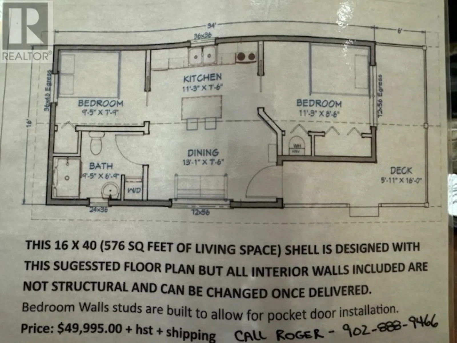 TO BE MOVED: Brand new 16x40 home/bunkie/rental. This home is unfinished and ready to be moved to your lot. Built to Canada's building codes. Studded off for 2 bedrooms, open concept dining room, kitchen, 2X6 walls, tyvek undersiding. Large windows offering lots of natural light. We can also change walls, build without the deck to offer more square footage inside. Other exterior colors available. Only $49,900 plus HST and delivery! Listing agent is also seller. (id:27476)