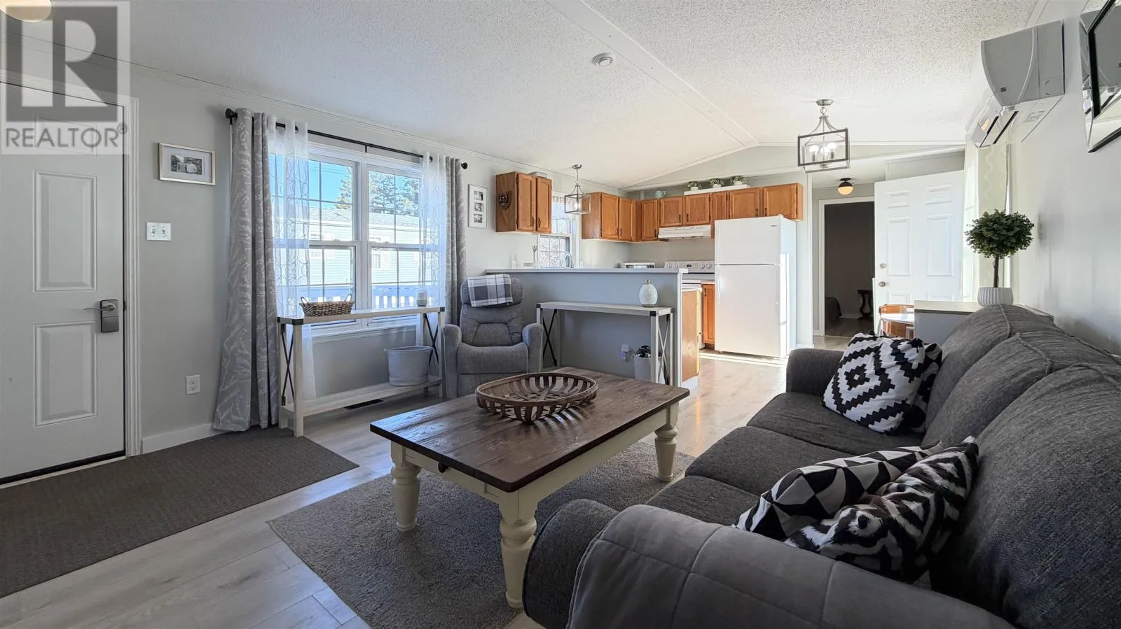 Step inside this move in ready 2 bedroom mini home and enjoy an inviting open concept layout that maximizes space and natural light. The living room flows seamlessly into the kitchen and dining area, ideal for everyday living or entertaining, with each bedroom located at opposite ends, a full 4 piece bathroom, and a combo washer and dryer. Recent upgrades include a new roof, new electric hot water heater, and a high end heat pump. Additional renovations within the last 5 years include updated light fixtures, fresh paint, new trim, exterior doors, vanity, toilet, kitchen tap, and deck improvements. The home also features a private 14 x 10 deck, a fibreglass oil tank, and a 10 x 8 mini barn for extra storage. Located in one of Summerside?s most desirable mini home communities, this property offers excellent value with lot rent at $172 per month, which includes grass cutting, water, and sewer. With the new East West Connector Road now only minutes away, you are quickly connected to all of Summerside?s amenities and still within walking distance of the Confederation Trail. CSA #459969 and Serial # M18-5087. (id:27476)