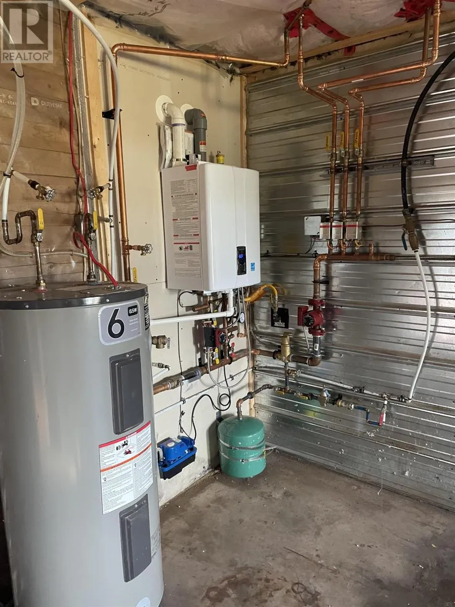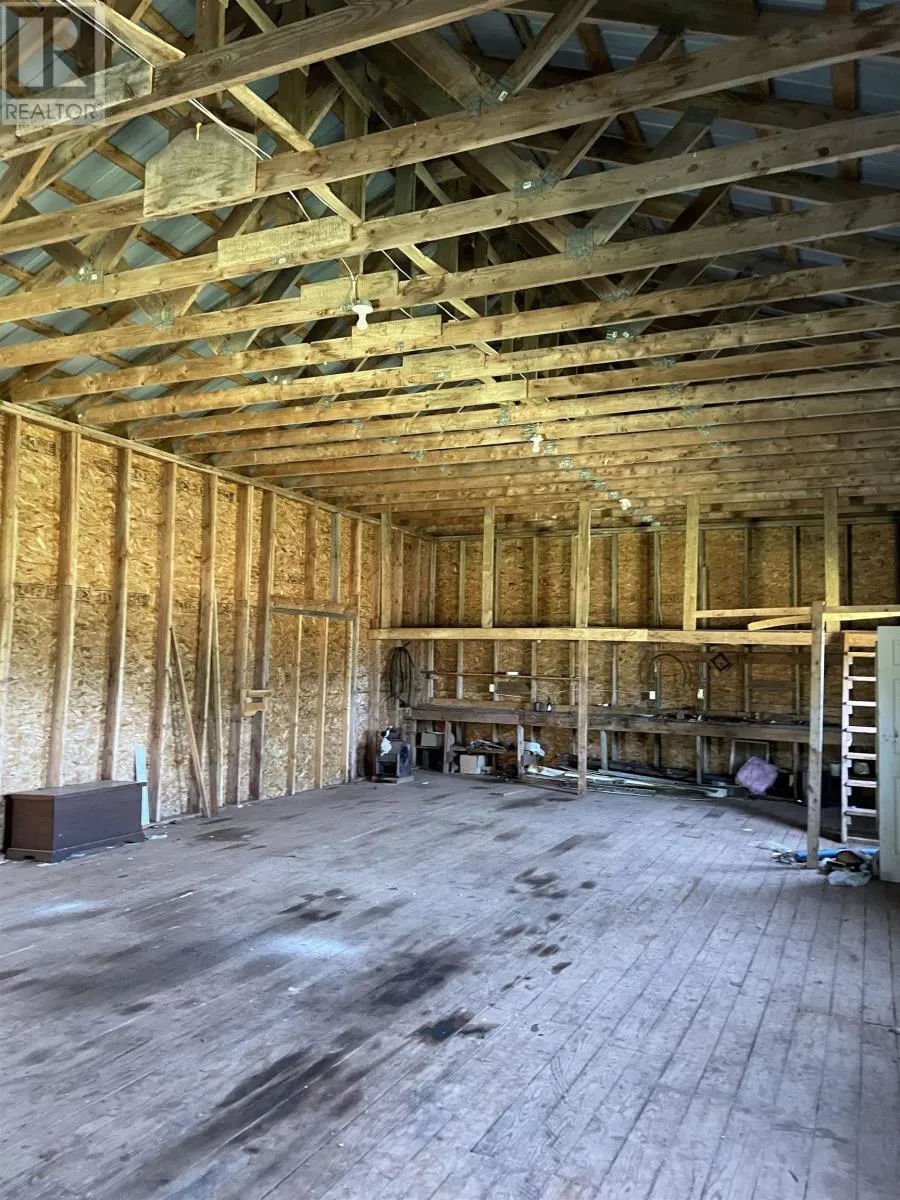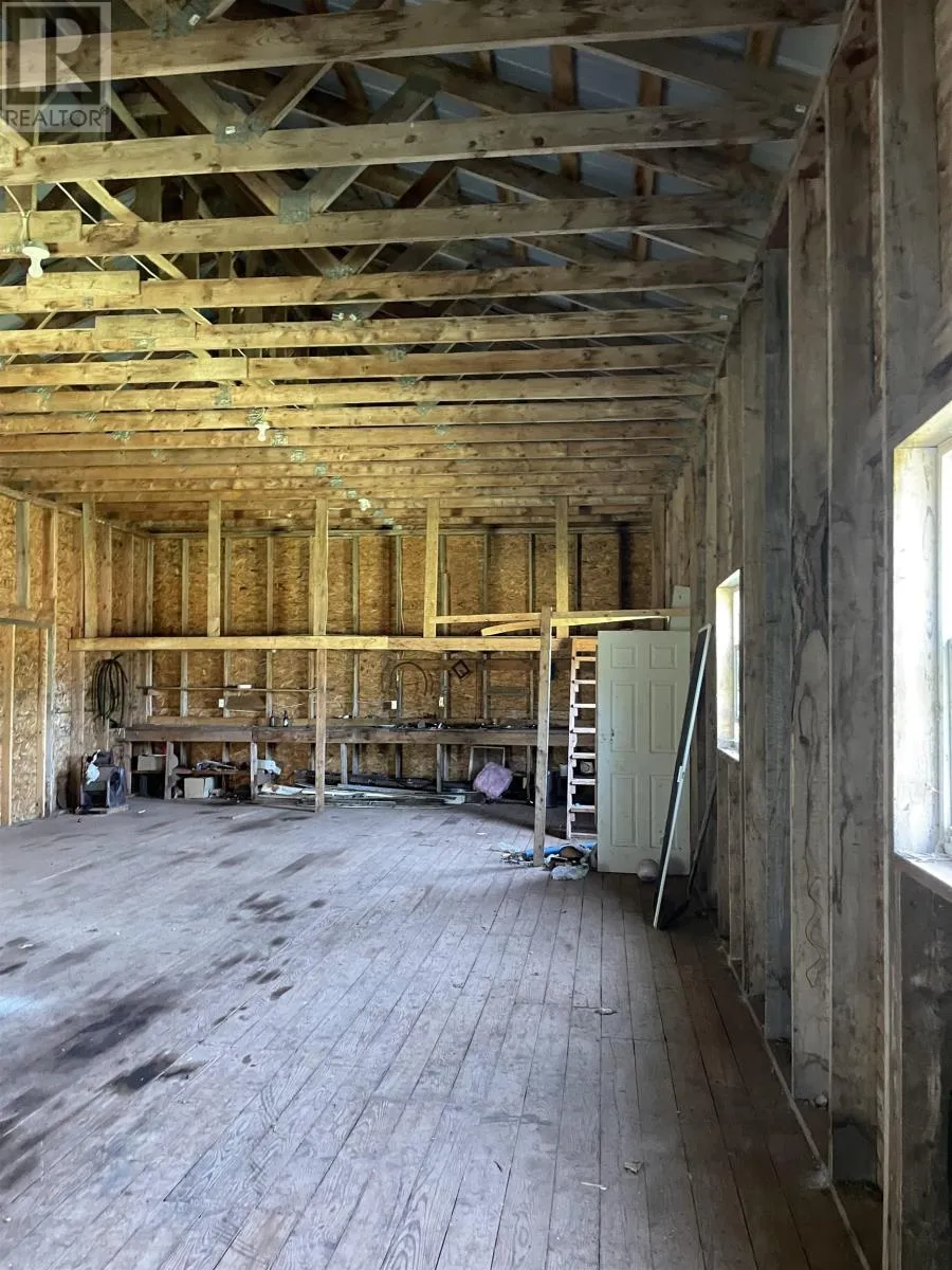 Located on Dalton Avenue, Tignish Here is a most unique secluded and private property having 2 acres distanced from the road located at 183 Dalton Avenue in Tignish Western PEI. Built in 1998 boasting over 1392 sq ft of living space. Home features knotty pine ceilings, custom built oak cabinets, the kitchen walls have copper back splashing. One will also appreciate the kitchen island and storage for preparing meals. The main area showcases rustic beams, arched doorways, textured stucco walls, laminate flooring, a welcoming double side light into with warm entry with cast iron rad heating. The heating system has been updated with a propane boiler furnace. In addition there is a Mini Split Futusizi heat pump in the downstairs living area. There is a den/office off the main floor. From the kitchen there is a good size utility room that could easily be converted back to a single car garage or small work shop or office. Home includes full bath upstairs with soaker tub and separate corner glass shower, downstairs has a half bath. Kitchen has a new patio door that leads to a private back garden. Home has a spacious living room area as well as a expandable kitchen/dining area. Oversized vinyl windows downstairs allowing extra lighting. Features also a beautiful railing and stairs leading to the second level where you have 3 good sized bedrooms. Lo The master bedroom has beautiful vaulted ceilings and has a double closet with two entrys. The other two bedrooms have good size closets. The laundry room area is located on the second floor. In addition we have a wired 24x50 work shop with steel exterior and steel roof and a spruce floor with a storage loft. This building is large enough to store a 45 ft fishing boat. Home is sold as is where is condition. Water and sewer is on municipal services. (id:27476)