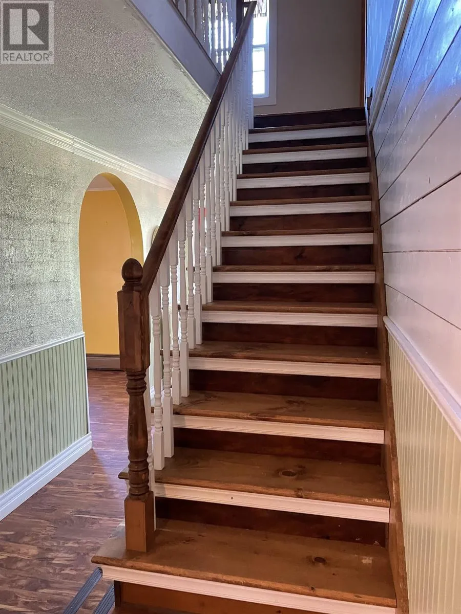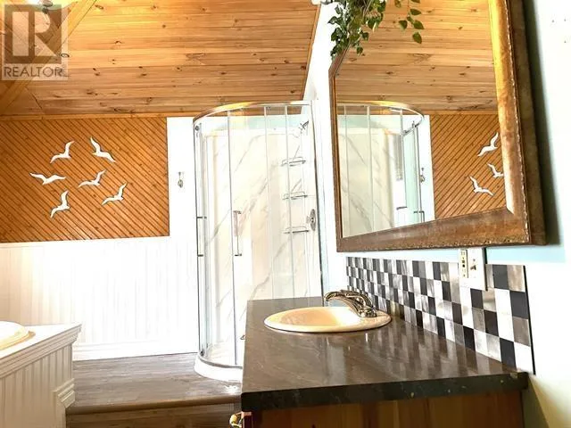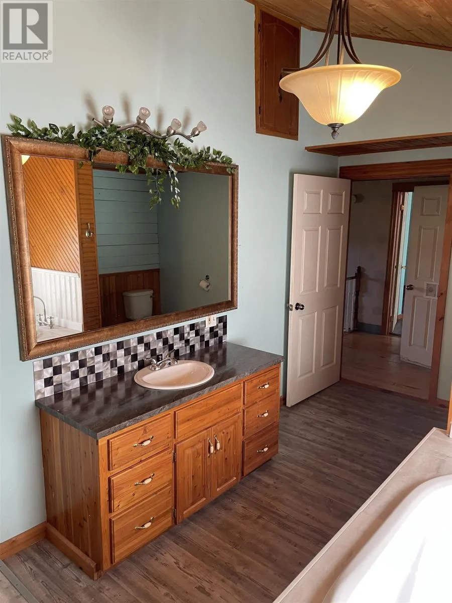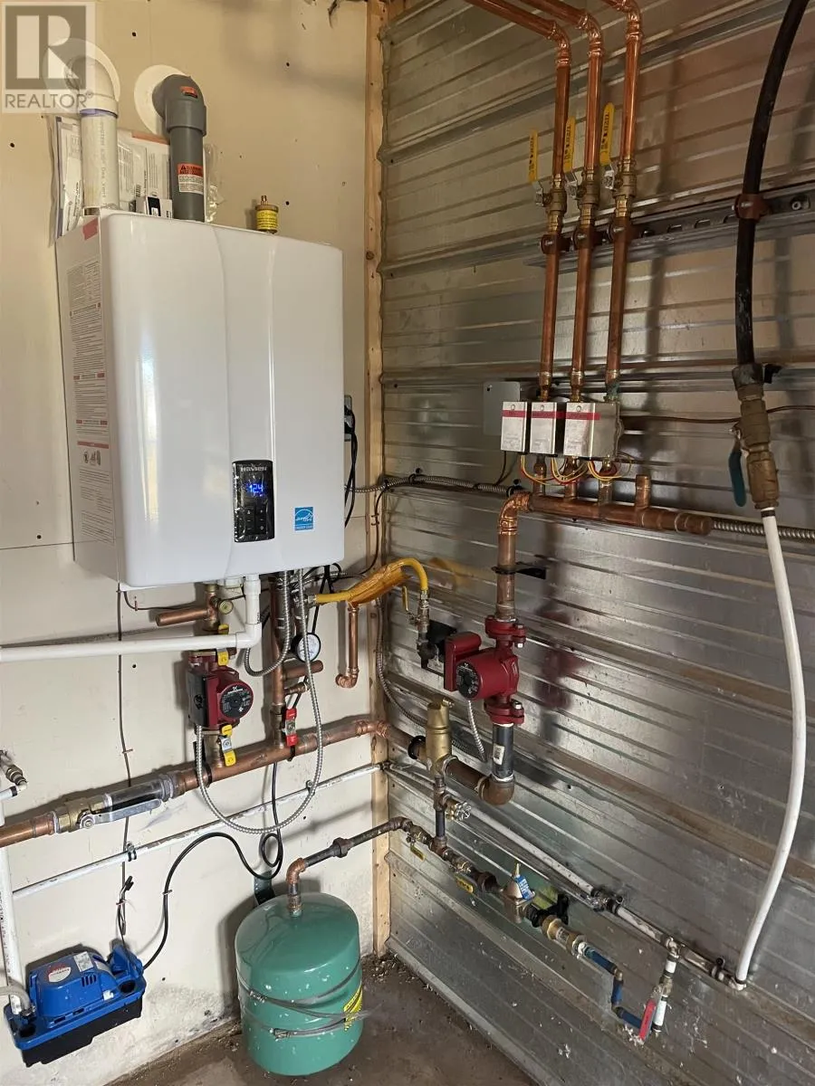 Located on Dalton Avenue, Tignish Here is a most unique secluded and private property having 2 acres distanced from the road located at 183 Dalton Avenue in Tignish Western PEI. Built in 1998 boasting over 1392 sq ft of living space. Home features knotty pine ceilings, custom built oak cabinets, the kitchen walls have copper back splashing. One will also appreciate the kitchen island and storage for preparing meals. The main area showcases rustic beams, arched doorways, textured stucco walls, laminate flooring, a welcoming double side light into with warm entry with cast iron rad heating. The heating system has been updated with a propane boiler furnace. In addition there is a Mini Split Futusizi heat pump in the downstairs living area. There is a den/office off the main floor. From the kitchen there is a good size utility room that could easily be converted back to a single car garage or small work shop or office. Home includes full bath upstairs with soaker tub and separate corner glass shower, downstairs has a half bath. Kitchen has a new patio door that leads to a private back garden. Home has a spacious living room area as well as a expandable kitchen/dining area. Oversized vinyl windows downstairs allowing extra lighting. Features also a beautiful railing and stairs leading to the second level where you have 3 good sized bedrooms. Lo The master bedroom has beautiful vaulted ceilings and has a double closet with two entrys. The other two bedrooms have good size closets. The laundry room area is located on the second floor. In addition we have a wired 24x50 work shop with steel exterior and steel roof and a spruce floor with a storage loft. This building is large enough to store a 45 ft fishing boat. Home is sold as is where is condition. Water and sewer is on municipal services. (id:27476)
