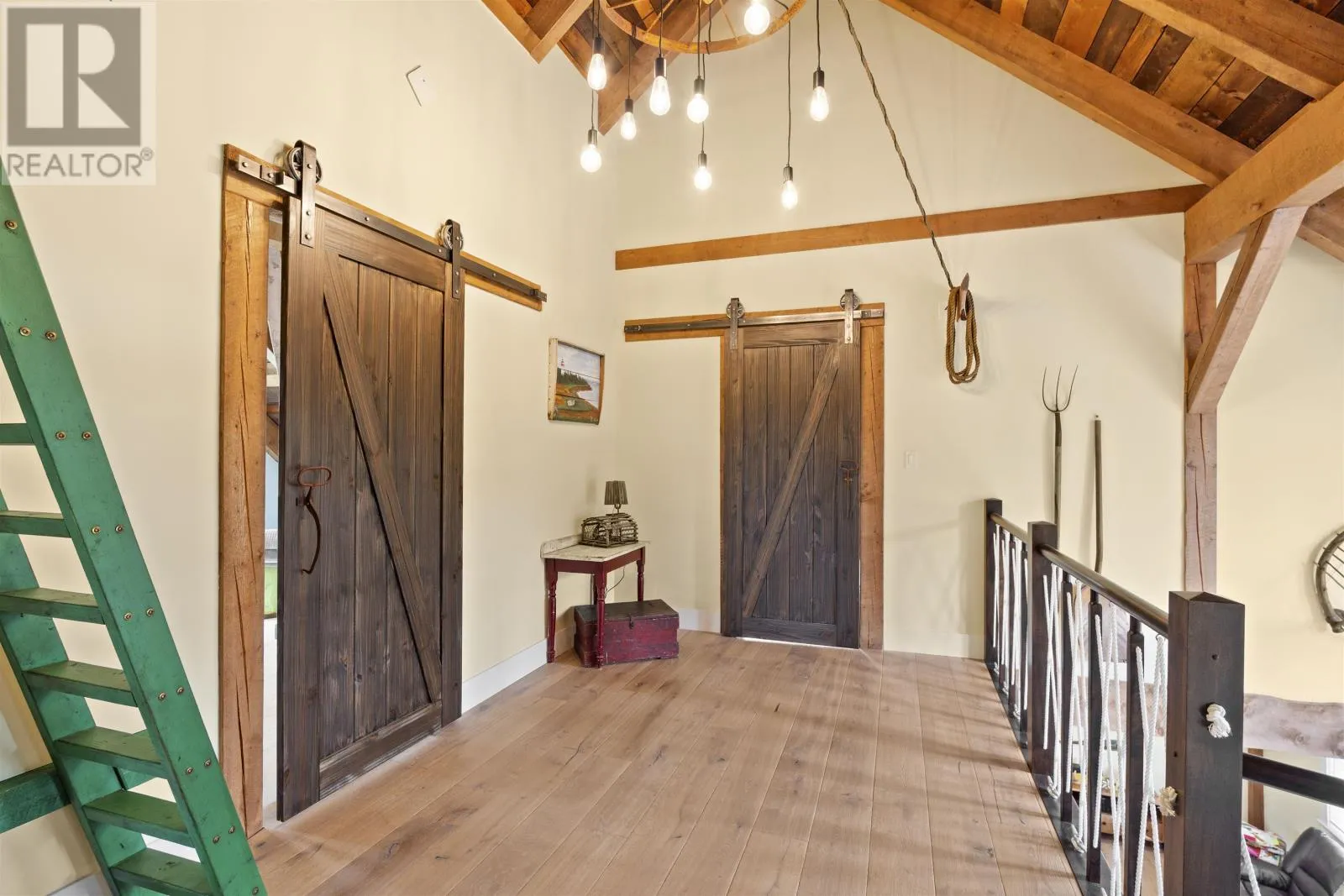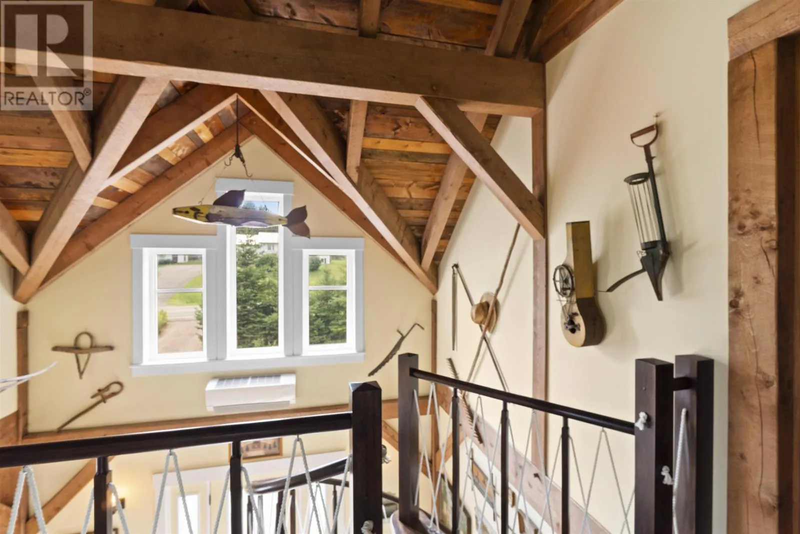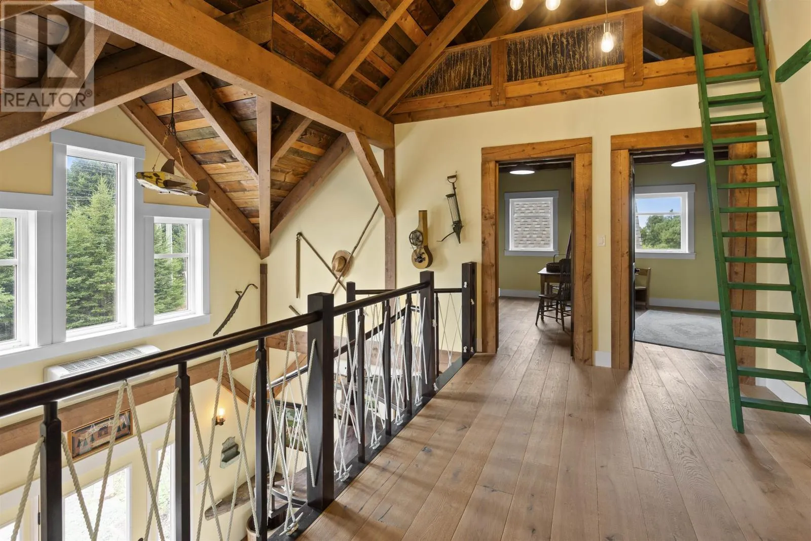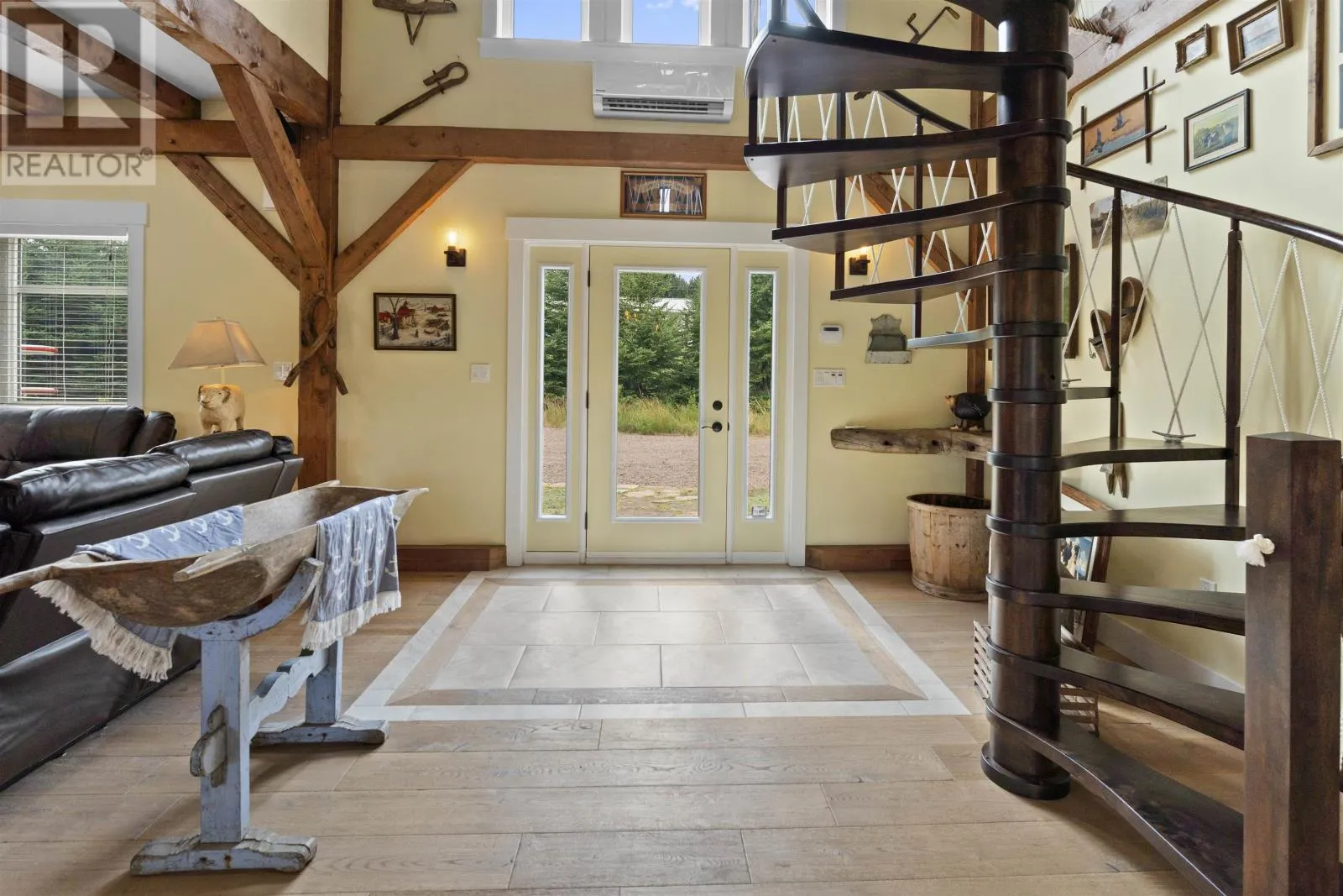 Welcome to 115 Allen Rd in the picturesque Tyne Valley, PEI, a stunning timber home that embodies both beauty and craftsmanship. This remarkable residence features four spacious bedrooms plus an inviting loft bedroom, offering ample space for family and guests. Nestled on nearly 7 acres of lush land, the property boasts a serene river backdrop and direct access to Tyne Valley's scenic trails, perfect for outdoor enthusiasts. Step inside to discover the charm of exposed beams and custom details throughout, highlighting the home's unique character. The chef's kitchen is a culinary dream, complete with one-of-a-kind cabinetry that adds a touch of elegance. A striking spiral staircase leads to modern, spacious bedrooms along with an upstairs bath which features a luxurious tub surrounded by large windows, allowing you to soak in the natural beauty of your surroundings. This home comes fully furnished, ensuring a seamless transition into your new lifestyle. Additional amenities include a large attached garage and an expansive deck with a barbecue area, ideal for entertaining or relaxing in the tranquil outdoors. Future development of the garage suite could lead to potential rental income. This exceptional property offers a rare opportunity to embrace a lifestyle of comfort and natural beauty in Tyne Valley. (id:27476)