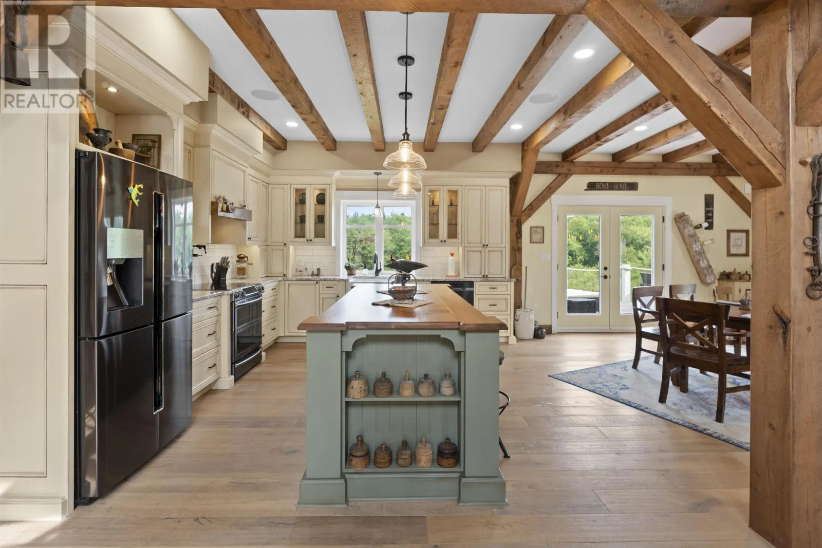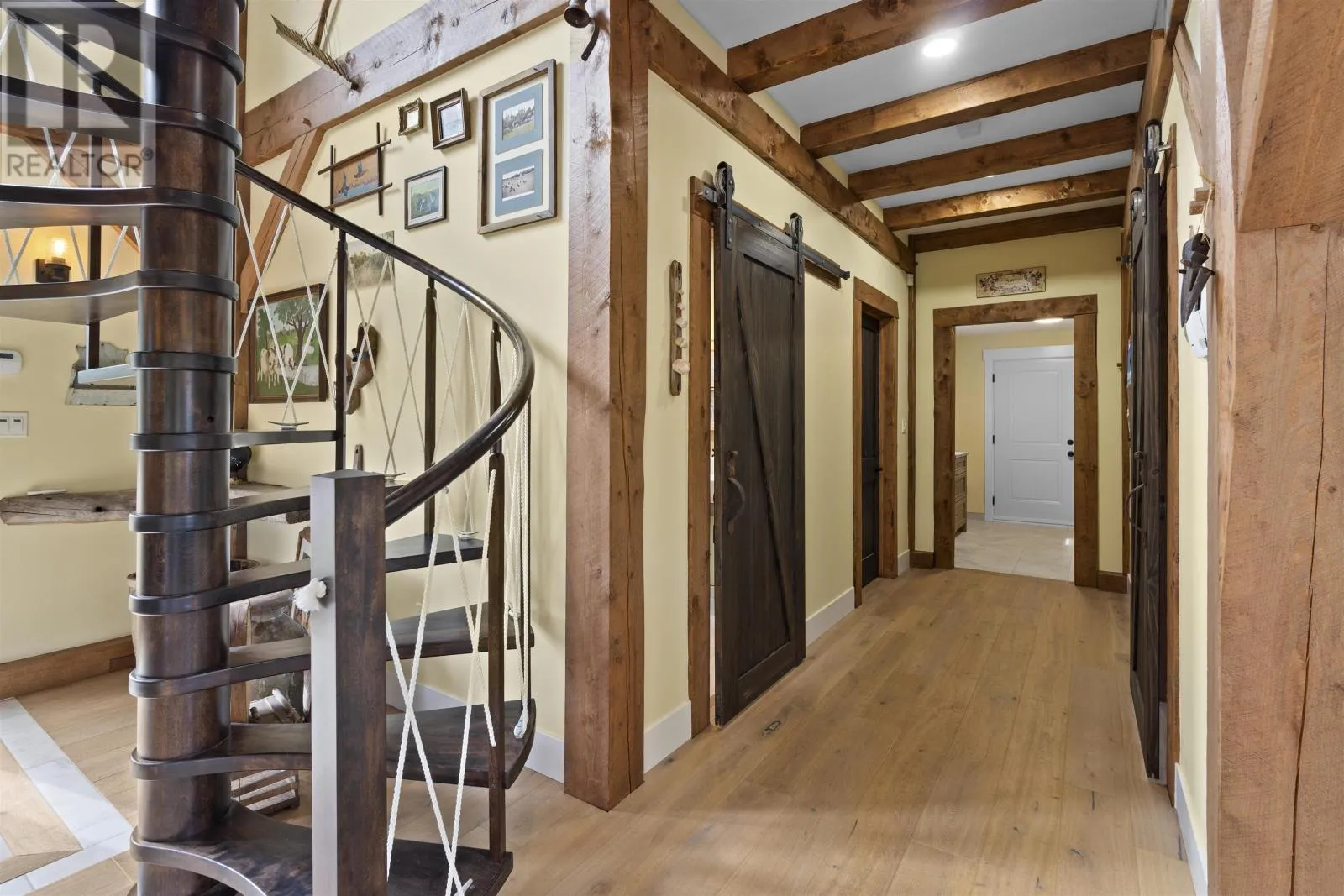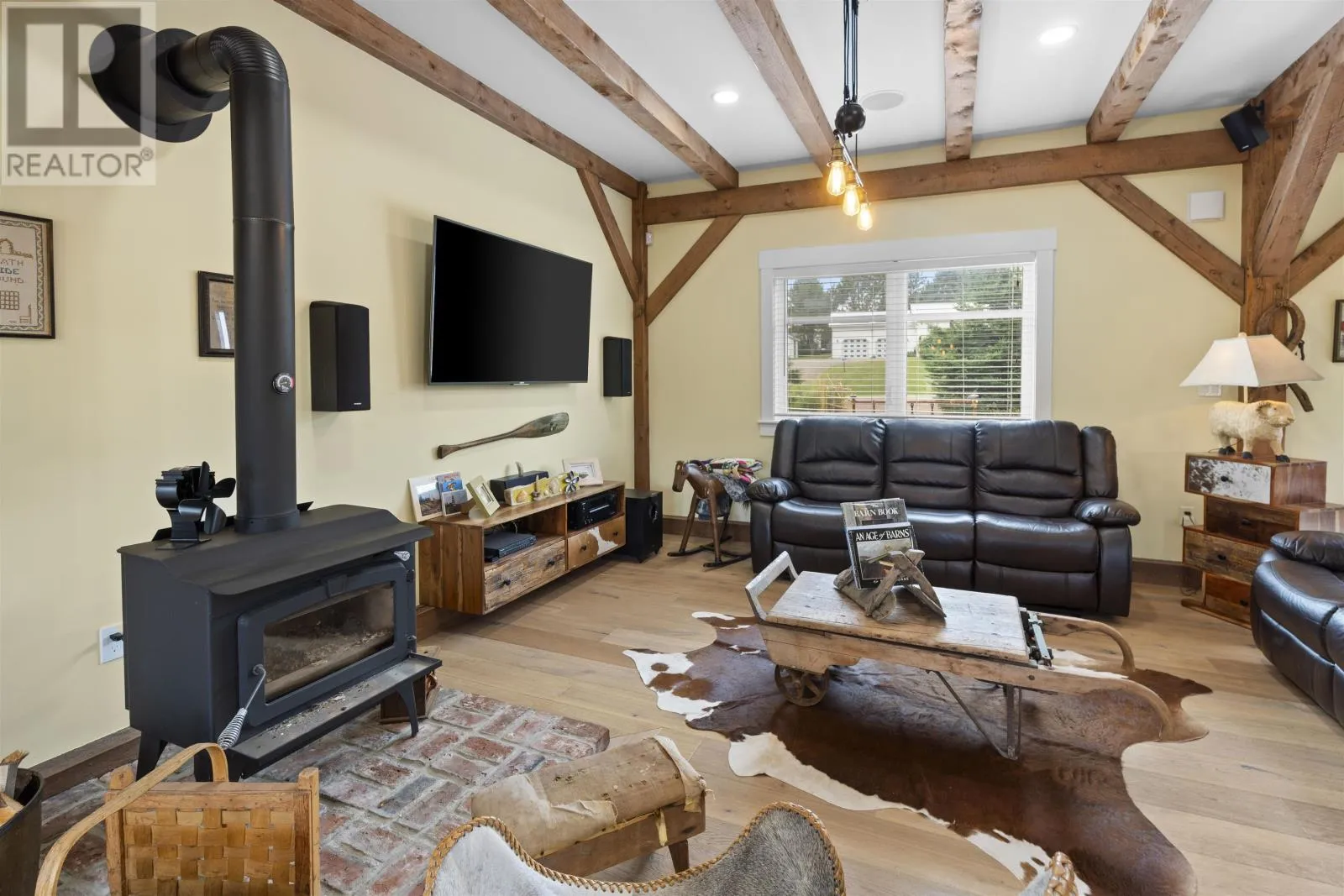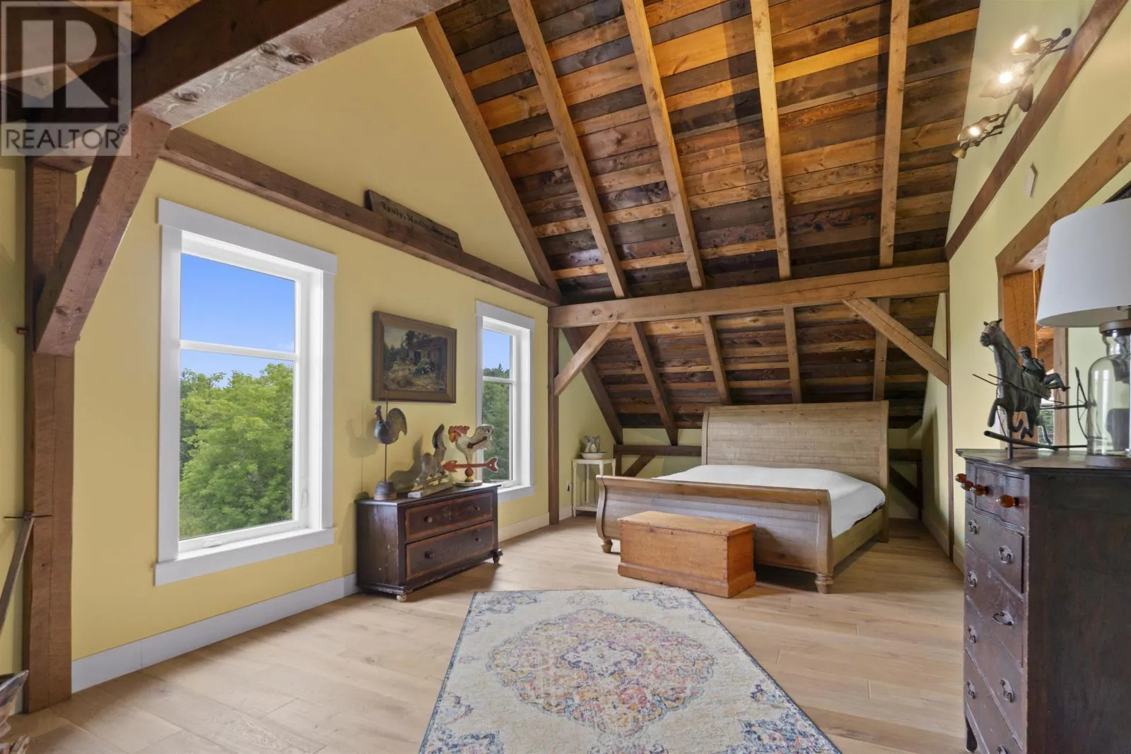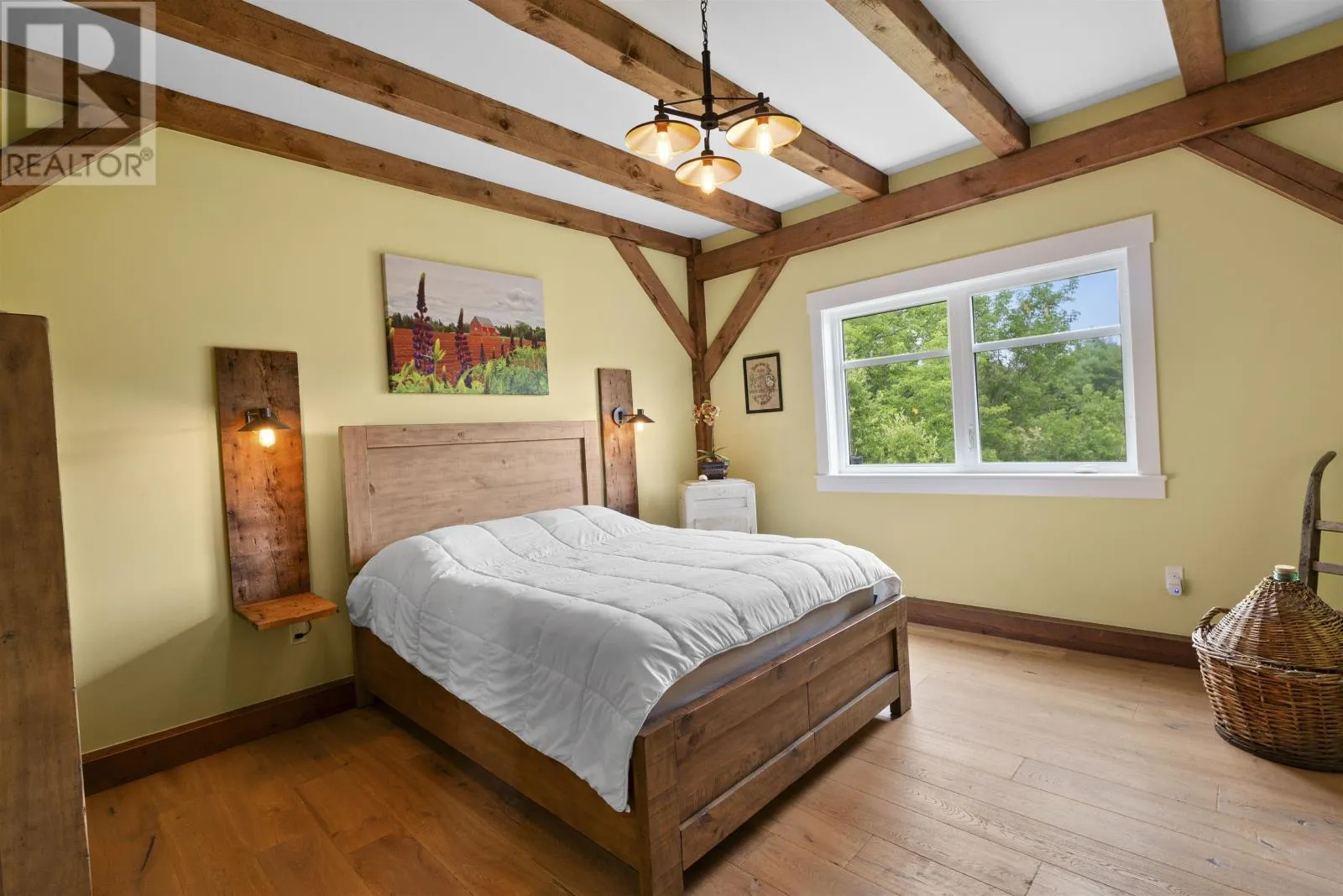 Welcome to 115 Allen Rd in the picturesque Tyne Valley, PEI, a stunning timber home that embodies both beauty and craftsmanship. This remarkable residence features four spacious bedrooms plus an inviting loft bedroom, offering ample space for family and guests. Nestled on nearly 7 acres of lush land, the property boasts a serene river backdrop and direct access to Tyne Valley's scenic trails, perfect for outdoor enthusiasts. Step inside to discover the charm of exposed beams and custom details throughout, highlighting the home's unique character. The chef's kitchen is a culinary dream, complete with one-of-a-kind cabinetry that adds a touch of elegance. A striking spiral staircase leads to modern, spacious bedrooms along with an upstairs bath which features a luxurious tub surrounded by large windows, allowing you to soak in the natural beauty of your surroundings. This home comes fully furnished, ensuring a seamless transition into your new lifestyle. Additional amenities include a large attached garage and an expansive deck with a barbecue area, ideal for entertaining or relaxing in the tranquil outdoors. Future development of the garage suite could lead to potential rental income. This exceptional property offers a rare opportunity to embrace a lifestyle of comfort and natural beauty in Tyne Valley. (id:27476)
