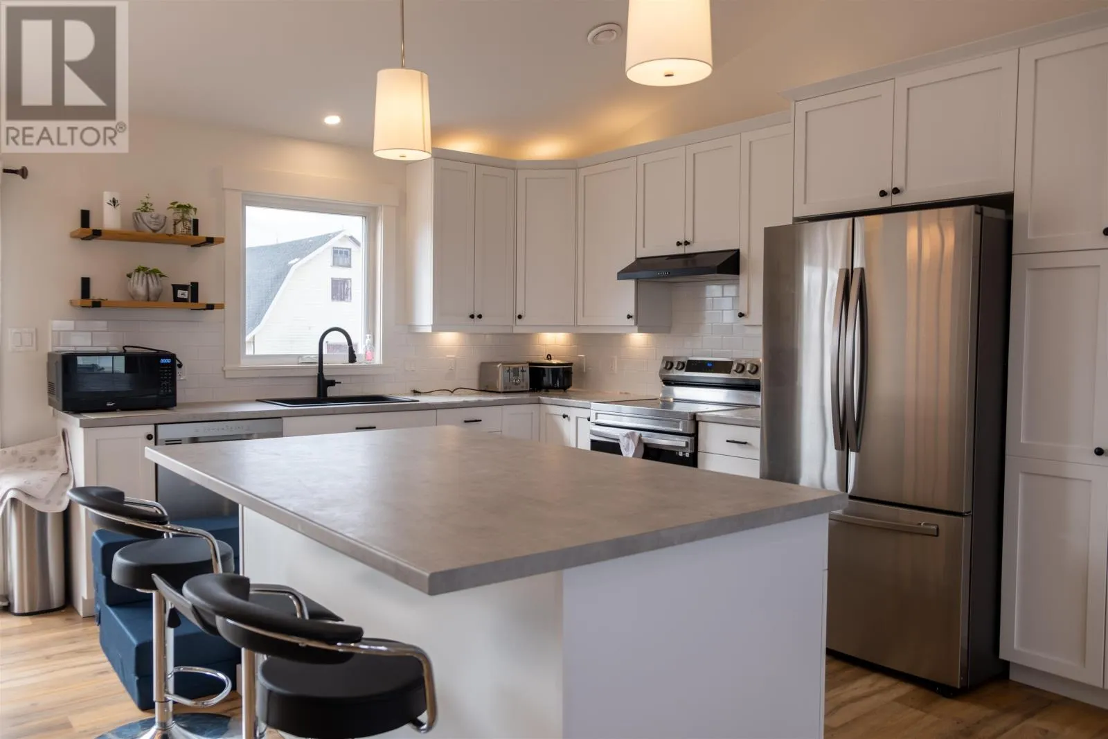 Tucked into the peaceful, family-friendly community of Warren Grove, this thoughtfully crafted split-entry home at 76 Cheryl Crescent offers the best of both worlds: a modern lifestyle paired with a flexible layout ideal for multi-generational living or income potential. Just two years young, the property blends form and function across two well-designed levels, all within a 10-minute drive of Charlottetown. From the moment you step inside, the wide foyer sets the tone with a welcoming, open feel. A broad staircase connects both the main living area and the self-contained 441 sq. ft. lower-level unit?complete with a private entrance. Whether used for extended family or as a rental, this suite adds tremendous value and versatility. Upstairs, cathedral ceilings elevate the sense of space and light. The heart of the home is the open-concept kitchen and living area, where stainless steel Samsung appliances, bright white cabinetry, and a generous eat-in island create a fresh and functional space for gathering. The living room, framed by an elegant oak spindle railing, is perfectly positioned to enjoy the flow of natural light from the large front windows. Toward the back of the upper level, the primary bedroom feels like a retreat, thanks to its large transom window, walk-in closet, and calming ambiance. A stylish 4-piece bathroom sits nearby, along with a second bedroom offering a northern exposure and ample closet space. Outside, a fenced, south-facing backyard awaits?ideal for gardening, outdoor play, or simply enjoying the fresh PEI air. A single attached garage adds convenience, rounding out a home that delivers comfort, flexibility, and thoughtful design in equal measure. (id:27476)