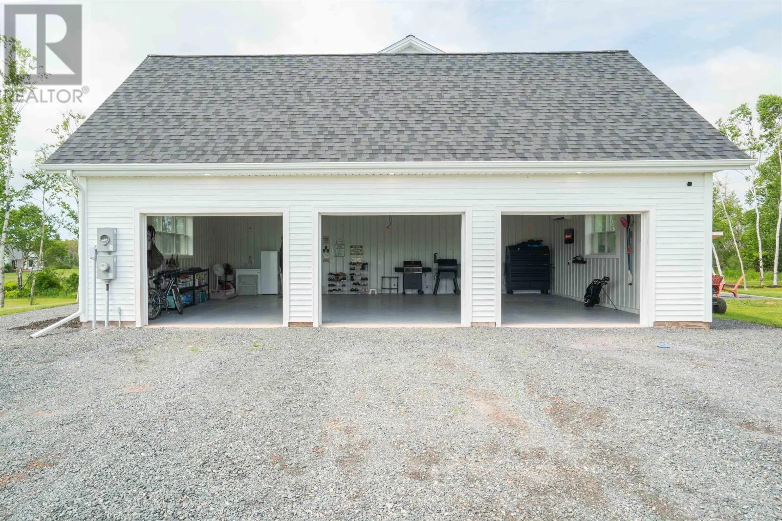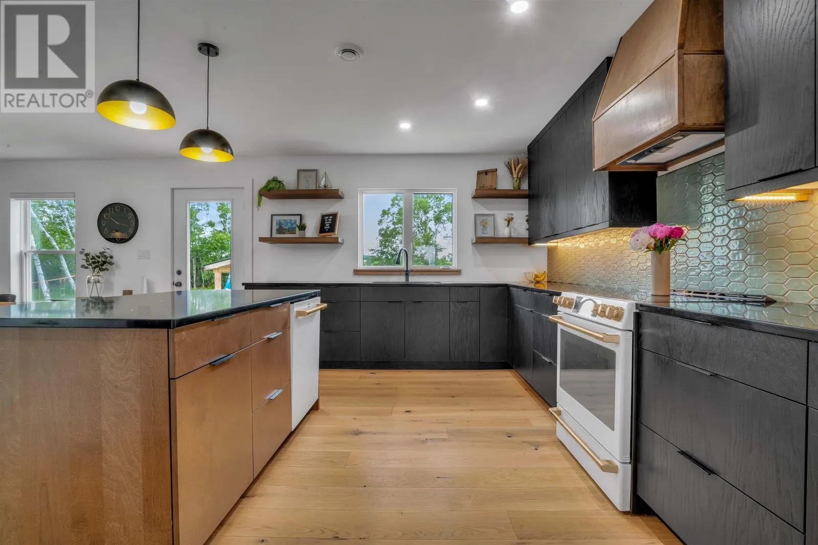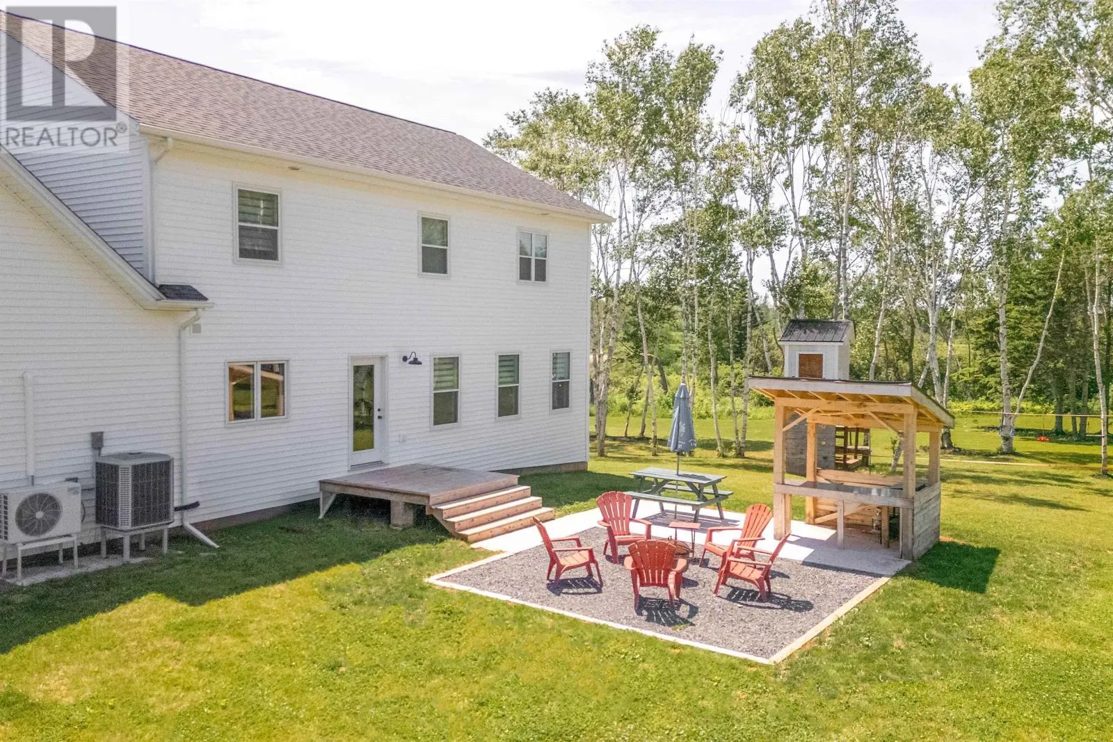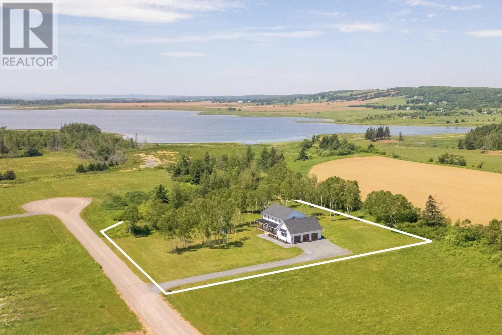 Set on 2.4 private acres in Pownal?s desirable waterfront enclave, this custom-built residence offers elevated construction, refined finishings, and a warmth of design that?s rare to find. With expansive views across the saltwater shores of Pownal Bay, the home captures natural light from every angle and is tailored for both elegant entertaining and ease of daily living. A gorgeous vaulted covered veranda leads to a modern foyer with luxury vinyl flooring and custom built-ins, setting the tone for the elegant yet comfortable living spaces beyond. The main level features wide plank white oak hardwood, a large living area with fireplace and full-height built-ins, and a kitchen designed by Capstone with oak cabinetry in a midnight stain, a birch island in coffee bean, black quartz countertops, and Café appliances. The adjacent butler?s pantry includes a second fridge, second dishwasher, and maple-trimmed shelving. A fifth bedroom or office, full bath, and oversized laundry room with built-in shelving complete this level. Off the open-concept living and dining area is an outdoor kitchen with granite countertops and protection from the elements for year-round cooking, alongside a large outdoor dining space and fireplace ideal for hosting. A shore-facing office (5th bedroom) and half-bath complete the main level tastefully. Upstairs, the spacious primary suite offers a water view, double closets, and ensuite with radiant floor heat. Three additional bedrooms and a gorgeous 4 piece bathroom with double vanity and tub complete the upper floor. The finished lower level includes a large family or media room and full bath. Completing the picture are a heated triple garage with steel walls and ceiling, HRV, solar prewiring, triple-pane windows, Enerair panels, and a highly efficient ducted heat pump system with propane backup. A field of tulips blooms behind the property each spring. Just minutes from Stratford and Charlottetown in (id:27476)