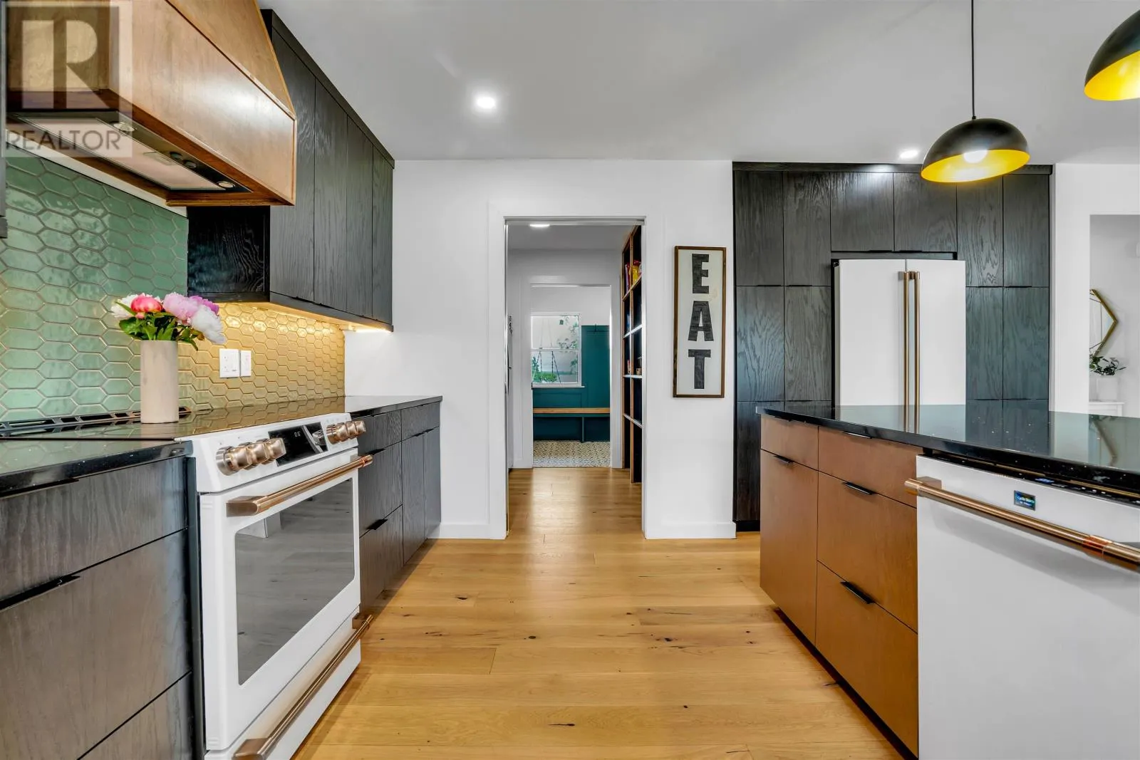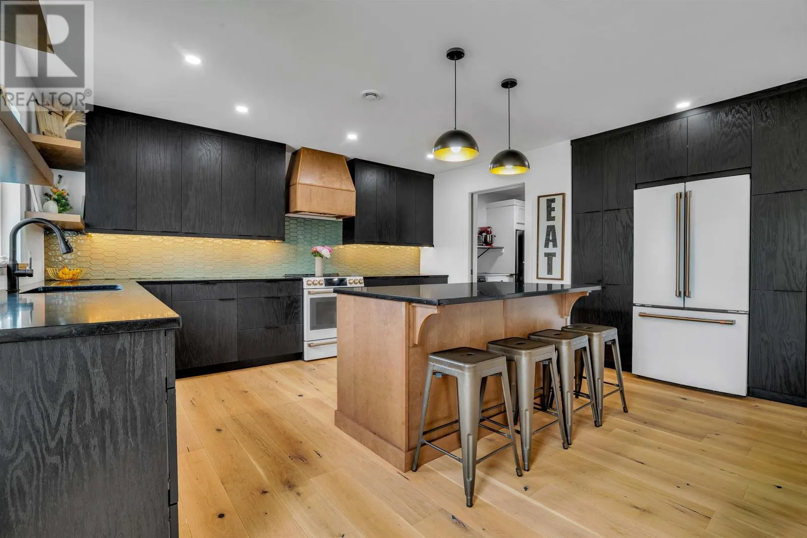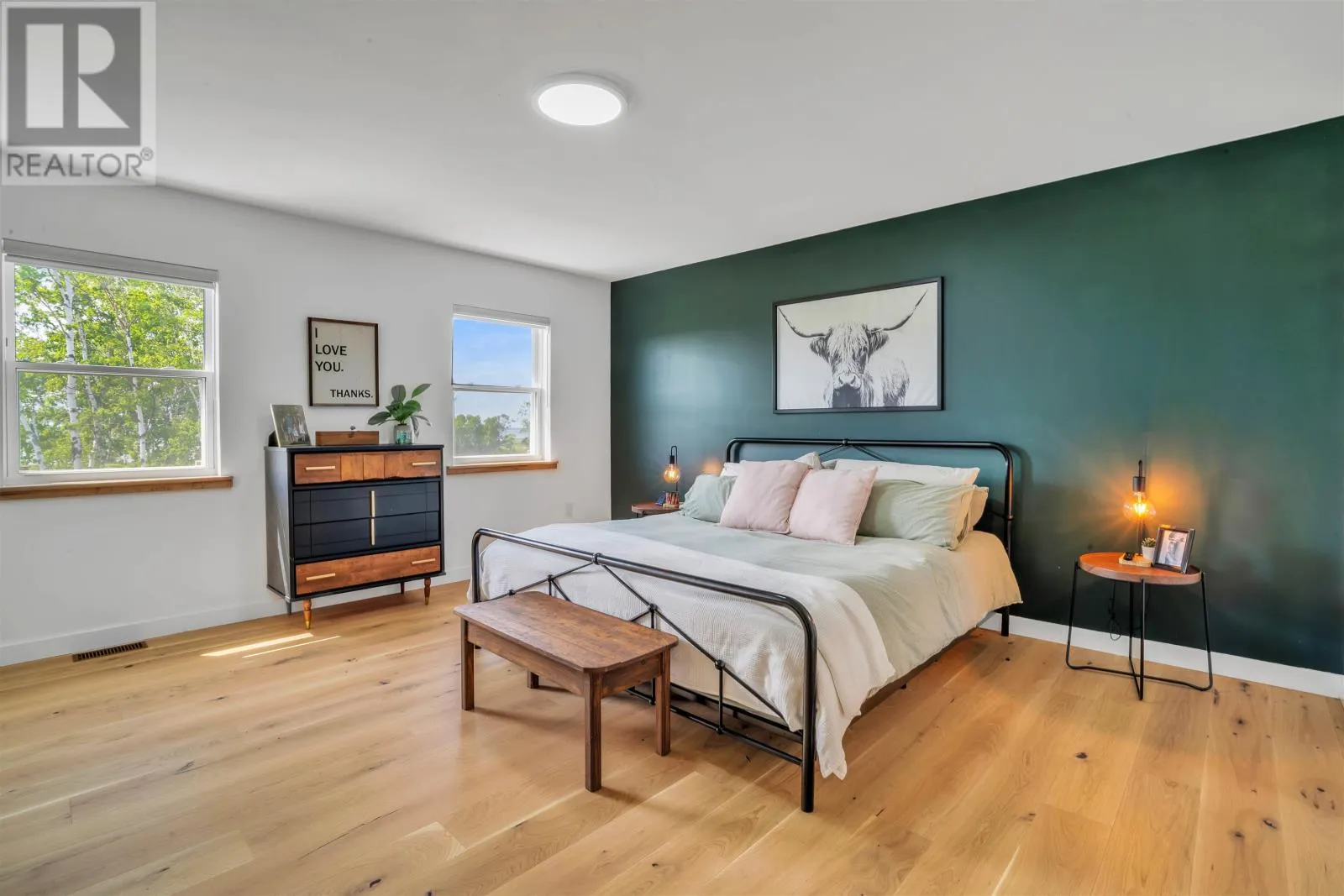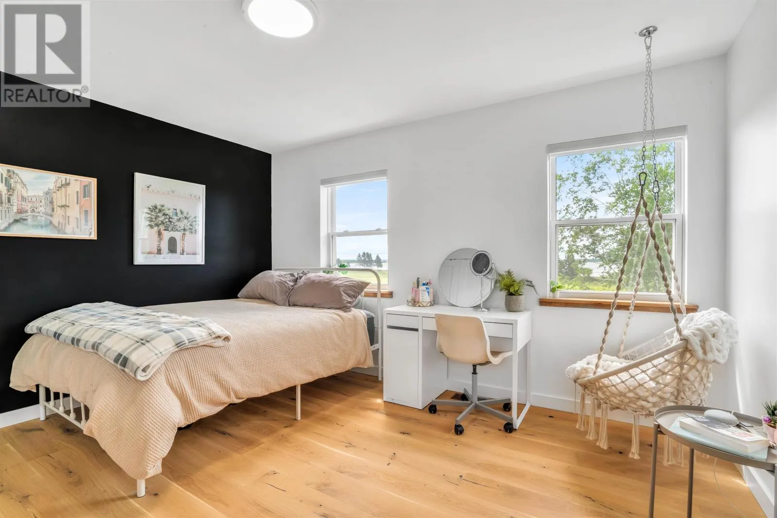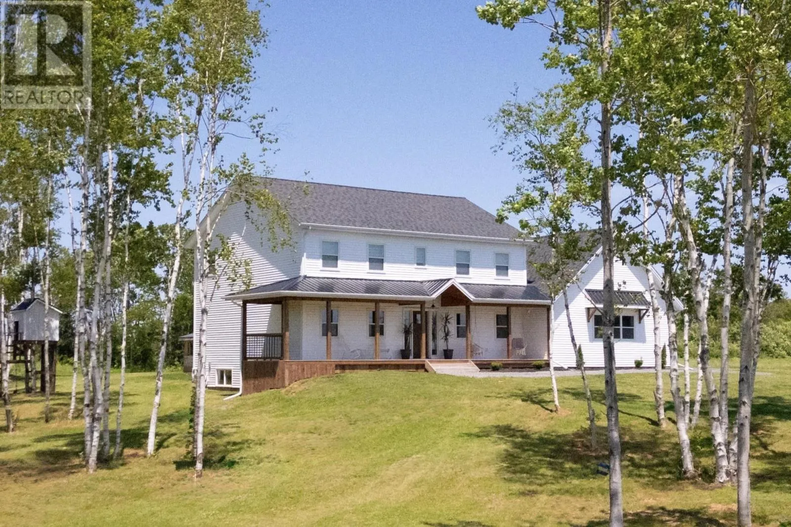 Set on 2.4 private acres in Pownal?s desirable waterfront enclave, this custom-built residence offers elevated construction, refined finishings, and a warmth of design that?s rare to find. With expansive views across the saltwater shores of Pownal Bay, the home captures natural light from every angle and is tailored for both elegant entertaining and ease of daily living. A gorgeous vaulted covered veranda leads to a modern foyer with luxury vinyl flooring and custom built-ins, setting the tone for the elegant yet comfortable living spaces beyond. The main level features wide plank white oak hardwood, a large living area with fireplace and full-height built-ins, and a kitchen designed by Capstone with oak cabinetry in a midnight stain, a birch island in coffee bean, black quartz countertops, and Café appliances. The adjacent butler?s pantry includes a second fridge, second dishwasher, and maple-trimmed shelving. A fifth bedroom or office, full bath, and oversized laundry room with built-in shelving complete this level. Off the open-concept living and dining area is an outdoor kitchen with granite countertops and protection from the elements for year-round cooking, alongside a large outdoor dining space and fireplace ideal for hosting. A shore-facing office (5th bedroom) and half-bath complete the main level tastefully. Upstairs, the spacious primary suite offers a water view, double closets, and ensuite with radiant floor heat. Three additional bedrooms and a gorgeous 4 piece bathroom with double vanity and tub complete the upper floor. The finished lower level includes a large family or media room and full bath. Completing the picture are a heated triple garage with steel walls and ceiling, HRV, solar prewiring, triple-pane windows, Enerair panels, and a highly efficient ducted heat pump system with propane backup. A field of tulips blooms behind the property each spring. Just minutes from Stratford and Charlottetown in (id:27476)