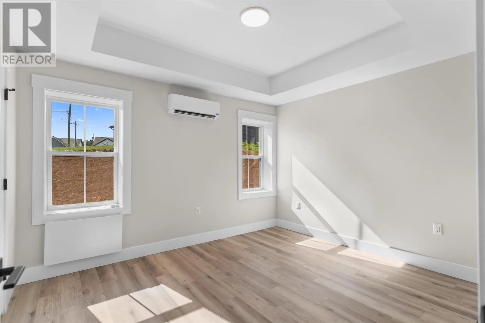 Not everyone needs sprawling square footage, but you do expect it to feel like a home. At 86 Stanmol Drive, that feeling is immediate. Set in the heart of Hidden Valley, this newly constructed single-level home by Falcon Properties delivers thoughtful design and upscale finishes that elevate everyday living. From the street, the aesthetic is striking yet warm with white polymer board and batten pairs effortlessly with cedar-toned faux shingle accents. Black-framed windows, matching doors and a sleek double garage with a window detailing create a contemporary contrast, all topped with a premium architectural asphalt shingle roof. Inside, the tone is quietly luxurious. The great room welcomes you with a recessed tray ceiling, built-in electric fireplace and soft LED potlights that offer both ambiance and function. The adjacent kitchen is a statement in itself with quartz countertops, black subway tile backsplash and a full appliance package are all framed by cabinetry that balances utility with elegance. The floor plan was designed with livability in mind: guest bedrooms are tucked away from the primary suite, offering privacy for you and your visitors. The primary retreat features another trayed ceiling, a generous walk-in closet and a spa-like ensuite complete with a custom tiled walk-in shower. Acknowledging that comfort lies in the details, the home is heated and cooled by a central ductless heat pump with supplementary electric rads. Laminate flooring throughout the home matched with ceramic tile in all wet areas (Entry, Laundry & Baths) combines both efficiency and aesthetic continuity together. Step outside to enjoy an 8'x19? on-grade wooden deck to enjoy the fresh island air in your backyard. Timeless design, intentional layout and a setting that makes coming home something to look forward to. (id:27476)