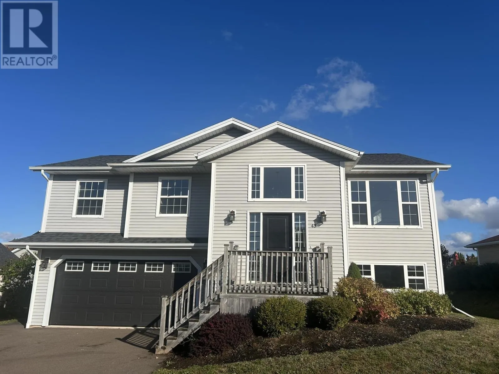 This 7 year old 4 bedroom, 3 bathroom split entry home is in a safe family friendly West Royalty neighbourhood close to everything Charlottetown has to offer. The upstairs consists of 3 bedrooms and the 2 baths. The primary bedroom has its own ensuite. The living area is a beautiful open concept where you can enjoy family or host friends. The lower level has a fourth bedroom, a full bath and a family room. The home also has a double garage and outside you will find a large deck and fenced in backyard. Come check this one out today. (id:27476)