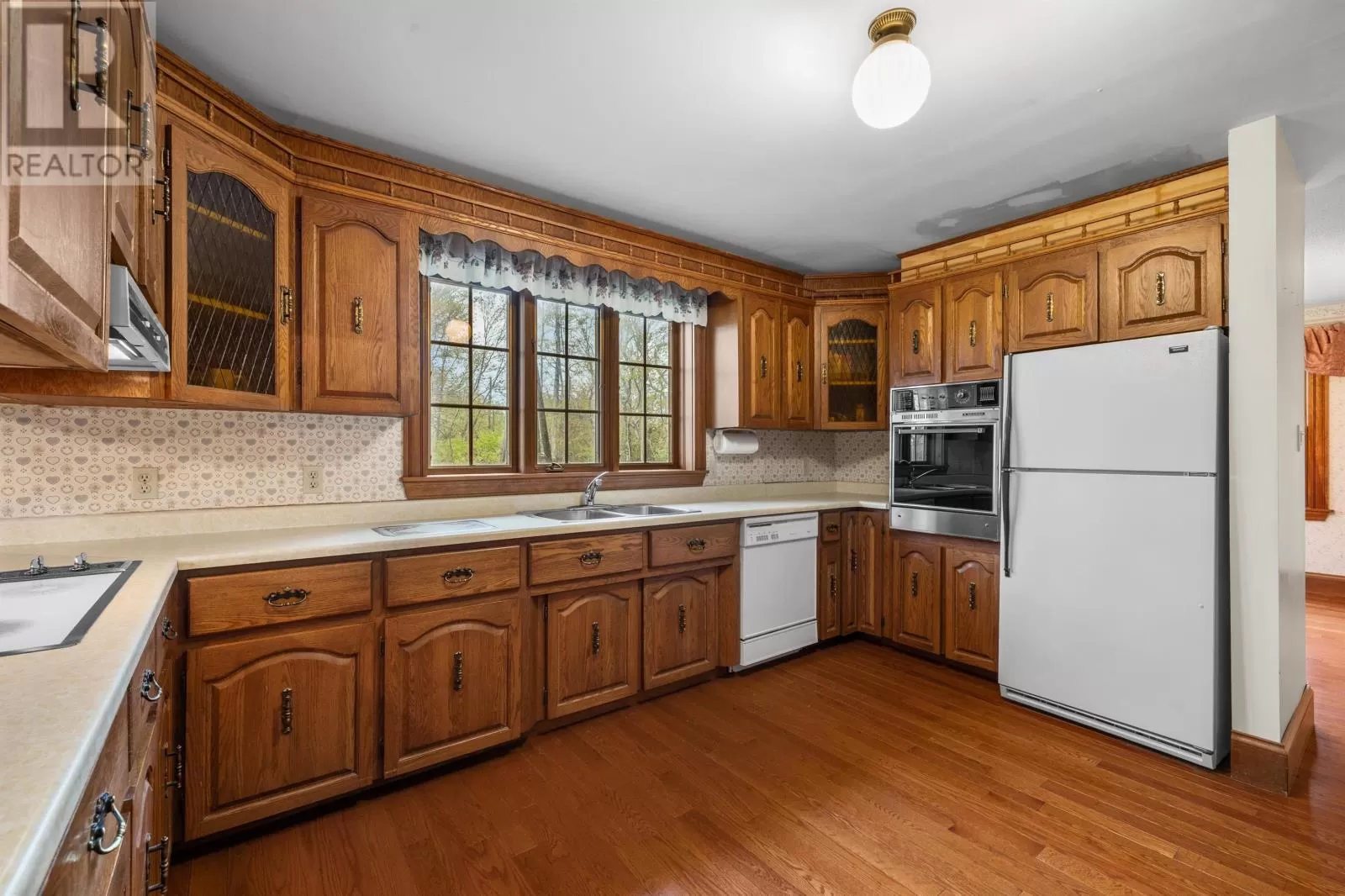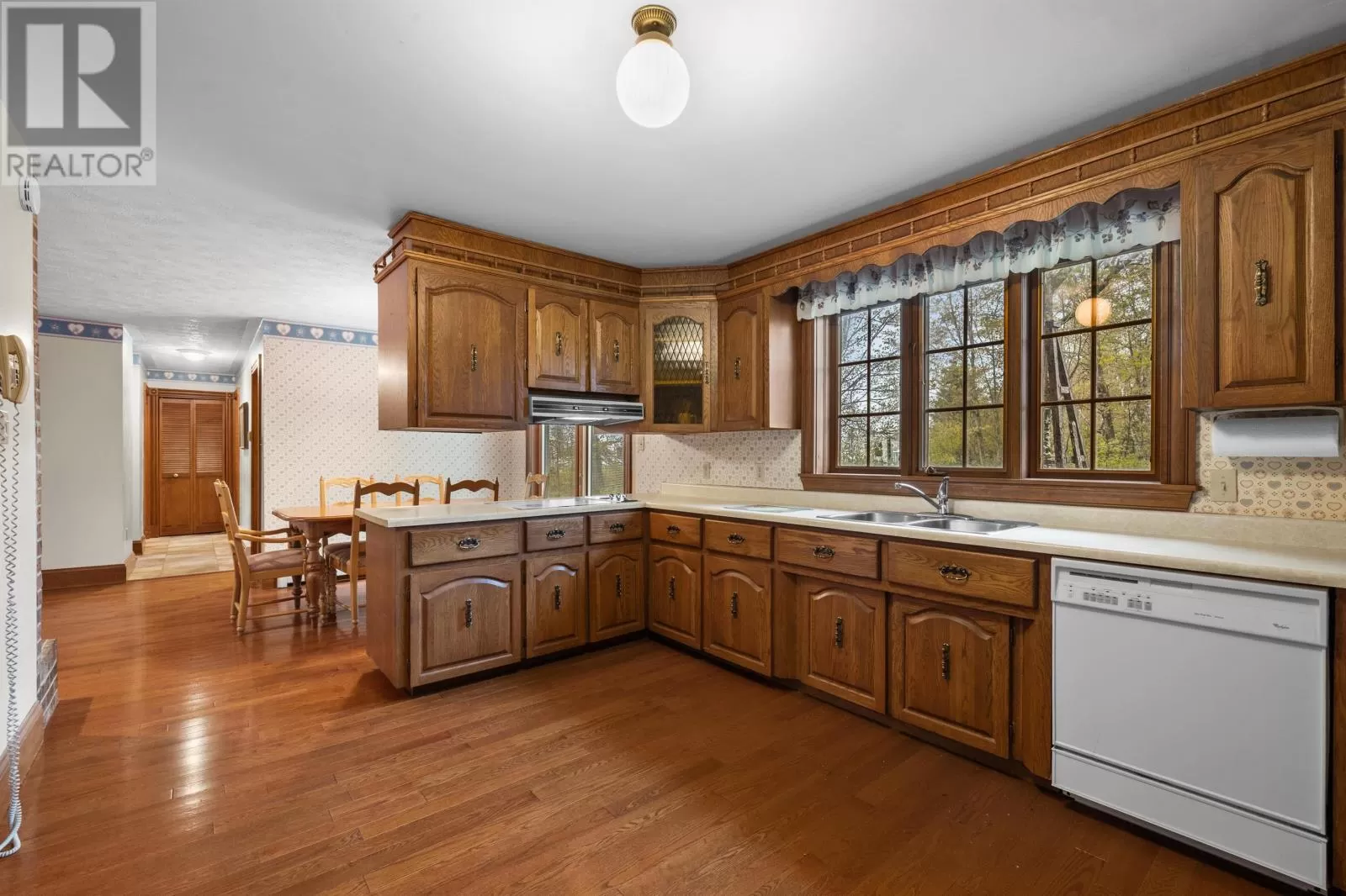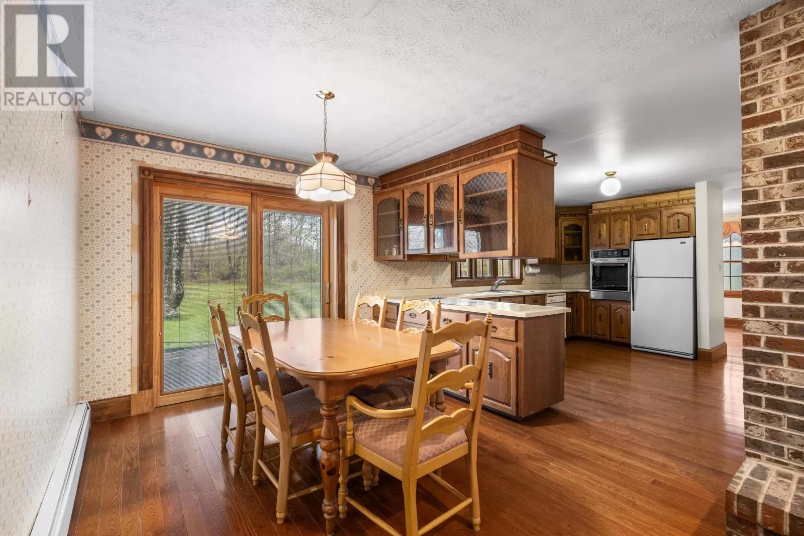This home sits on a lovely lot with mature hardwood trees, established perennial gardens and plenty of space to enjoy the beauty of nature year-round. As your guests enter they will be greeted by the impressive staircase leading to the top floor. On the right is a 250 sqft room with two windows overlooking the front yard, a chandelier and french doors. On the left is a 240 sqft room with wood burning fireplace and a matching wood storage box. The kitchen is next with patio doors to back deck. Also on this floor is a smaller cozy room which would be perfect for a den facing the backyard, an office, a half bathroom & a laundry room. On the upper level we have a primary suite with walk in closet and a washroom with ceramic tiled shower. The other two rooms are also oversized with large closets and there is a full washroom with tub. Above the garage is 380 sqft 'bonus' room with exposed beams which needs to be seen. The basement is full concrete, undeveloped, high & dry. All this with the bonus of a detached double garage with unfinished loft. While this home can use a few cosmetic updates it is move in ready waiting for your personal touches. (id:27476)