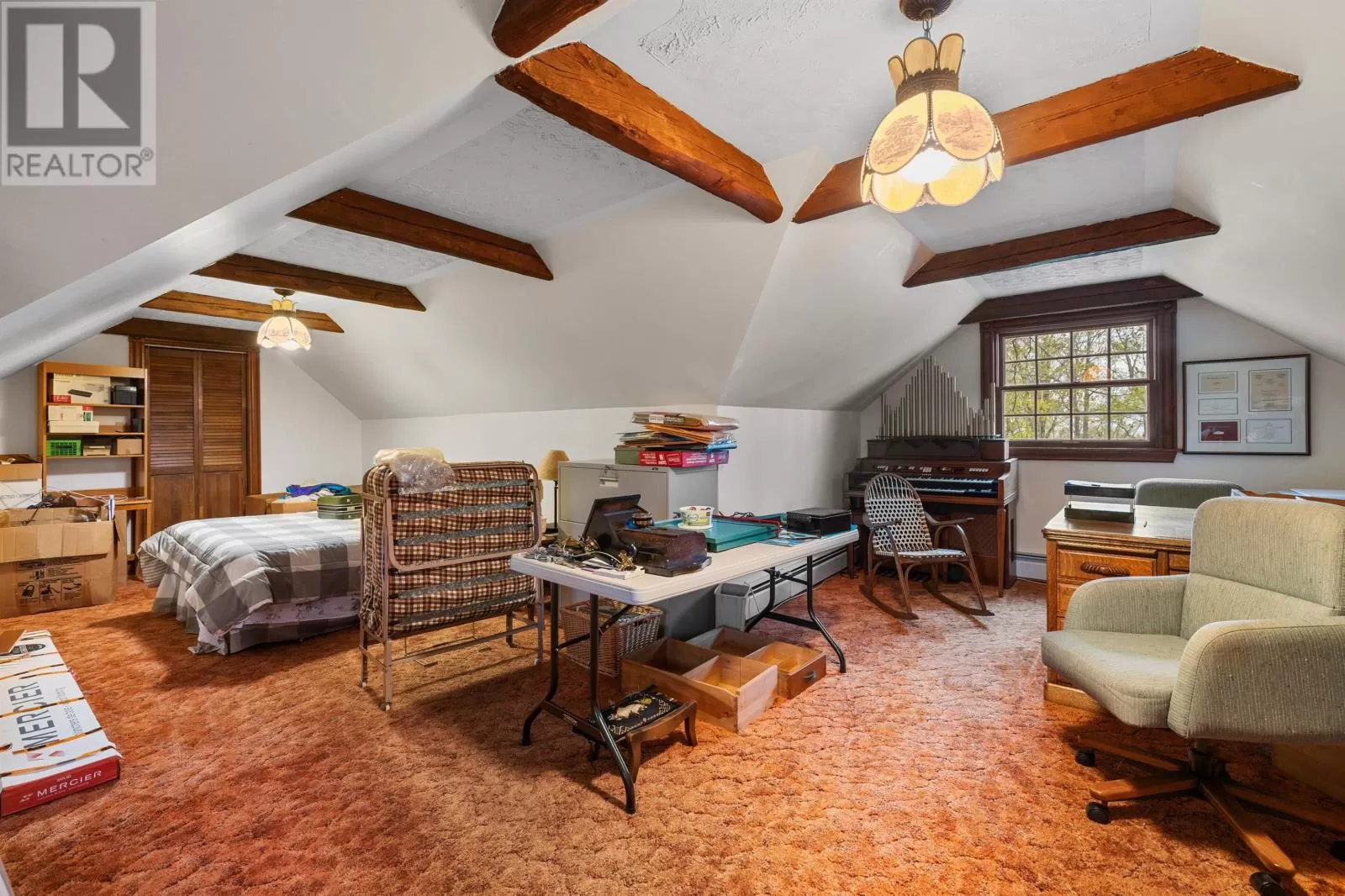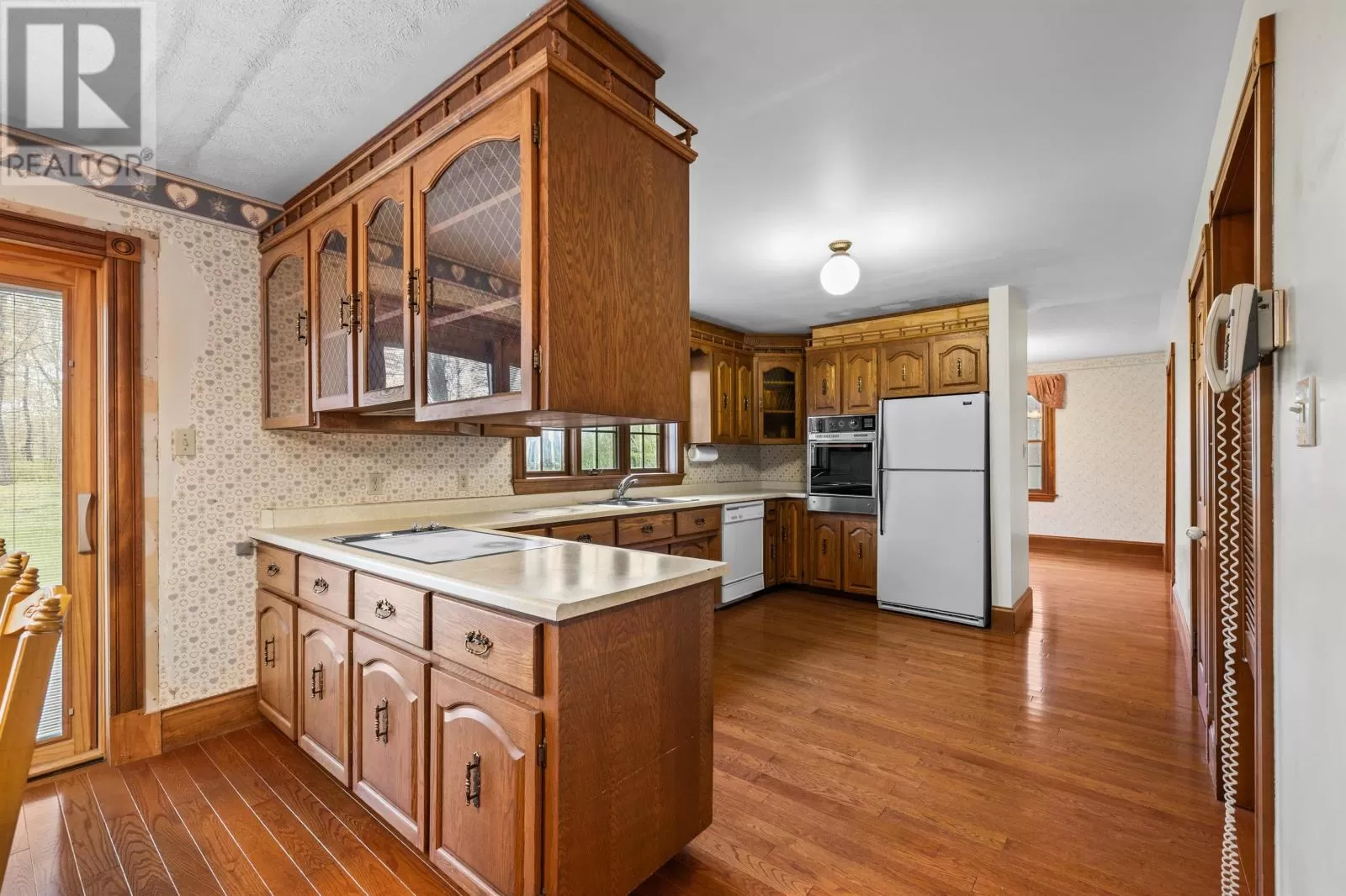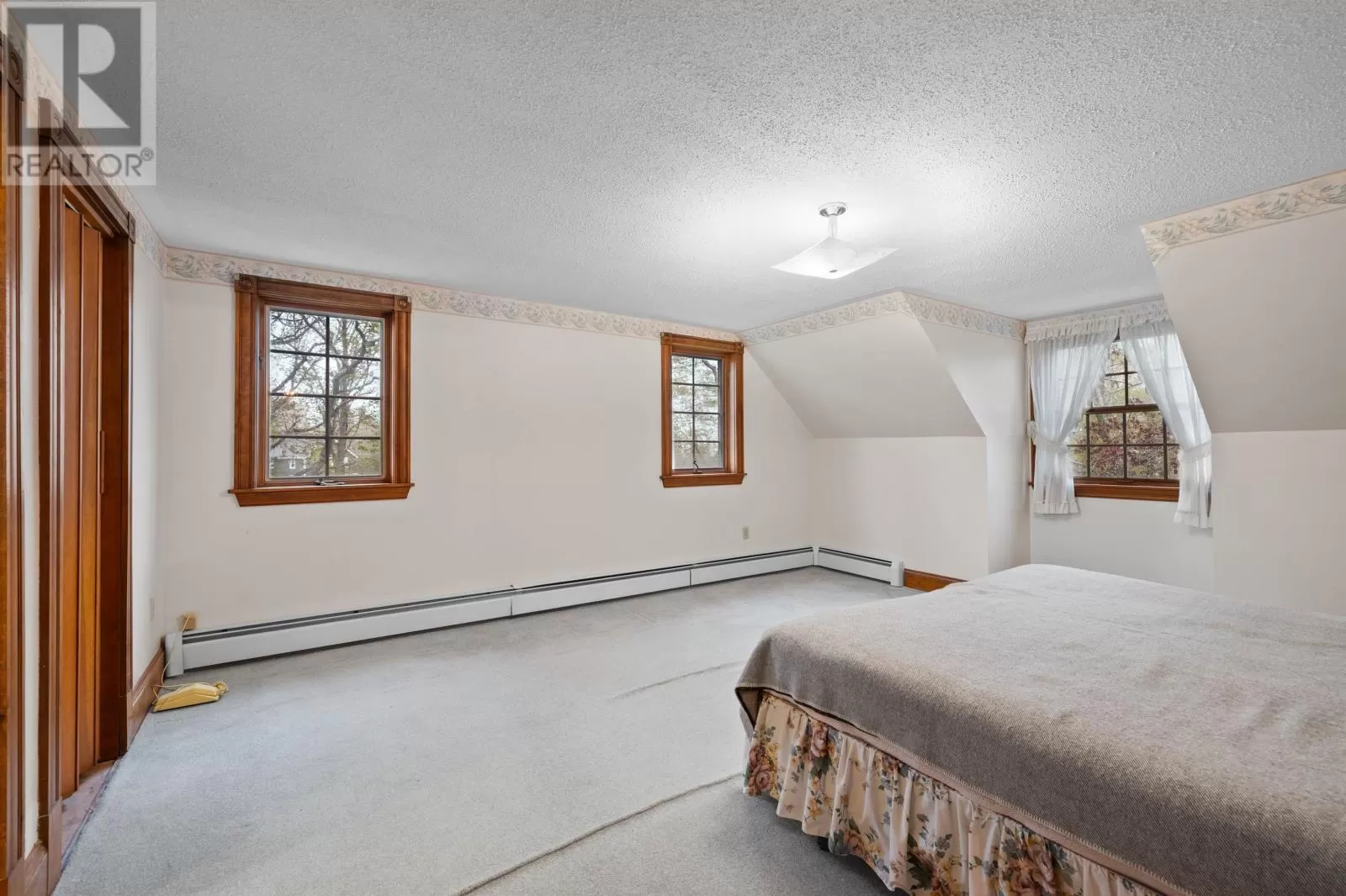This home sits on a lovely lot with mature hardwood trees, established perennial gardens and plenty of space to enjoy the beauty of nature year-round. As your guests enter they will be greeted by the impressive staircase leading to the top floor. On the right is a 250 sqft room with two windows overlooking the front yard, a chandelier and french doors. On the left is a 240 sqft room with wood burning fireplace and a matching wood storage box. The kitchen is next with patio doors to back deck. Also on this floor is a smaller cozy room which would be perfect for a den facing the backyard, an office, a half bathroom & a laundry room. On the upper level we have a primary suite with walk in closet and a washroom with ceramic tiled shower. The other two rooms are also oversized with large closets and there is a full washroom with tub. Above the garage is 380 sqft 'bonus' room with exposed beams which needs to be seen. The basement is full concrete, undeveloped, high & dry. All this with the bonus of a detached double garage with unfinished loft. While this home can use a few cosmetic updates it is move in ready waiting for your personal touches. (id:27476)