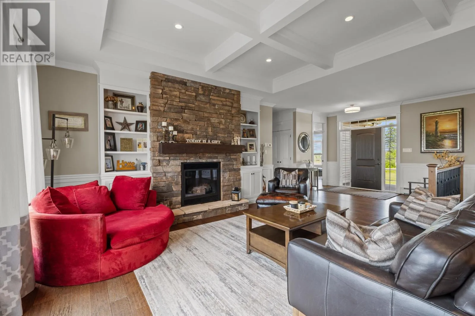Stunning Custom-Built 3600 sq ft Home just minutes from Charlottetown. Don't miss the opportunity to own this beautifully crafted custom home located just a short drive from Charlottetown. Enjoy the tranquility of a country setting with the convenience of being close to all the city's amenities. This spacious home features 5 generously sized bedrooms and 3 full bathrooms, perfect for a growing family or those who love to entertain. The open-concept kitchen and living area is ideal for hosting and everyday living, while the large basement offers a large family room with oversized windows that let in plenty of natural light. You'll also find two dedicated storage rooms to meet all your family's needs Designed with quality and detail in mind, the home boasts coffered ceilings, elegant wainscoting, stylish trim, high-end fixtures, and a soothing, modern color palette. The luxurious primary suite features a spa-inspired ensuite bathroom, creating a perfect retreat at the end of the day. Every bedroom is thoughtfully laid out and generously sized for comfort and functionality. The oversized two-car garage provides ample room for your vehicles - including a truck - and plenty of additional storage space. This home is a rare blend of style, space, and location. (id:27476)