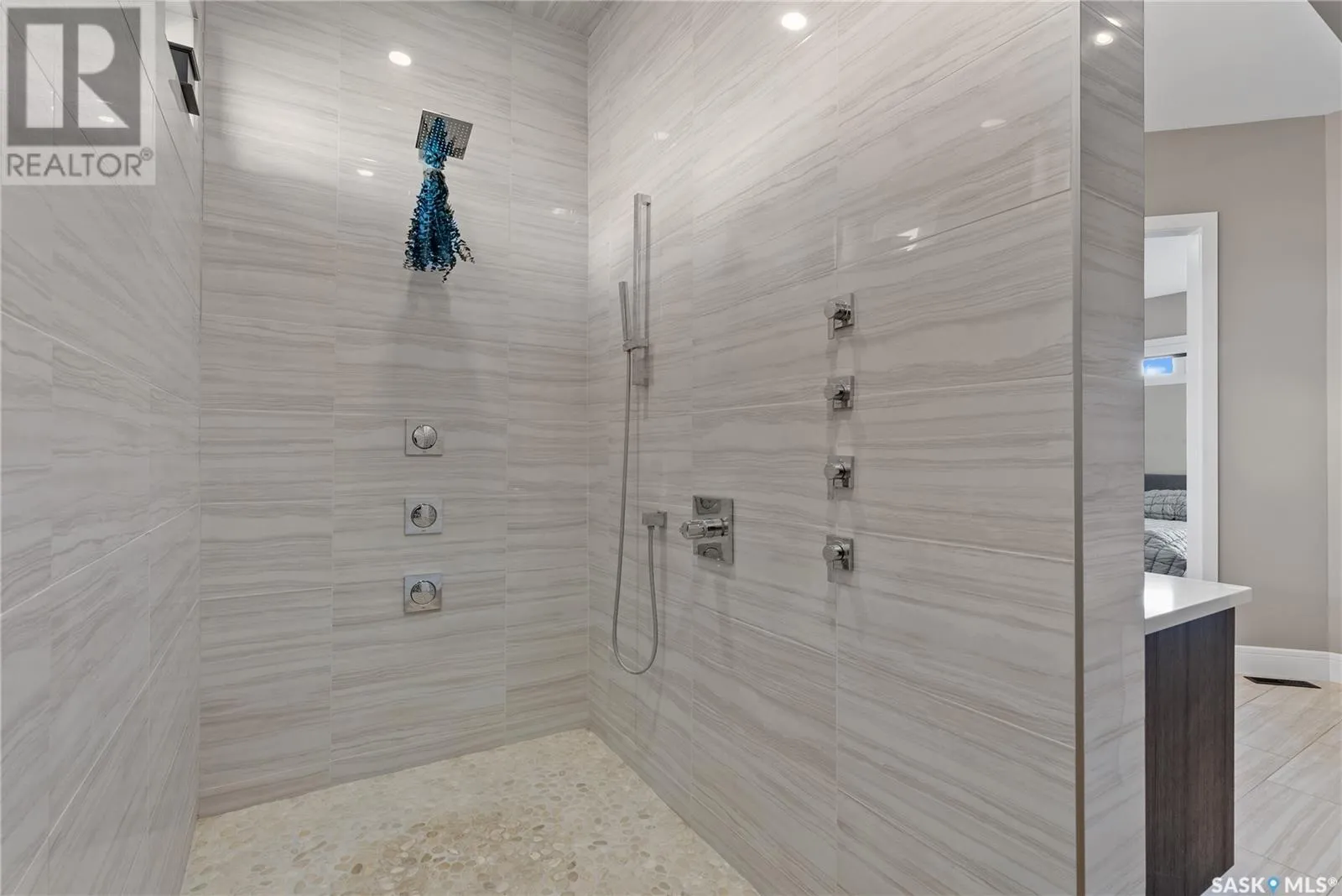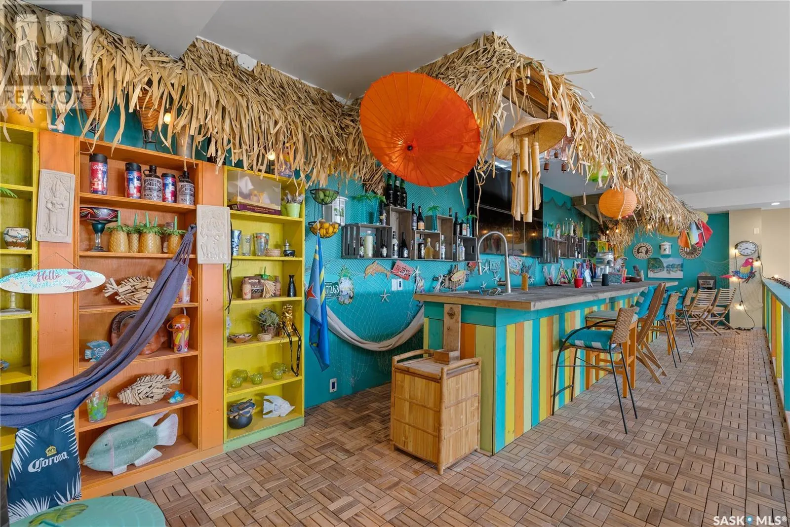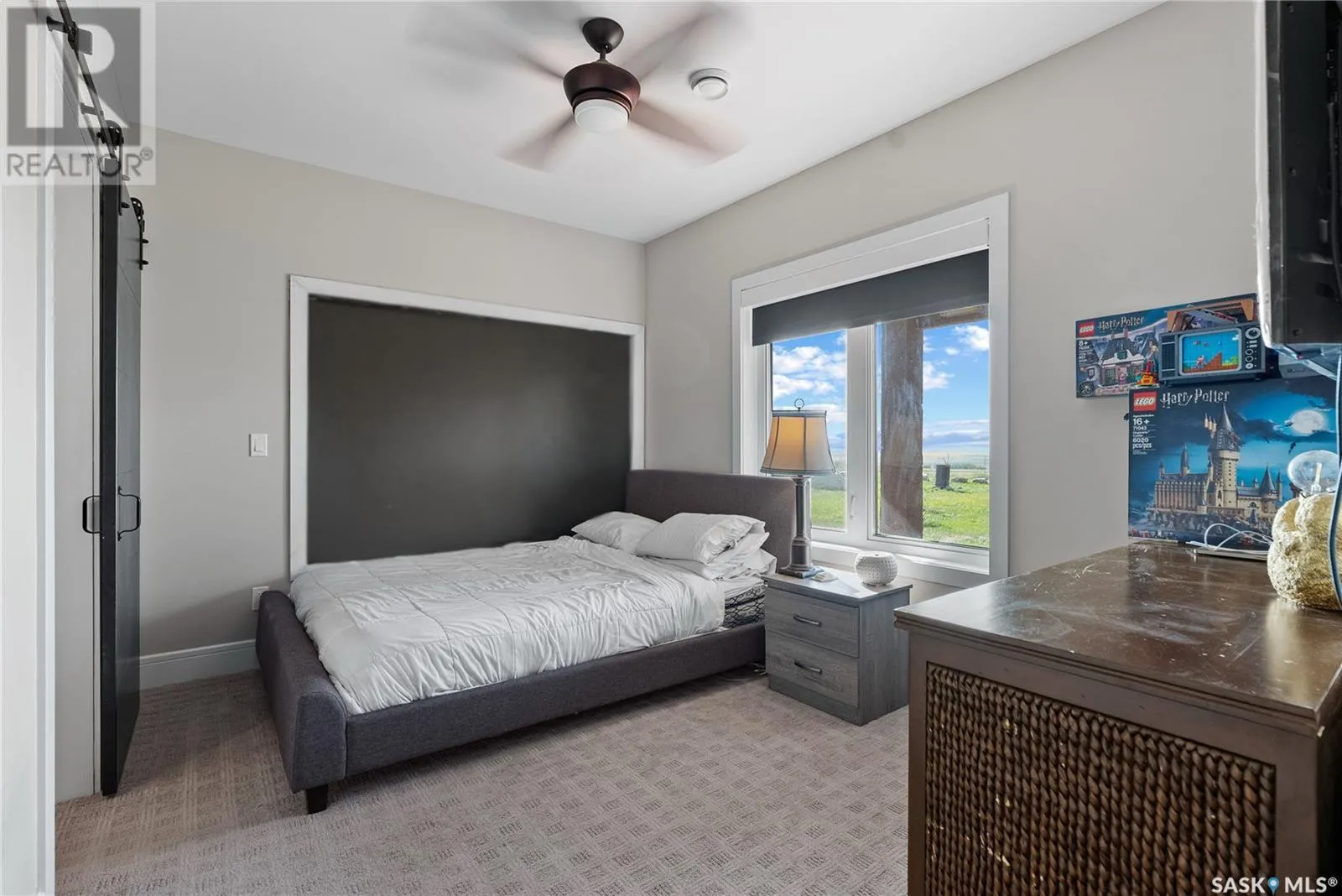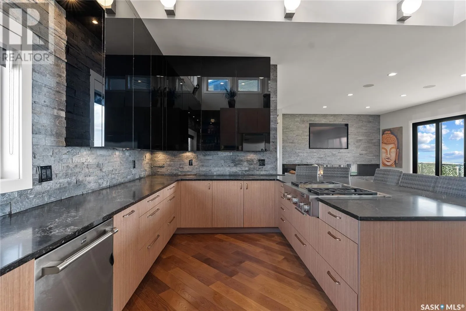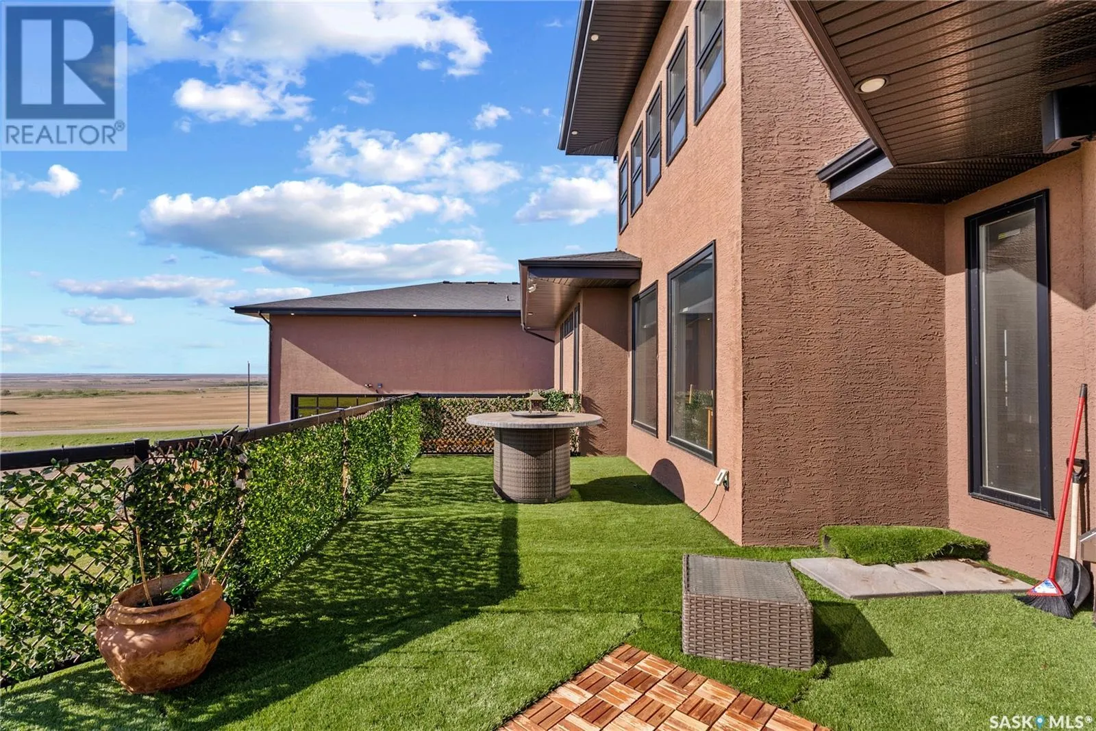 EXTRAORDINARY GATED ESTATE â WALKOUT BUNGALOW WITH ATTACHED INDOOR RESORT-STYLE POOL COMPLEX Prepare to be amazed by this 2,583 sq ft walkout bungalow on 5 GATED acres minutes east on Bergheim Road (Mission Ridge). With pavement to the door, stately iron gates, and an impressive asphalt drive, this property welcomes you with curated luxury. A custom modern interior fountain sets the tone for whatâs to come. The main floor boasts a spectacular layout, including a dream kitchen, grand living and dining areas, den, 3 beds, 3 baths, laundry room, and an incredible primary suite. The kitchen features: ⢠Commercial glass-front cooler ⢠Viking and JennAir prof appliances ⢠Gas cooktop, double wall ovens ⢠Tall ceilings w/clerestory windows ⢠Stone backsplash, full-height cabinetry ⢠Large peninsula eating bar The great room stuns with a stone wall and a linear gas fireplace, 2 lounge areas, deck access. The expansive primary suite offers a spa-like experience with an extensively tiled ensuite, inset tub, oversized walk-in shower, dual vanities, and huge walk-in. Downstairs, enjoy 2,500 sq ft of finished space: ⢠3 more bedrooms, 2 full bathrooms ⢠Family+games room ⢠Professional ultimate theatre and gym AND THEN THEREâS THE RESORT⦠An attached 2,000 sq ft indoor pool complex with soaring ceilings, a saltwater pool w/ lights and waterslide, massive hot tub, full bar with 4 TVs, yoga loft, bathroom, hi tech specialized mechanical, glass overhead door to a deck, stamped concrete throughout. Simply paradise â no vacation needed! Outside: 5 scenic acres landscaped/rockscaping, decks and patios with panoramic prairie vistas Additional features:Triple attached garage, Smart home system w/speakers, 12-camera security, 400 amp service, interior by Atmosphere Design, auto blinds, tall ceilings w/clerestory windows, Forced air + boiler, in-floor heat garage and lower level. This home is unmatched in design and lifestyle. Floor plans in supplements. (id:27476)