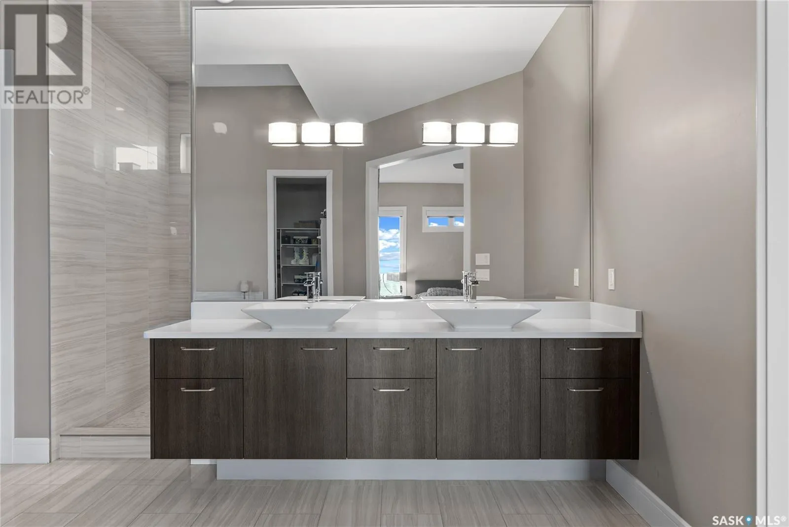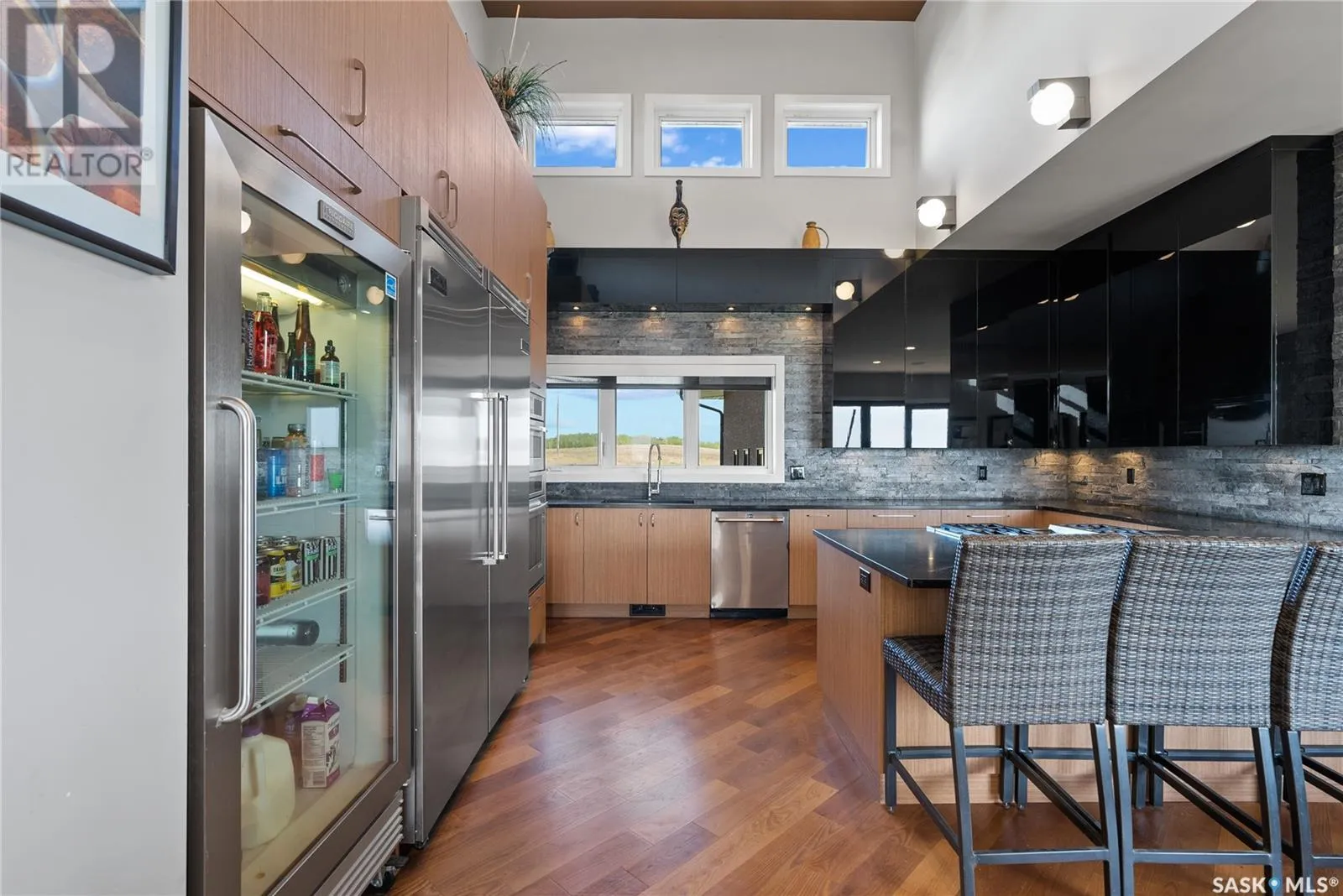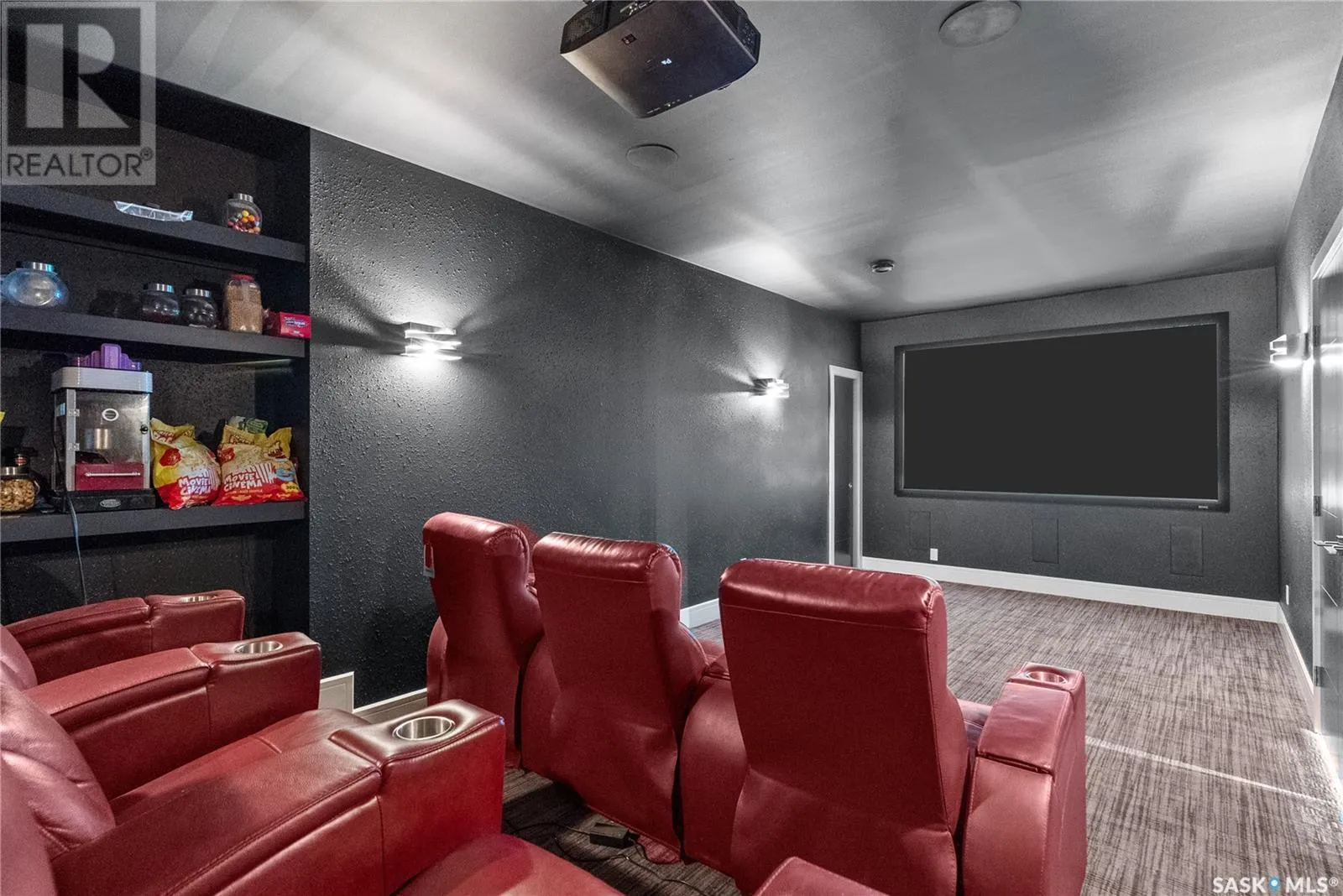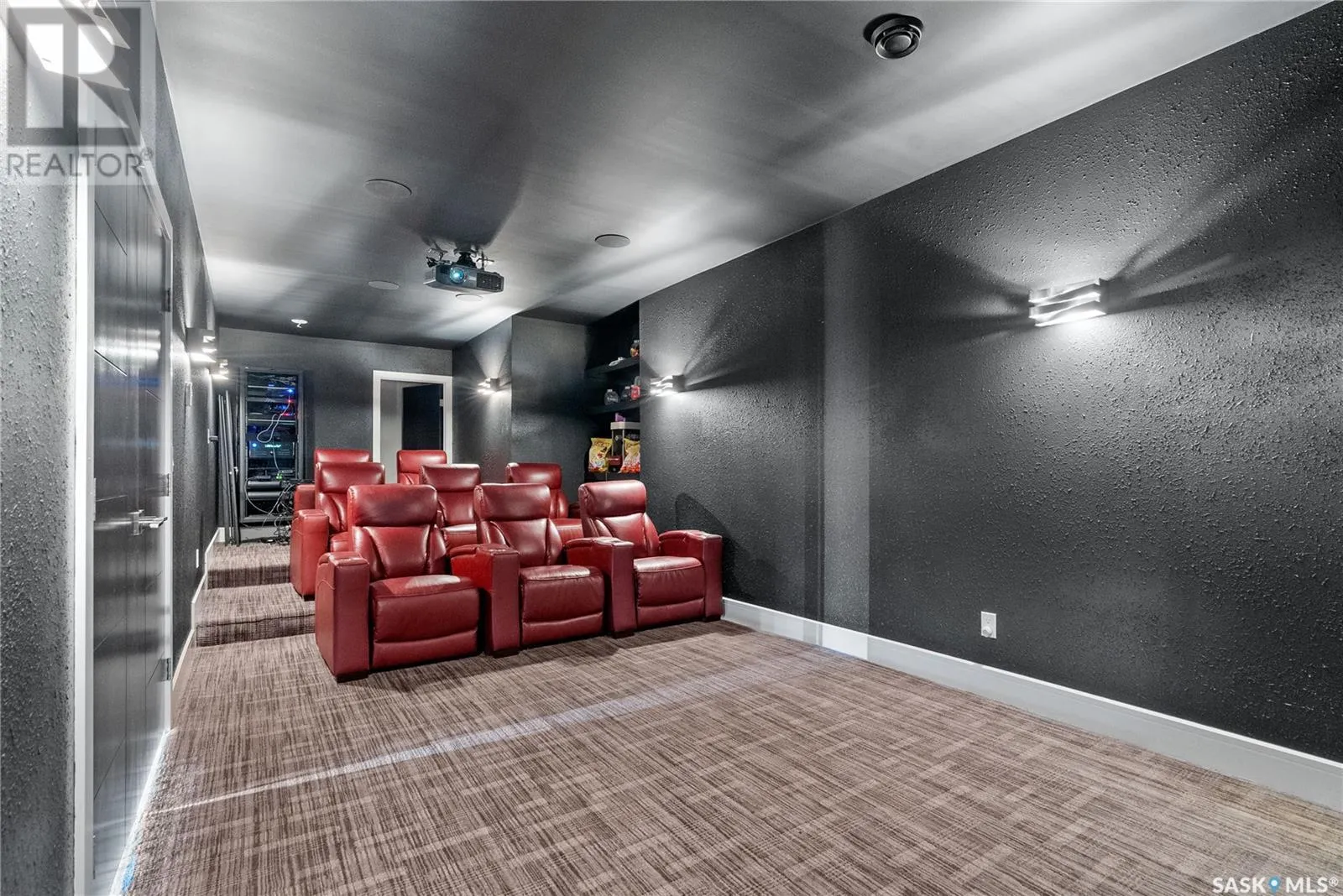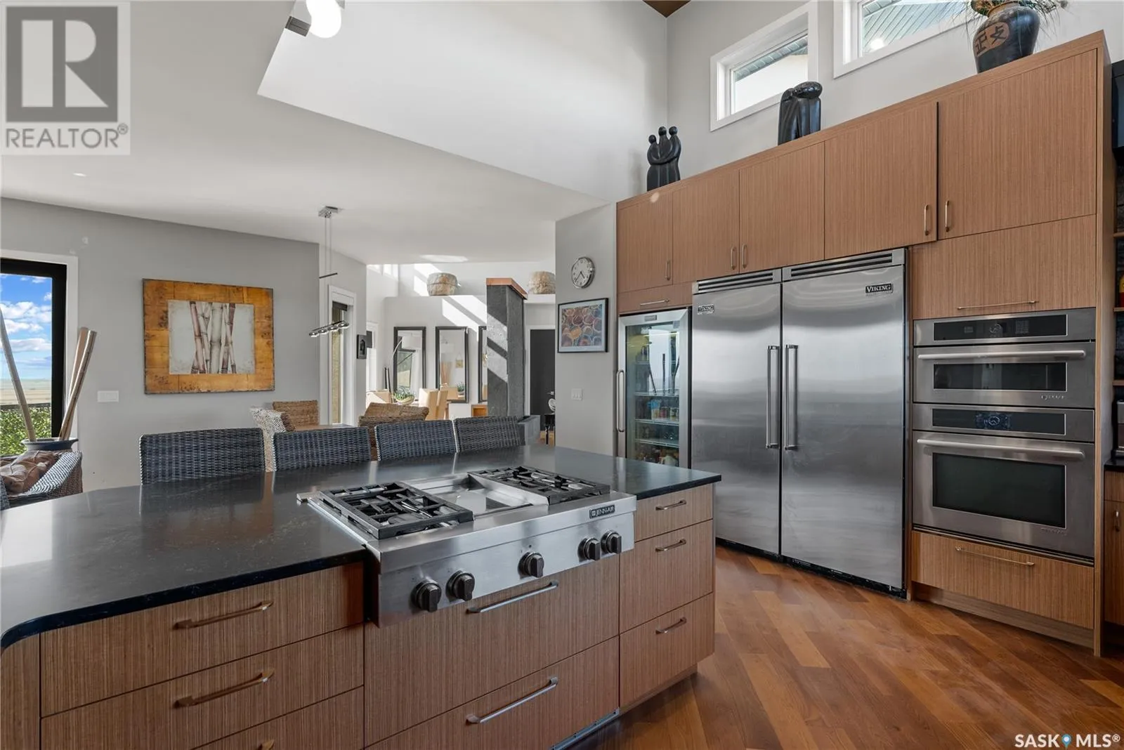 EXTRAORDINARY GATED ESTATE â WALKOUT BUNGALOW WITH ATTACHED INDOOR RESORT-STYLE POOL COMPLEX Prepare to be amazed by this 2,583 sq ft walkout bungalow on 5 GATED acres minutes east on Bergheim Road (Mission Ridge). With pavement to the door, stately iron gates, and an impressive asphalt drive, this property welcomes you with curated luxury. A custom modern interior fountain sets the tone for whatâs to come. The main floor boasts a spectacular layout, including a dream kitchen, grand living and dining areas, den, 3 beds, 3 baths, laundry room, and an incredible primary suite. The kitchen features: ⢠Commercial glass-front cooler ⢠Viking and JennAir prof appliances ⢠Gas cooktop, double wall ovens ⢠Tall ceilings w/clerestory windows ⢠Stone backsplash, full-height cabinetry ⢠Large peninsula eating bar The great room stuns with a stone wall and a linear gas fireplace, 2 lounge areas, deck access. The expansive primary suite offers a spa-like experience with an extensively tiled ensuite, inset tub, oversized walk-in shower, dual vanities, and huge walk-in. Downstairs, enjoy 2,500 sq ft of finished space: ⢠3 more bedrooms, 2 full bathrooms ⢠Family+games room ⢠Professional ultimate theatre and gym AND THEN THEREâS THE RESORT⦠An attached 2,000 sq ft indoor pool complex with soaring ceilings, a saltwater pool w/ lights and waterslide, massive hot tub, full bar with 4 TVs, yoga loft, bathroom, hi tech specialized mechanical, glass overhead door to a deck, stamped concrete throughout. Simply paradise â no vacation needed! Outside: 5 scenic acres landscaped/rockscaping, decks and patios with panoramic prairie vistas Additional features:Triple attached garage, Smart home system w/speakers, 12-camera security, 400 amp service, interior by Atmosphere Design, auto blinds, tall ceilings w/clerestory windows, Forced air + boiler, in-floor heat garage and lower level. This home is unmatched in design and lifestyle. Floor plans in supplements. (id:27476)