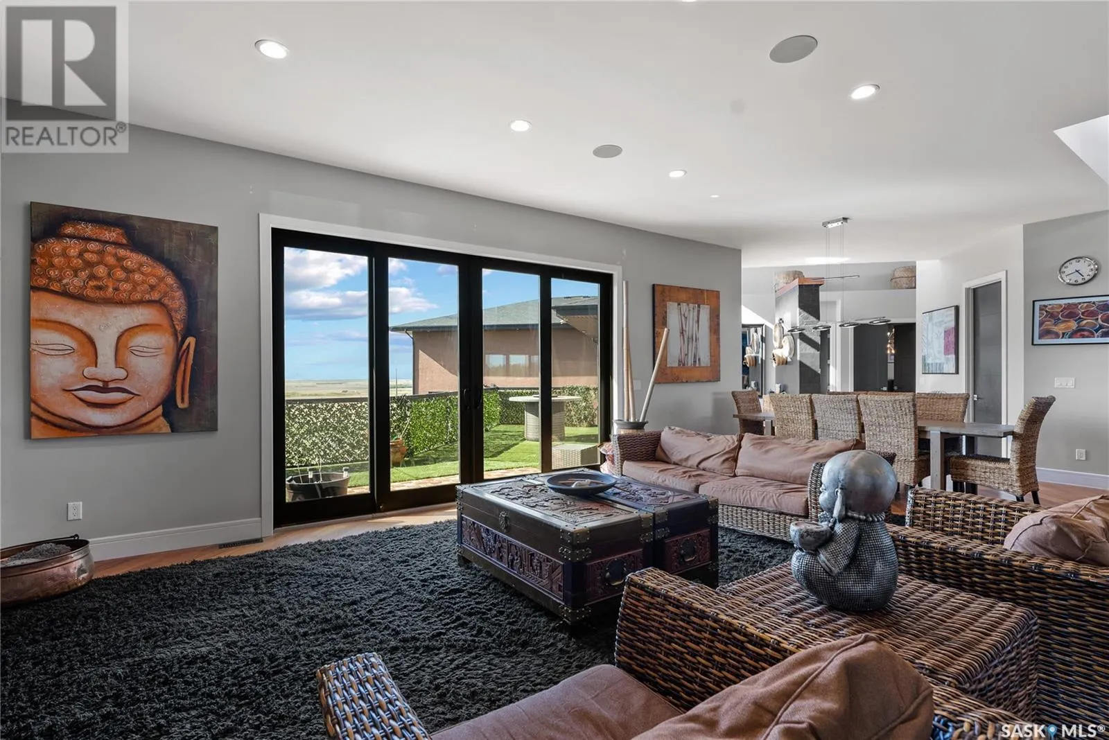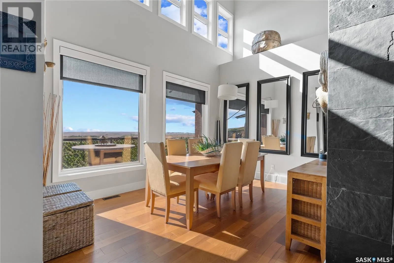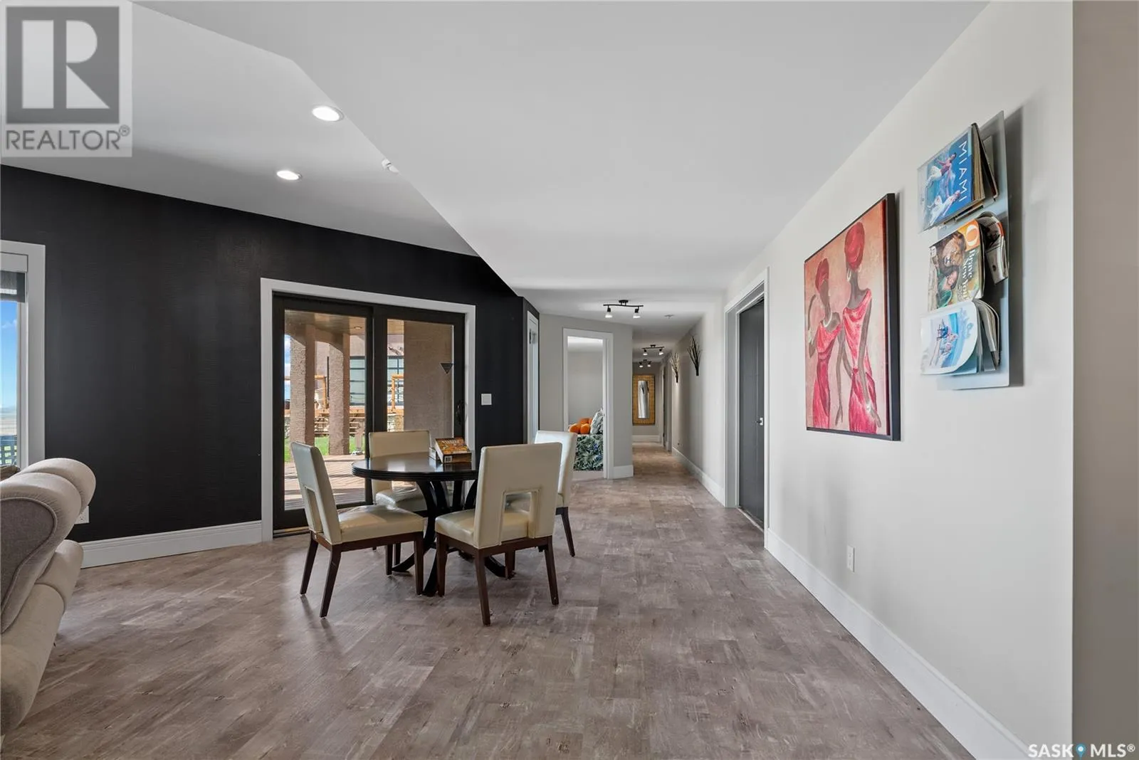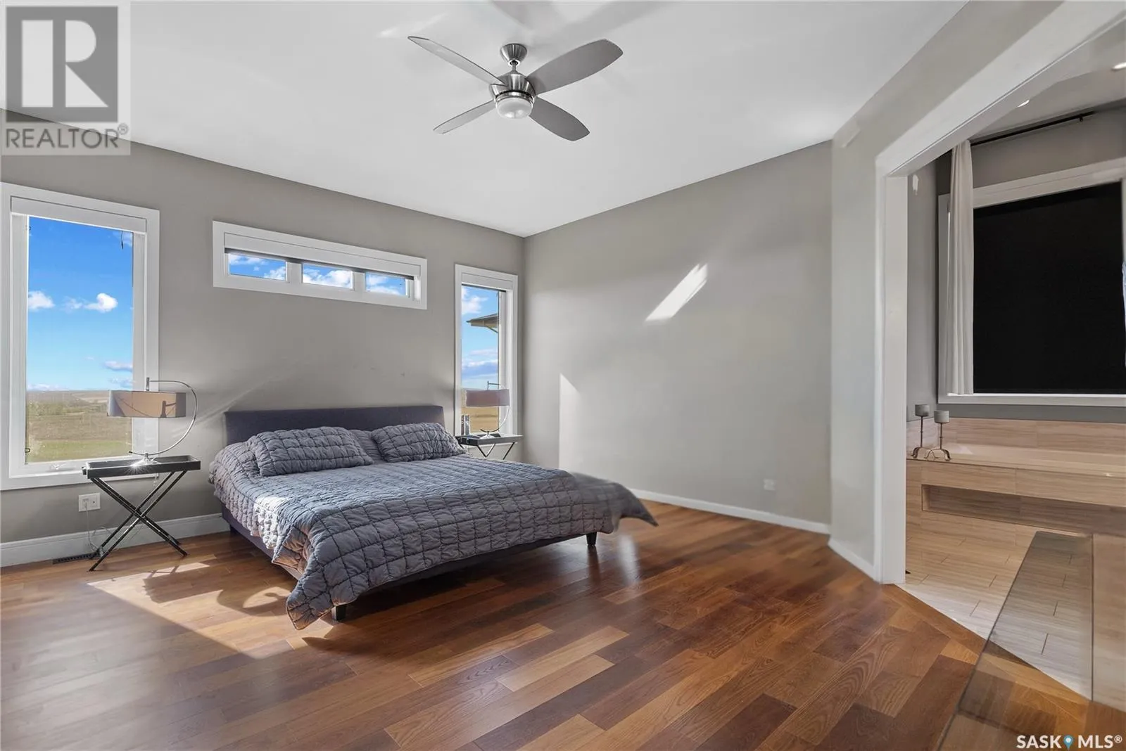 EXTRAORDINARY GATED ESTATE â WALKOUT BUNGALOW WITH ATTACHED INDOOR RESORT-STYLE POOL COMPLEX Prepare to be amazed by this 2,583 sq ft walkout bungalow on 5 GATED acres minutes east on Bergheim Road (Mission Ridge). With pavement to the door, stately iron gates, and an impressive asphalt drive, this property welcomes you with curated luxury. A custom modern interior fountain sets the tone for whatâs to come. The main floor boasts a spectacular layout, including a dream kitchen, grand living and dining areas, den, 3 beds, 3 baths, laundry room, and an incredible primary suite. The kitchen features: ⢠Commercial glass-front cooler ⢠Viking and JennAir prof appliances ⢠Gas cooktop, double wall ovens ⢠Tall ceilings w/clerestory windows ⢠Stone backsplash, full-height cabinetry ⢠Large peninsula eating bar The great room stuns with a stone wall and a linear gas fireplace, 2 lounge areas, deck access. The expansive primary suite offers a spa-like experience with an extensively tiled ensuite, inset tub, oversized walk-in shower, dual vanities, and huge walk-in. Downstairs, enjoy 2,500 sq ft of finished space: ⢠3 more bedrooms, 2 full bathrooms ⢠Family+games room ⢠Professional ultimate theatre and gym AND THEN THEREâS THE RESORT⦠An attached 2,000 sq ft indoor pool complex with soaring ceilings, a saltwater pool w/ lights and waterslide, massive hot tub, full bar with 4 TVs, yoga loft, bathroom, hi tech specialized mechanical, glass overhead door to a deck, stamped concrete throughout. Simply paradise â no vacation needed! Outside: 5 scenic acres landscaped/rockscaping, decks and patios with panoramic prairie vistas Additional features:Triple attached garage, Smart home system w/speakers, 12-camera security, 400 amp service, interior by Atmosphere Design, auto blinds, tall ceilings w/clerestory windows, Forced air + boiler, in-floor heat garage and lower level. This home is unmatched in design and lifestyle. Floor plans in supplements. (id:27476)