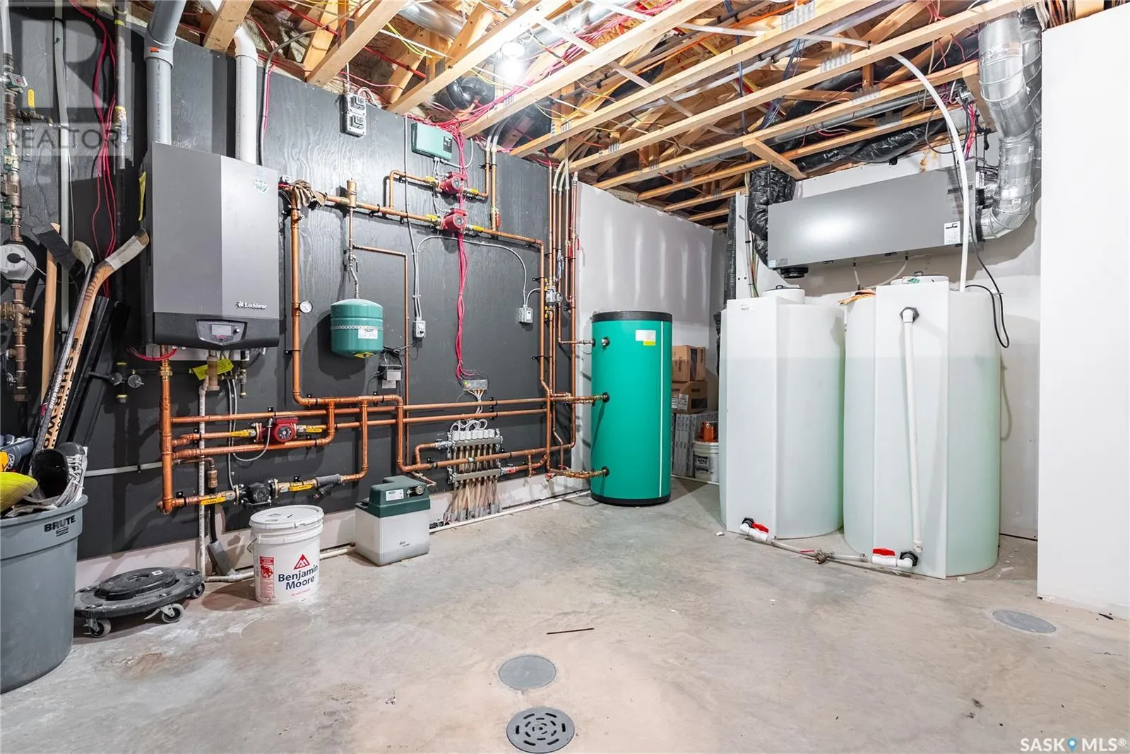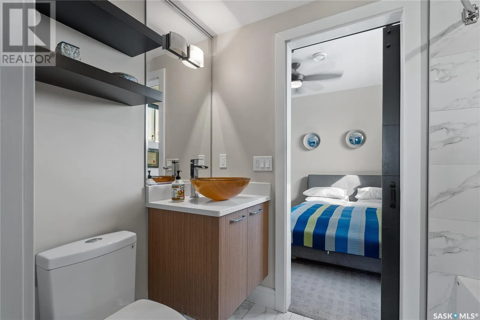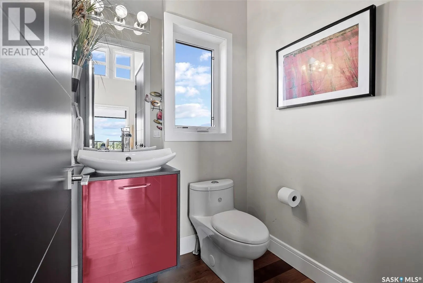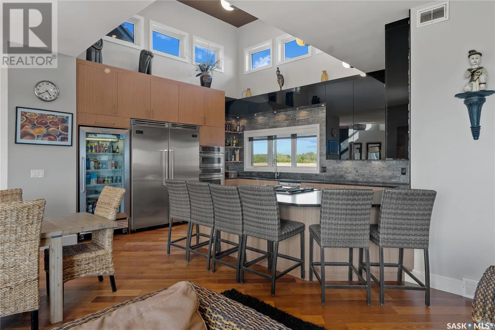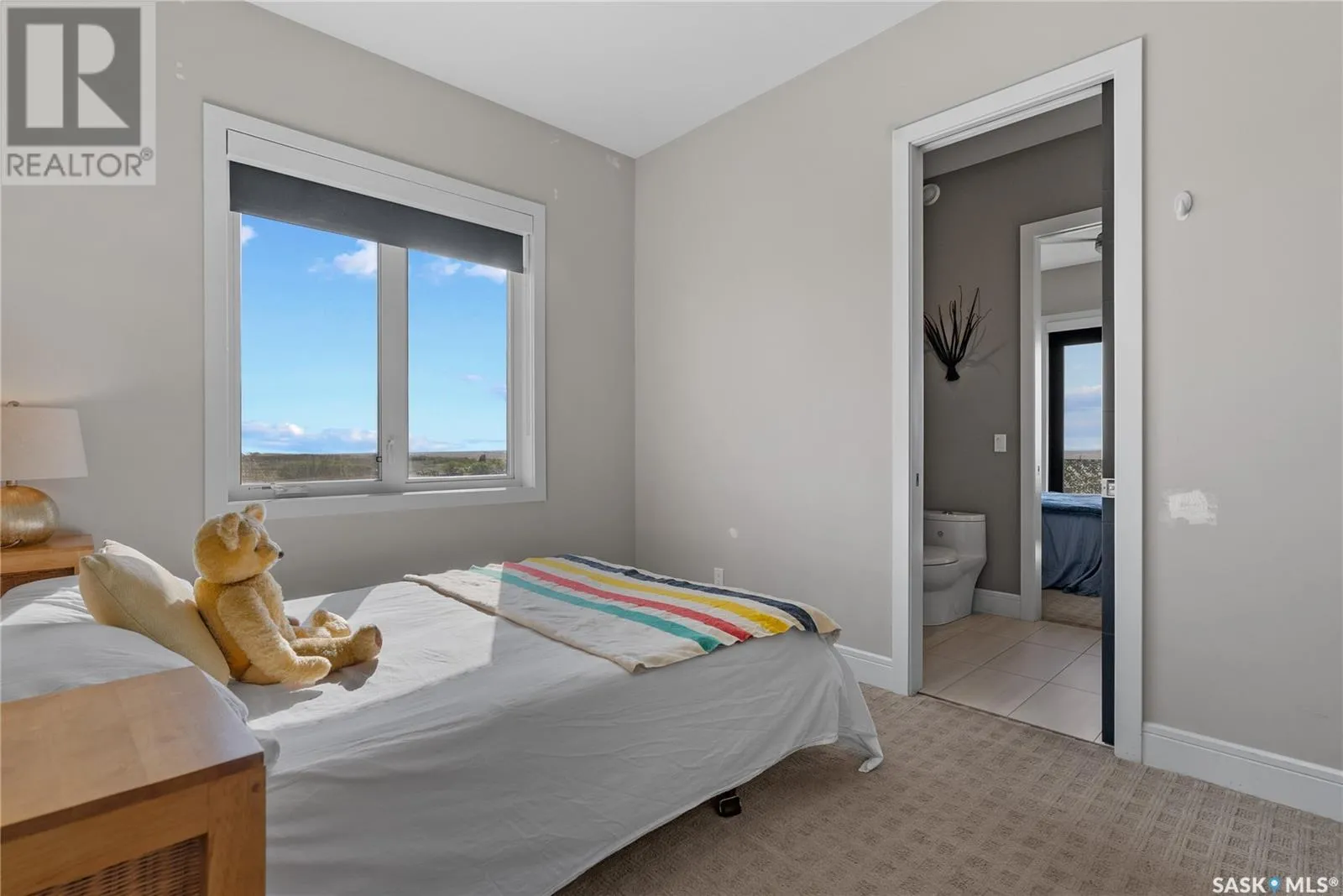 EXTRAORDINARY GATED ESTATE â WALKOUT BUNGALOW WITH ATTACHED INDOOR RESORT-STYLE POOL COMPLEX Prepare to be amazed by this 2,583 sq ft walkout bungalow on 5 GATED acres minutes east on Bergheim Road (Mission Ridge). With pavement to the door, stately iron gates, and an impressive asphalt drive, this property welcomes you with curated luxury. A custom modern interior fountain sets the tone for whatâs to come. The main floor boasts a spectacular layout, including a dream kitchen, grand living and dining areas, den, 3 beds, 3 baths, laundry room, and an incredible primary suite. The kitchen features: ⢠Commercial glass-front cooler ⢠Viking and JennAir prof appliances ⢠Gas cooktop, double wall ovens ⢠Tall ceilings w/clerestory windows ⢠Stone backsplash, full-height cabinetry ⢠Large peninsula eating bar The great room stuns with a stone wall and a linear gas fireplace, 2 lounge areas, deck access. The expansive primary suite offers a spa-like experience with an extensively tiled ensuite, inset tub, oversized walk-in shower, dual vanities, and huge walk-in. Downstairs, enjoy 2,500 sq ft of finished space: ⢠3 more bedrooms, 2 full bathrooms ⢠Family+games room ⢠Professional ultimate theatre and gym AND THEN THEREâS THE RESORT⦠An attached 2,000 sq ft indoor pool complex with soaring ceilings, a saltwater pool w/ lights and waterslide, massive hot tub, full bar with 4 TVs, yoga loft, bathroom, hi tech specialized mechanical, glass overhead door to a deck, stamped concrete throughout. Simply paradise â no vacation needed! Outside: 5 scenic acres landscaped/rockscaping, decks and patios with panoramic prairie vistas Additional features:Triple attached garage, Smart home system w/speakers, 12-camera security, 400 amp service, interior by Atmosphere Design, auto blinds, tall ceilings w/clerestory windows, Forced air + boiler, in-floor heat garage and lower level. This home is unmatched in design and lifestyle. Floor plans in supplements. (id:27476)