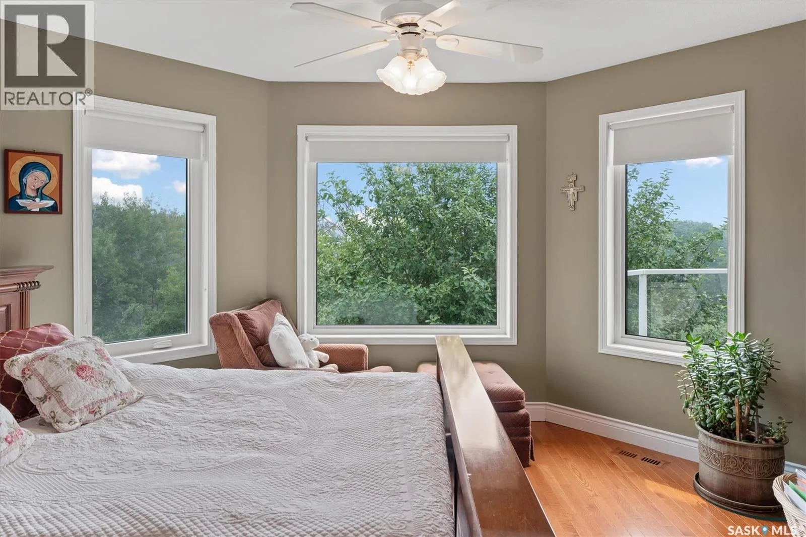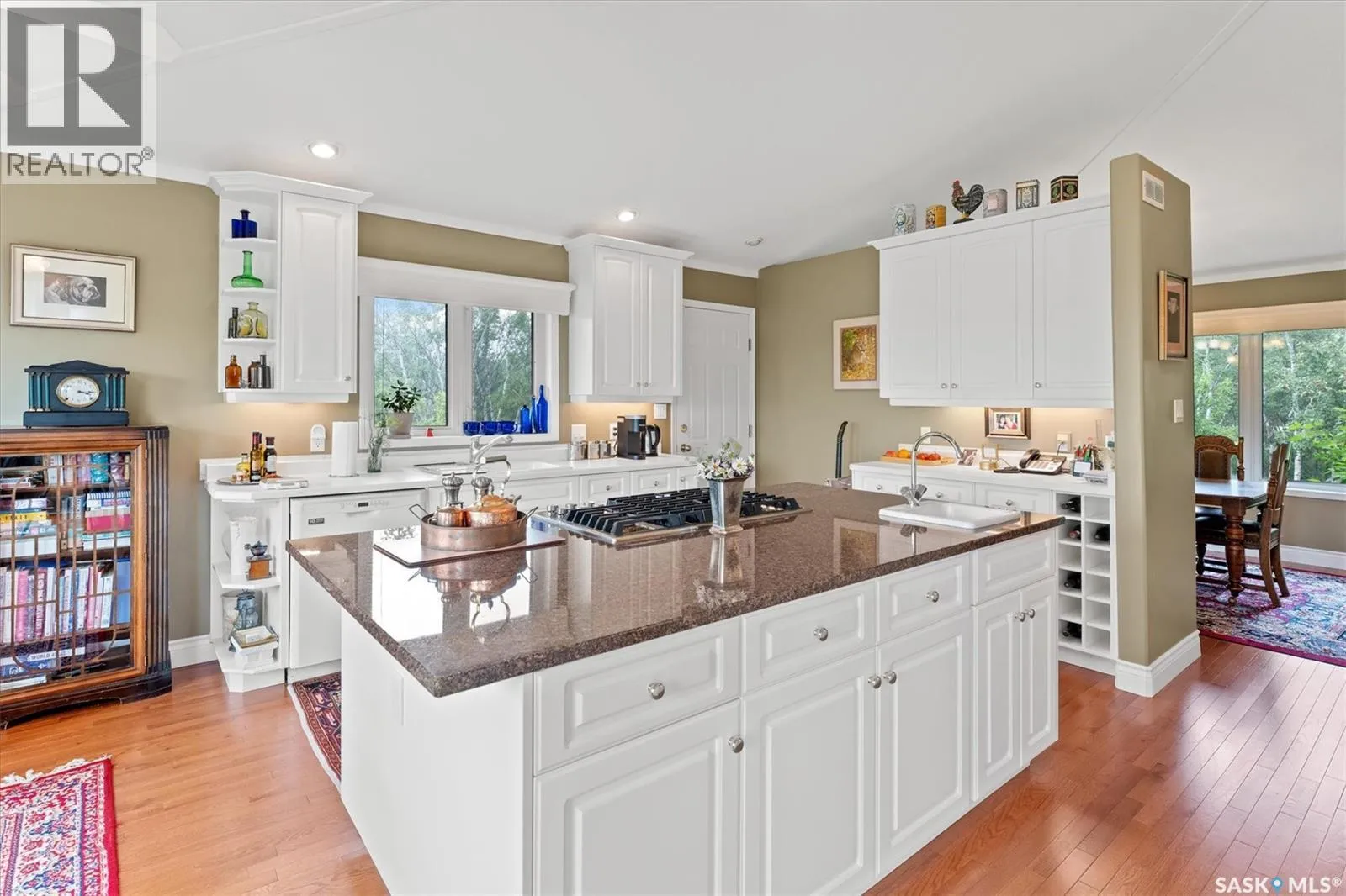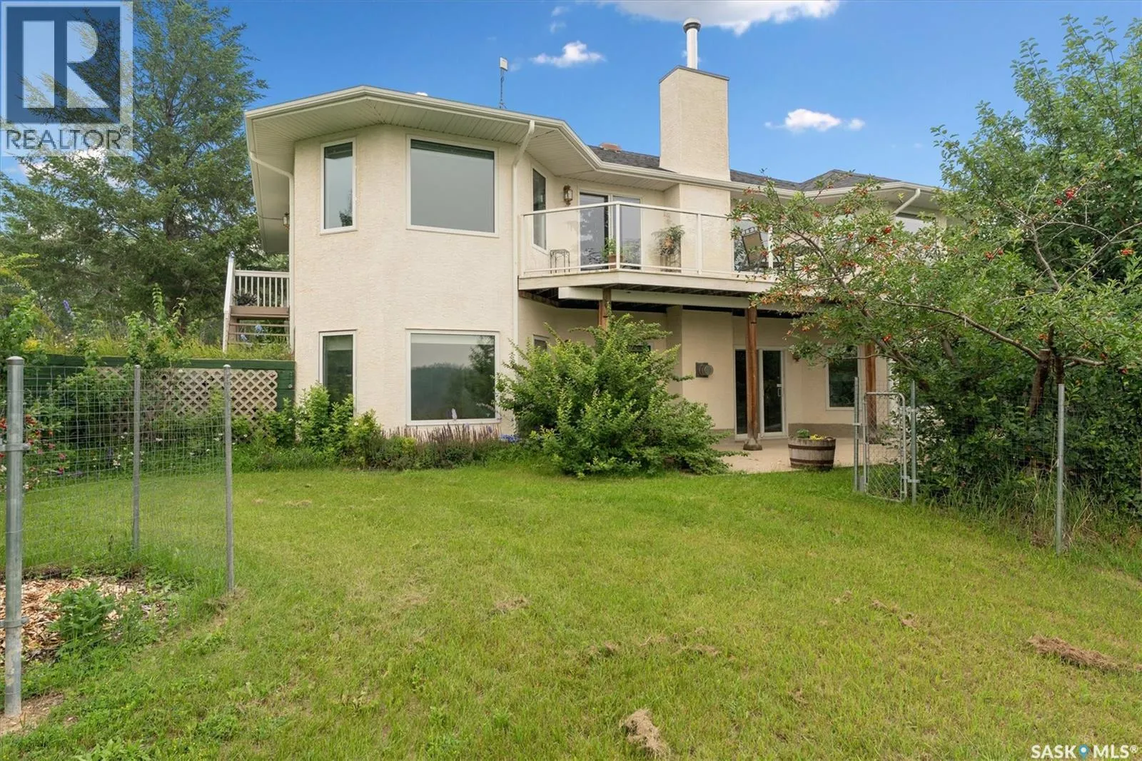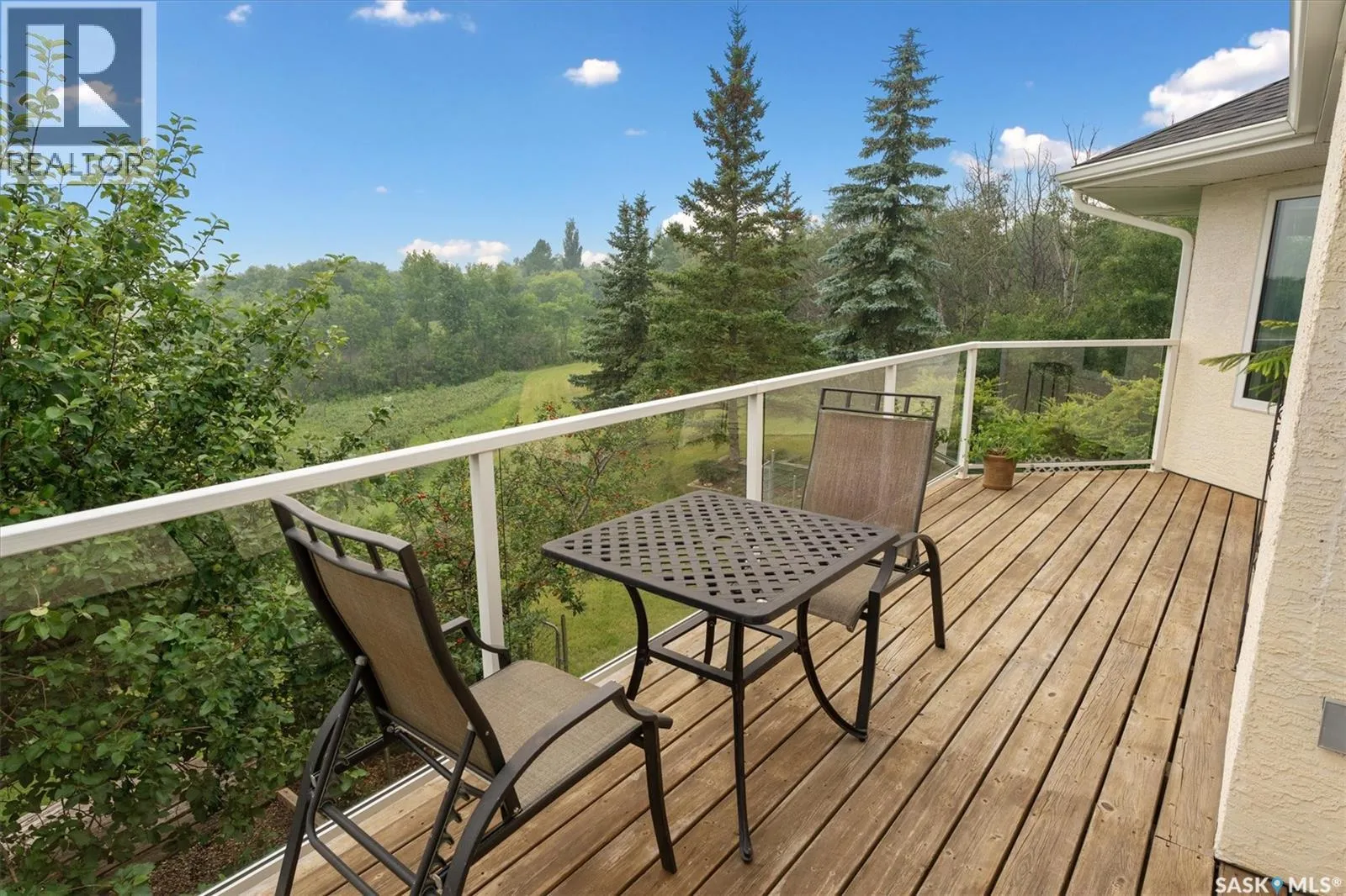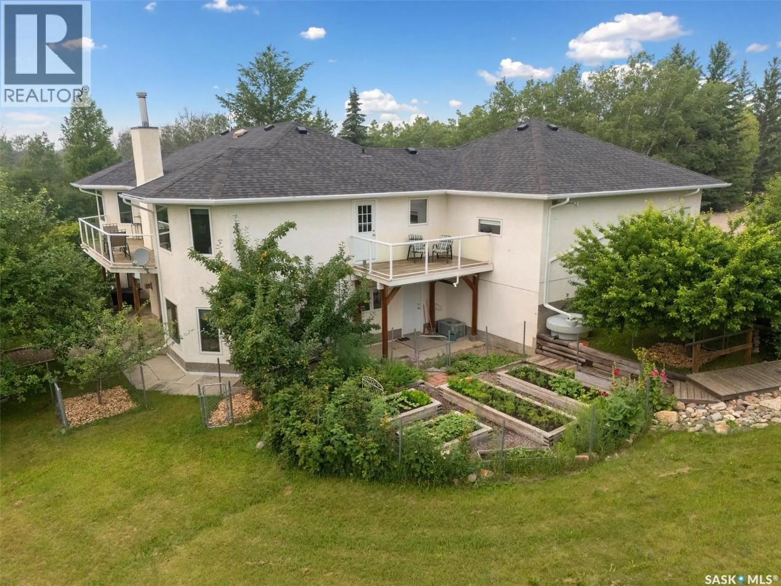 Thoughtfully designed home situated on 10 acres of gently rolling hills. Everything was considered in the design of this sophisticated home, from the southern exposure which takes advantage of the view to the well thought out floor plan. Located only 5 minutes from Saskatoon with pavement almost all the way, this captivating property offers everything you could desire. City water, natural gas, walk out from lower lever and large spacious rooms. Every detail in this home has been considered. Oak hardwood flooring on main level, chef's kitchen with center island and built in appliances. Formal dining room, large master bedroom with en-suite and walk in closet. The lower level is completely developed with family room, 2 large bedrooms, den, utility room plus ample storage. An addition, this home offers both a wood burning fireplace in the living room and a gas fireplace in the lower level family room. (id:27476)