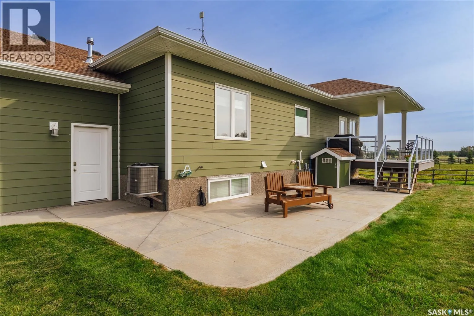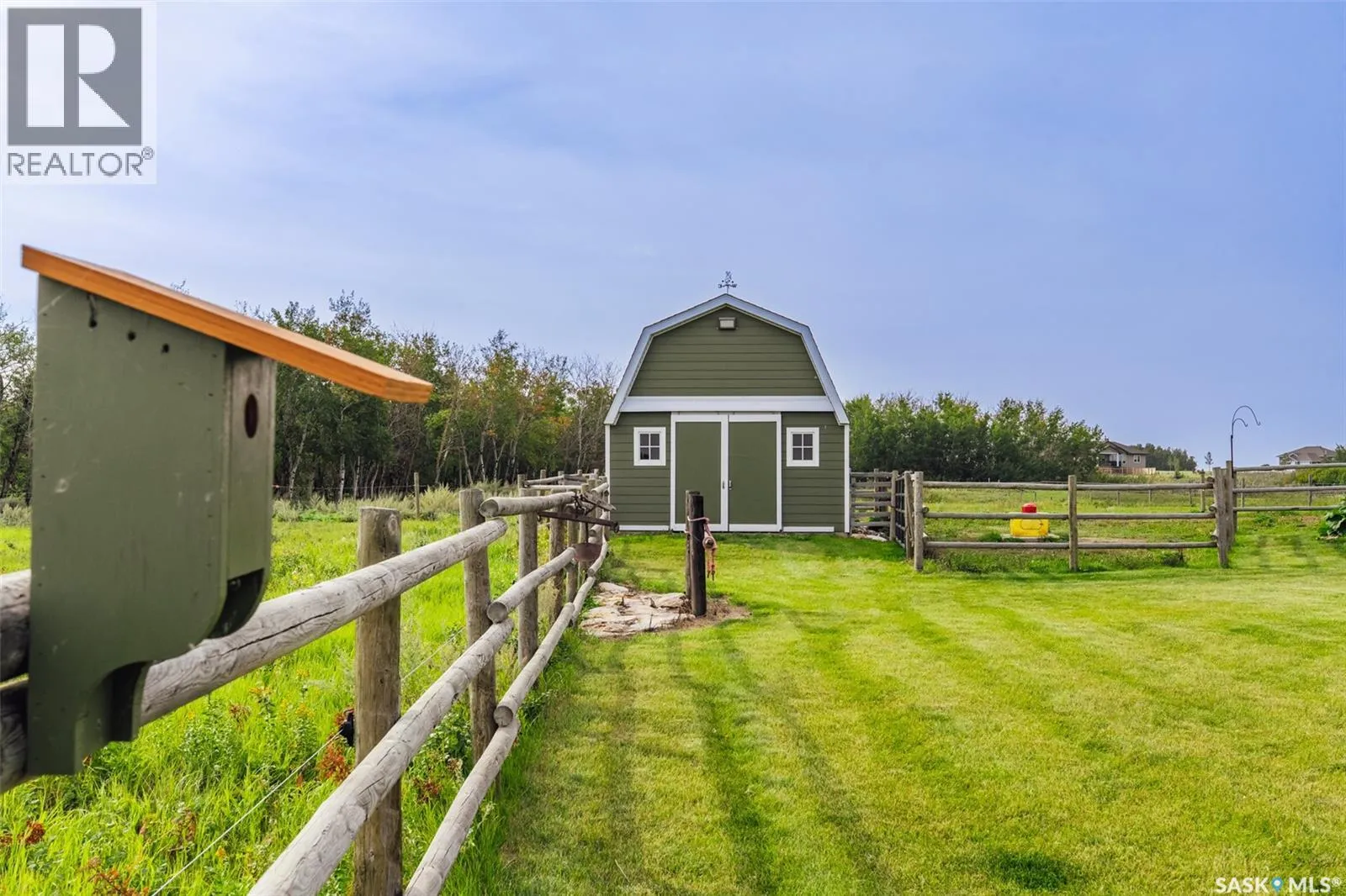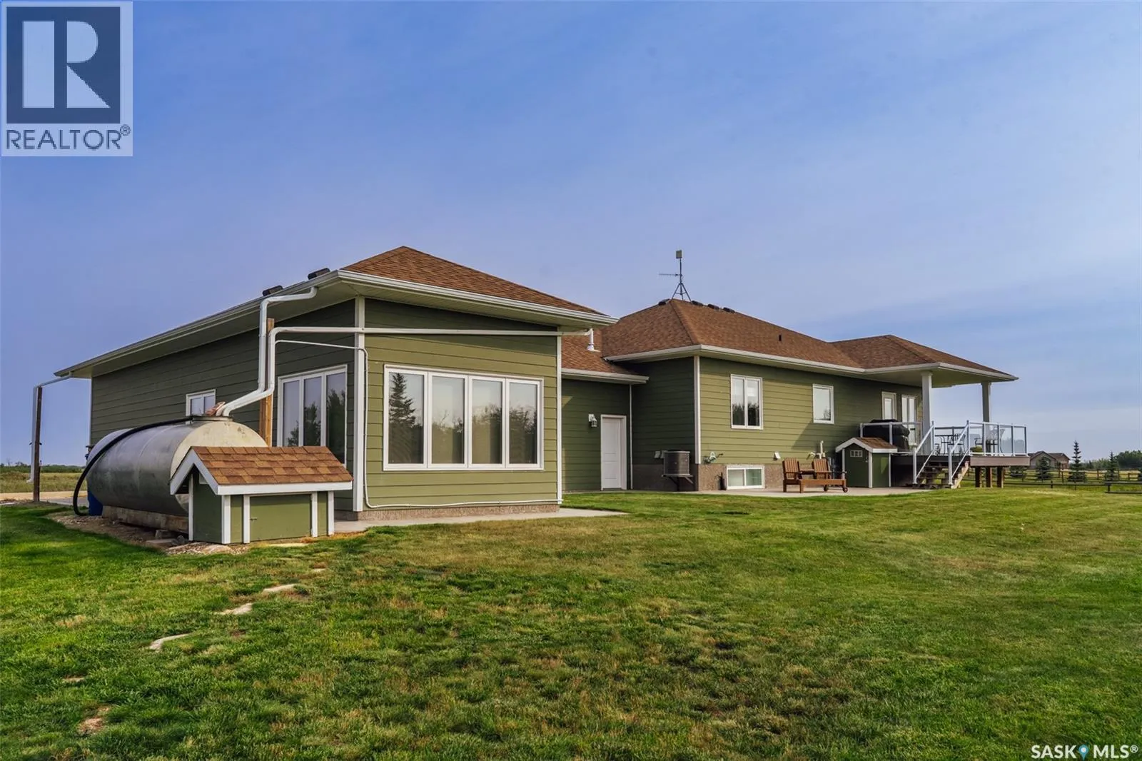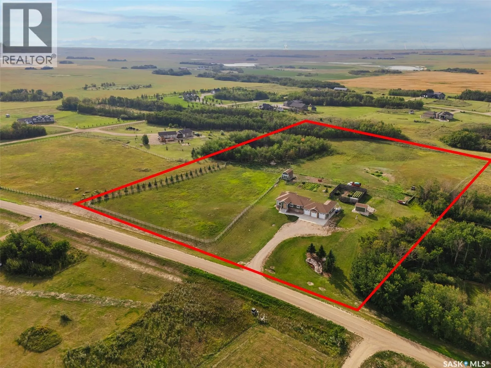 Welcome to 118 Louise Crescent in the coveted acreage community of Cherry Hills â just 15 minutes from Saskatoonâs edge. This 1,502 sq. ft. executive bungalow is a stunning blend of modern design, smart functionality, and country charm. Step inside to discover a bright, open-concept main floor with an exceptional window package that floods the home with natural light. The spacious living room, dining area, and kitchen flow seamlessly under a vaulted ceiling, creating the perfect setting for entertaining or relaxing. The kitchen features quartz countertops, a corner pantry, roll-out drawers, stainless steal appliances. The dining room can easily seat a large extended family for holiday meals and the gas fireplace in the adjoining living room makes for cozy evenings. Hardwood runs throughout the main level, and a covered deck off the dining area allows for year-round BBQ. The primary suite is a lovely retreat, offering a large walk-in closet and an ensuite with a soaker tub beneath a privacy rain-glass window, heated floors, and a walk-in shower. A 2nd large bedroom (or office), another 4-piece bath, and a spacious mudroom/laundry room with built-in cabinetry, quartz countertops, and deep utility sink complete the main floor â all leading to an oversized triple-car garage with a separate workshop bay and a sunlit all-season greenhouse.The fully finished basement features a large family and games area, 2 more bedrooms, 4-piece bath, and a vented cold storage room perfect for preserves or wine. Outside, the 7.14 acre property is 3/4 fenced with treated rail fencing, hotwired, & divided into five paddocks with a 4-season watering bowl sourced by underground lines. Mature spruce trees border the property, and thereâs a drive-in garden shed, an adorable matching horse barn, and 2 fully developed gardens with direct waterlines. Complete with central air, central vac, and window coverings, this Cherry Hills acreage offers comfort with country serenity â a truly rare find. (id:27476)