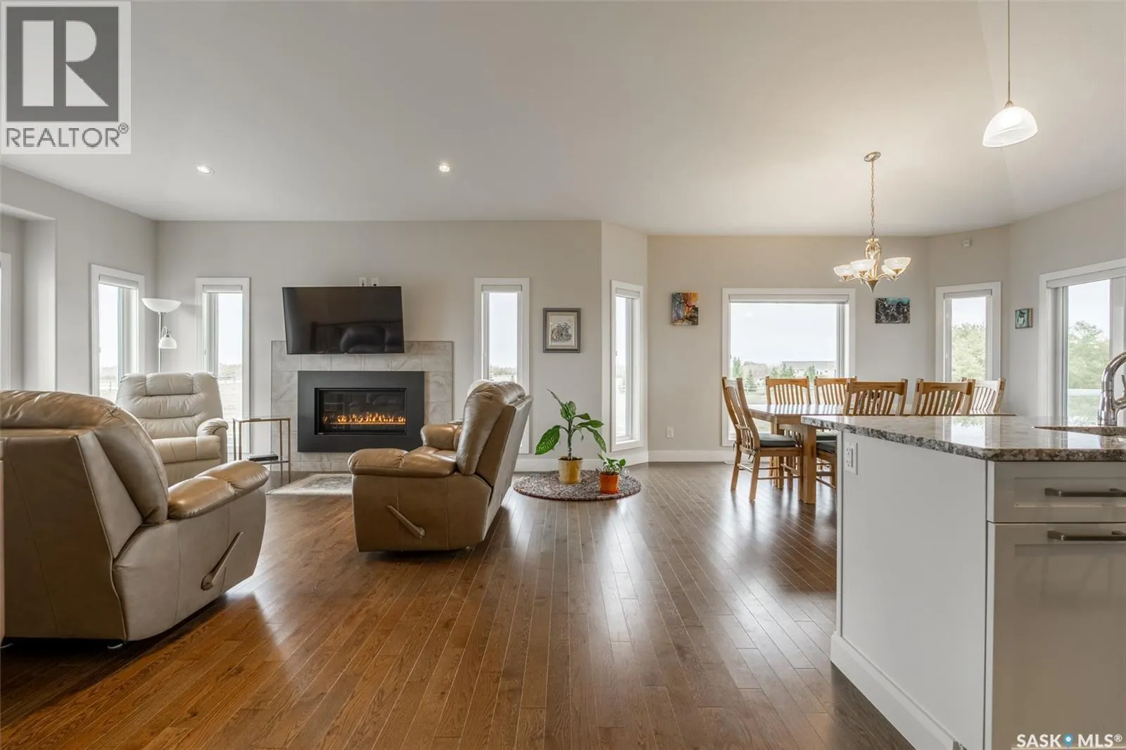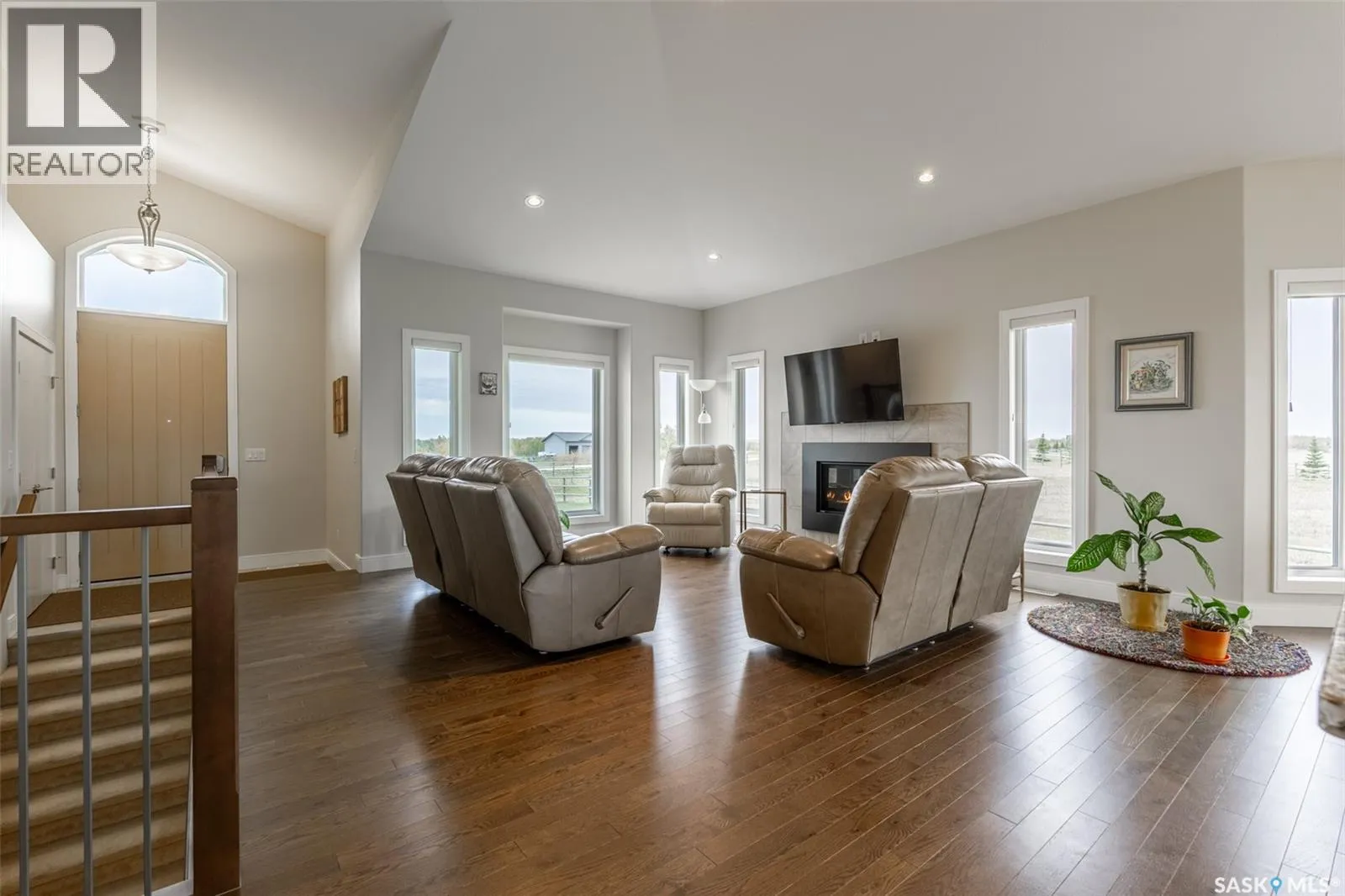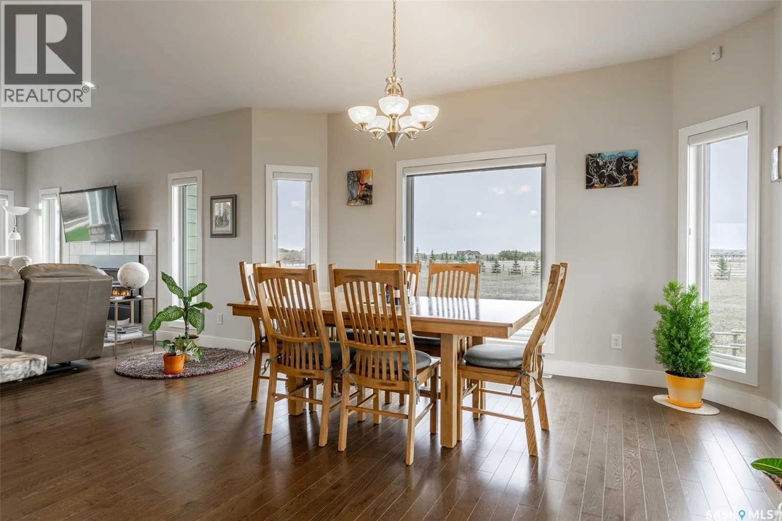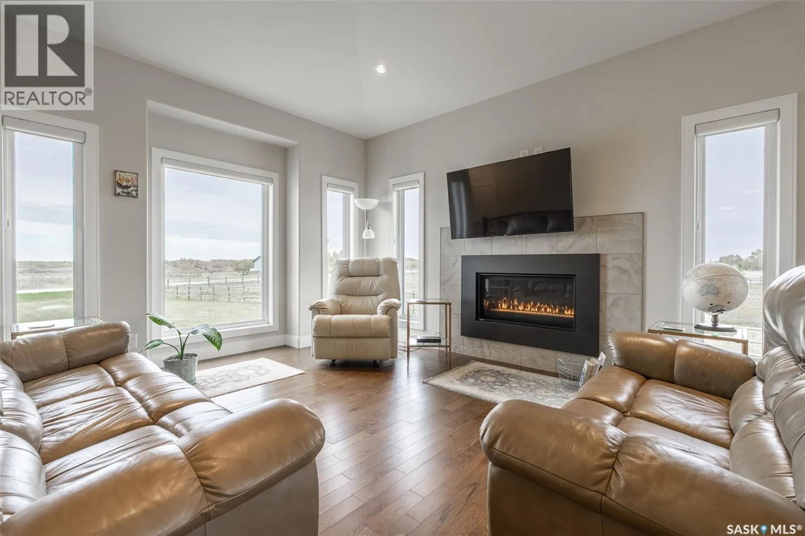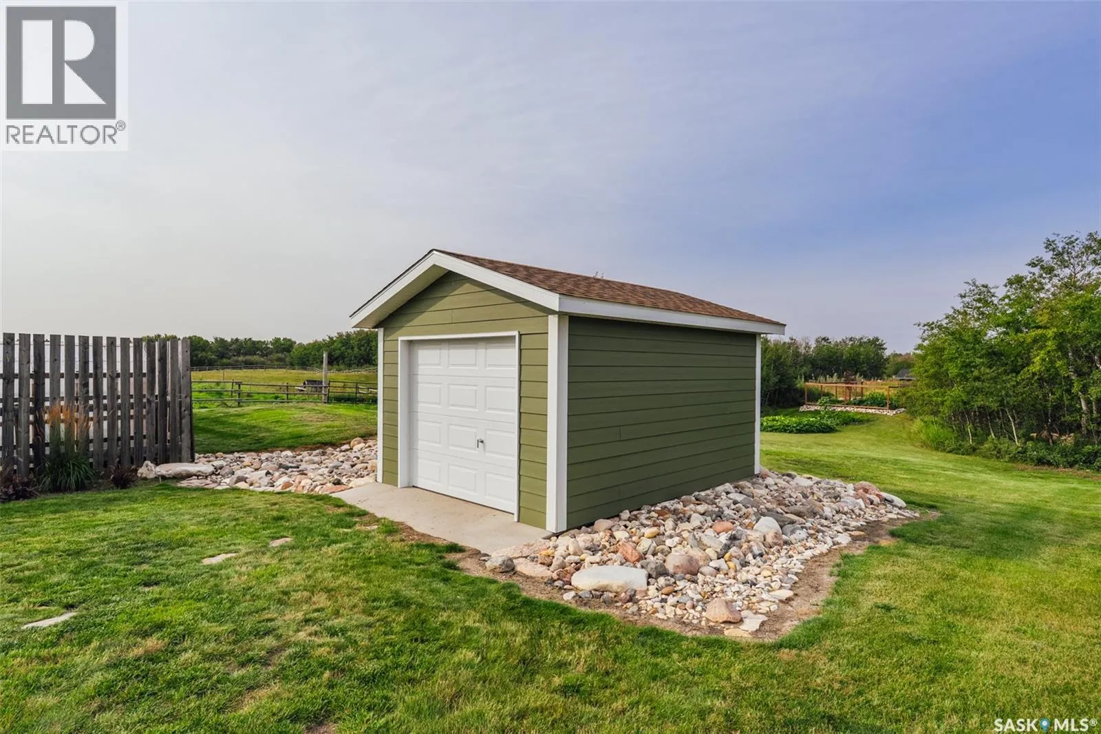 Welcome to 118 Louise Crescent in the coveted acreage community of Cherry Hills â just 15 minutes from Saskatoonâs edge. This 1,502 sq. ft. executive bungalow is a stunning blend of modern design, smart functionality, and country charm. Step inside to discover a bright, open-concept main floor with an exceptional window package that floods the home with natural light. The spacious living room, dining area, and kitchen flow seamlessly under a vaulted ceiling, creating the perfect setting for entertaining or relaxing. The kitchen features quartz countertops, a corner pantry, roll-out drawers, stainless steal appliances. The dining room can easily seat a large extended family for holiday meals and the gas fireplace in the adjoining living room makes for cozy evenings. Hardwood runs throughout the main level, and a covered deck off the dining area allows for year-round BBQ. The primary suite is a lovely retreat, offering a large walk-in closet and an ensuite with a soaker tub beneath a privacy rain-glass window, heated floors, and a walk-in shower. A 2nd large bedroom (or office), another 4-piece bath, and a spacious mudroom/laundry room with built-in cabinetry, quartz countertops, and deep utility sink complete the main floor â all leading to an oversized triple-car garage with a separate workshop bay and a sunlit all-season greenhouse.The fully finished basement features a large family and games area, 2 more bedrooms, 4-piece bath, and a vented cold storage room perfect for preserves or wine. Outside, the 7.14 acre property is 3/4 fenced with treated rail fencing, hotwired, & divided into five paddocks with a 4-season watering bowl sourced by underground lines. Mature spruce trees border the property, and thereâs a drive-in garden shed, an adorable matching horse barn, and 2 fully developed gardens with direct waterlines. Complete with central air, central vac, and window coverings, this Cherry Hills acreage offers comfort with country serenity â a truly rare find. (id:27476)
