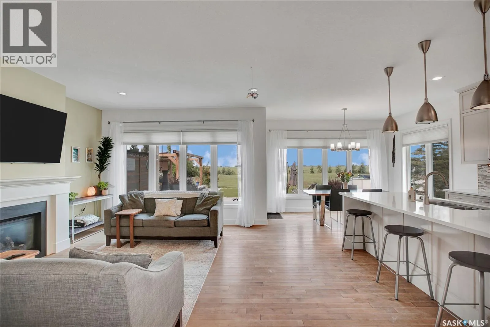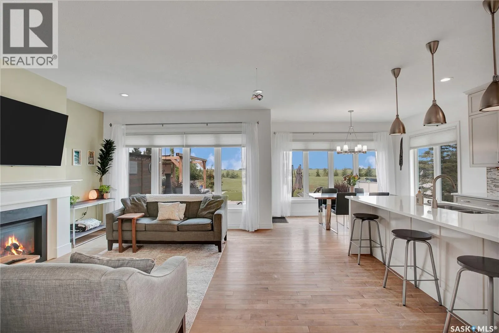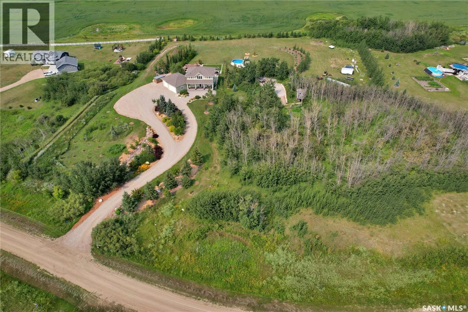 Welcome the perfect Saskatchewan paradise â an extraordinary 2-storey Westridge built home set on just over 5 beautifully landscaped acres, only 12 minutes from Saskatoon. This property offers the perfect blend of luxury, space, and outdoor lifestyle, with every detail thoughtfully designed for comfort and style. You'll be welcomed by the gorgeous East facing porch perfect for a morning coffee. Step through the grand front entrance into a bright, open interior filled with natural light. The open floor concept allows for the perfect family or entertaining setting. The kitchen's oversized island and gorgeous quartz countertop with a corner pantry make it the perfect space to cook and connect. The main floor features an office, large mudroom with laundry and a stunning primary bedroom retreat, complete with a spa-like ensuite and a spacious walk-in closet. Upstairs, you'll find three more bedrooms plus a large bonus room, offering plenty of space for family, guests and everything in between. Outside, the exquisite yard is an entertainer's paradise. Enjoy summer evenings with your very own outdoor kitchen, wood-fired pizza oven, and above-ground pool, all set against the backdrop of breathtaking Saskatchewan sunsets. A heated triple attached garage provides ample space for vehicles, toys, and tools, making this property as functional as it is beautiful. (id:27476)