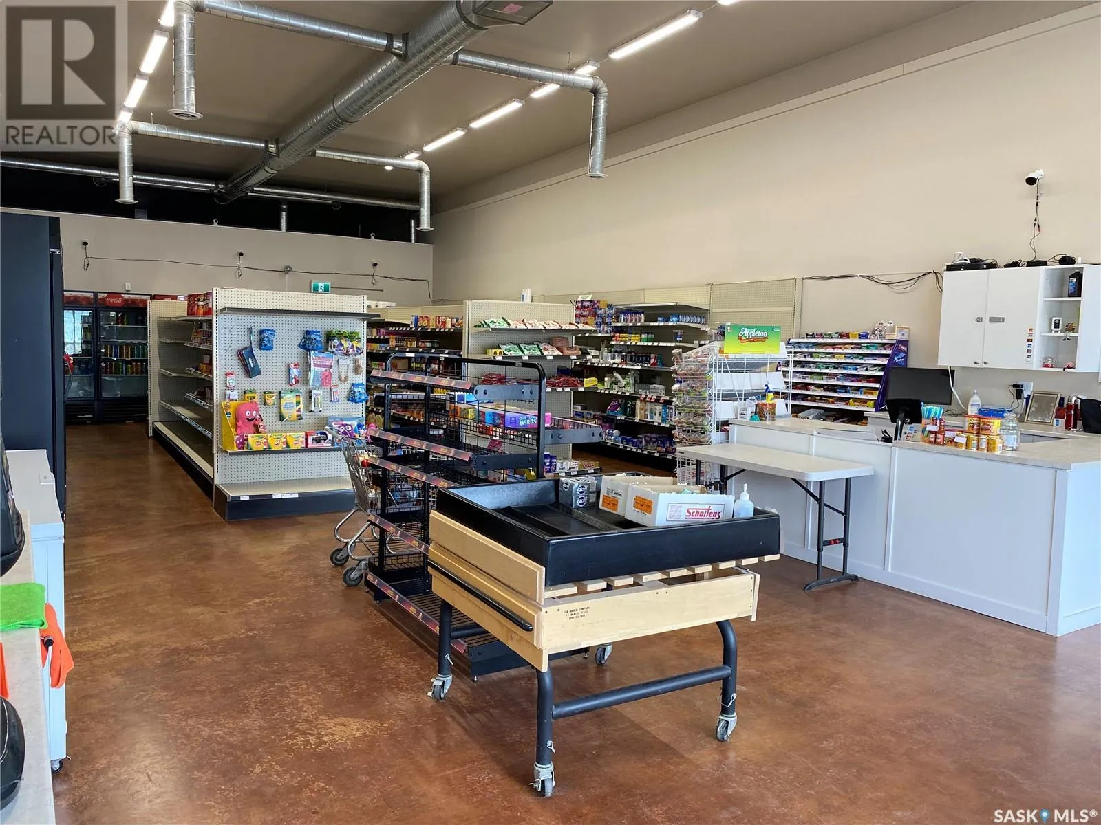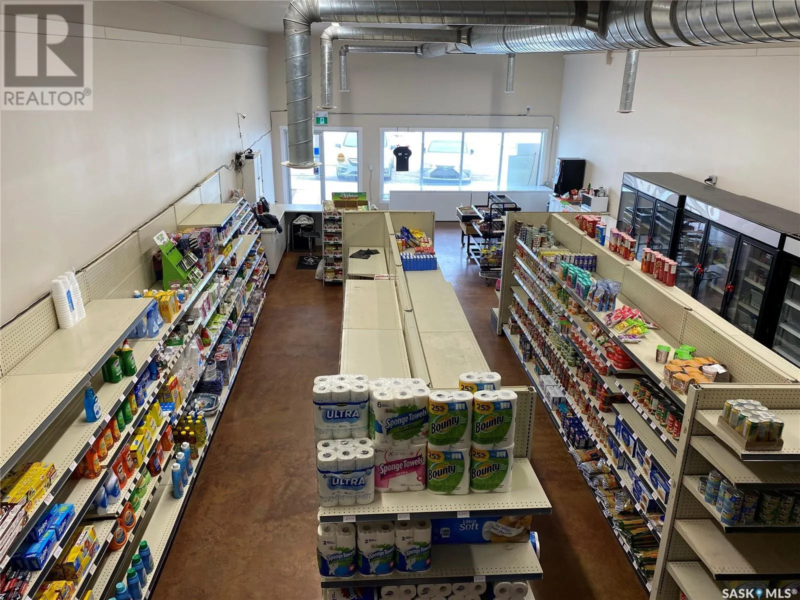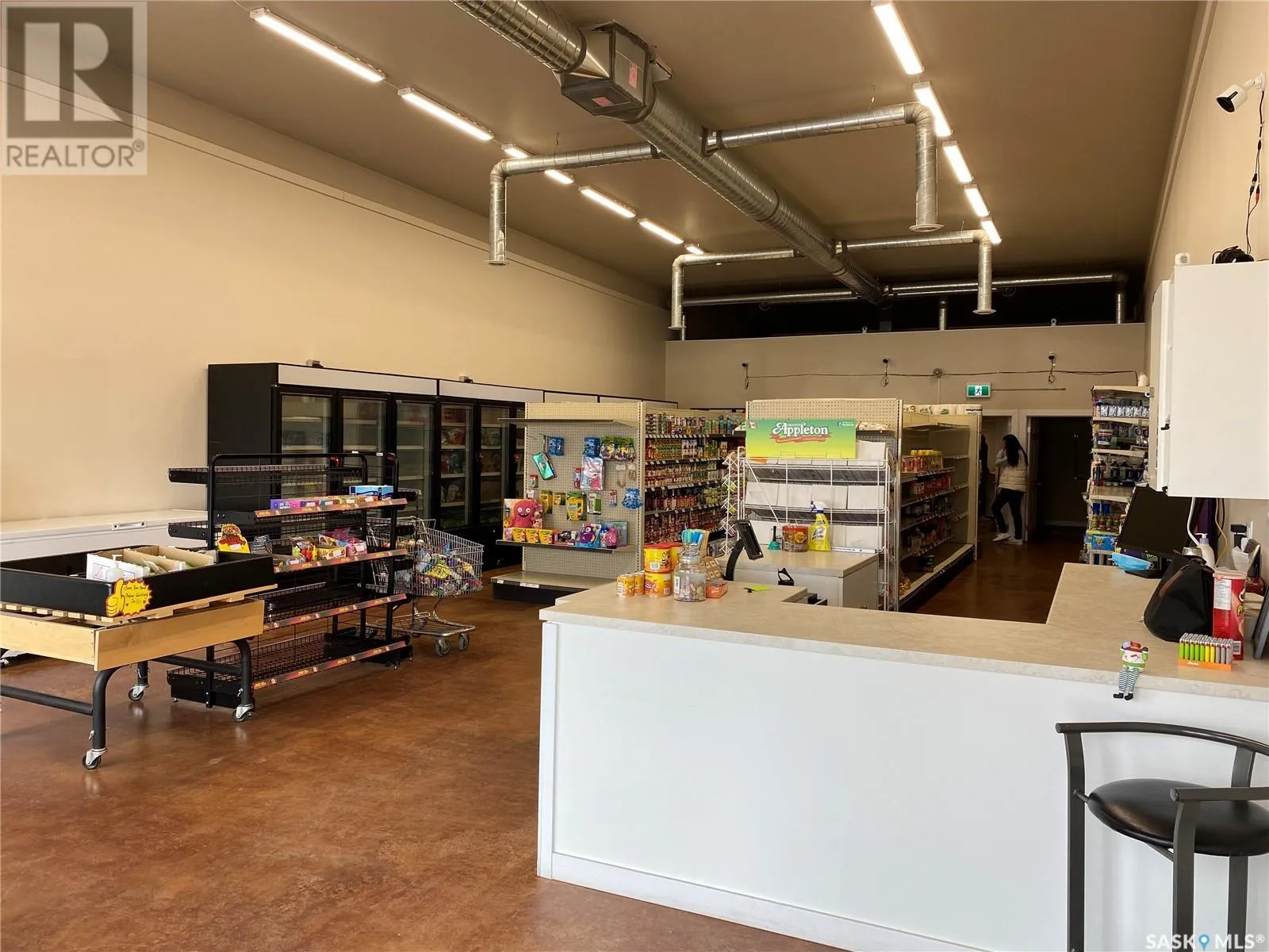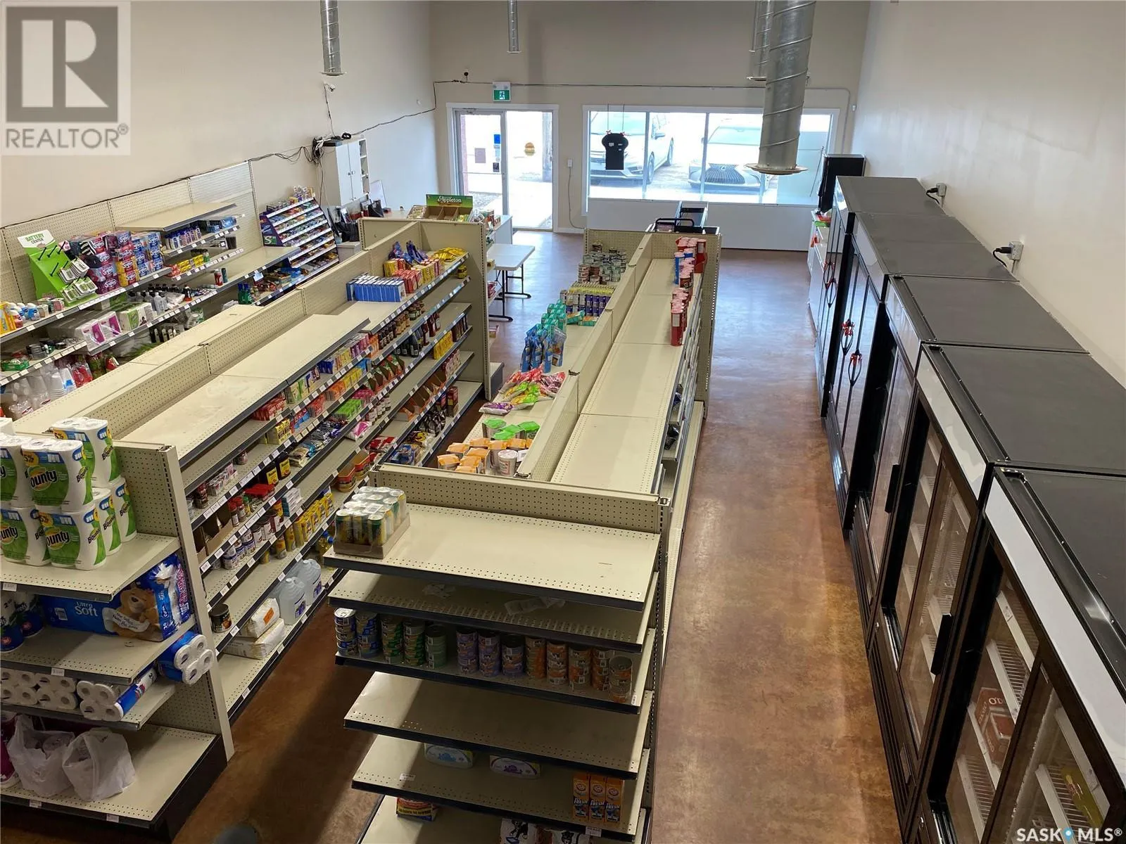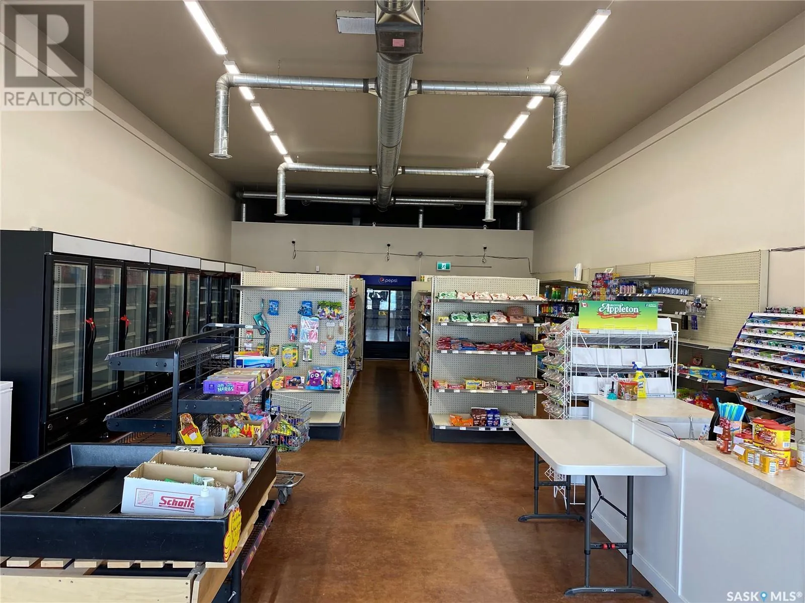 Great investment opportunity for commercial property! located 15 minutes from Saskatoon. This space was previously used as a grocery store and is vacant now. This property has a bright & rectangle retail space at the front with some counters. A big storage space at the back with an employee bathroom and a room for owner's use on the 2nd floor. all the renovation are permitted. There is no occupancy cost; Owner pays his own water, power, gas and property tax; (id:27476)