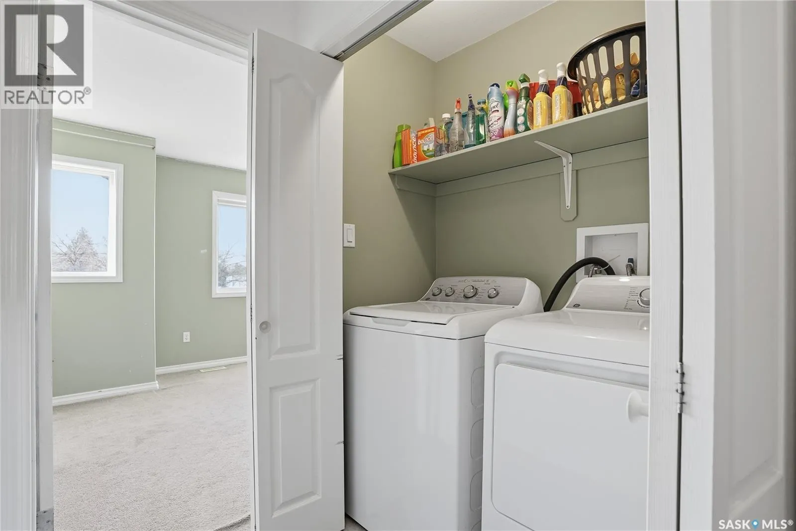 Located in the welcoming community of Aberdeen, just a short 20-minute drive from Saskatoon. This 2008 built two storey home offers three spacious bedrooms on the second level and three bathrooms, including a primary bedroom with a walk-in closet and 3-piece ensuite. The main floor features an open-concept living and kitchen area with hardwood flooring, 2 piece bathroom, a spacious kitchen with corner pantry, and back entrance to the deck and fully fenced yard. Upstairs, youâll find a second-floor laundry area for added convenience as well as a full bathroom. The stucco exterior provides a clean, low-maintenance finish and excellent curb appeal. There is potential for a future garage or additional parking at the back with lane access. Aberdeen is a family-friendly town with excellent local amenities, including a recreation complex with a rink, gym, and community rooms, as well as Kâ12 schooling right in town. Residents enjoy a safe, community-oriented lifestyle with local events and gatherings, while still being close to Saskatoon for shopping, dining, and services. This home is ideal for families looking for a balance of small-town living with city accessibility, offering a bright, open main floor & functional layout. (id:27476)