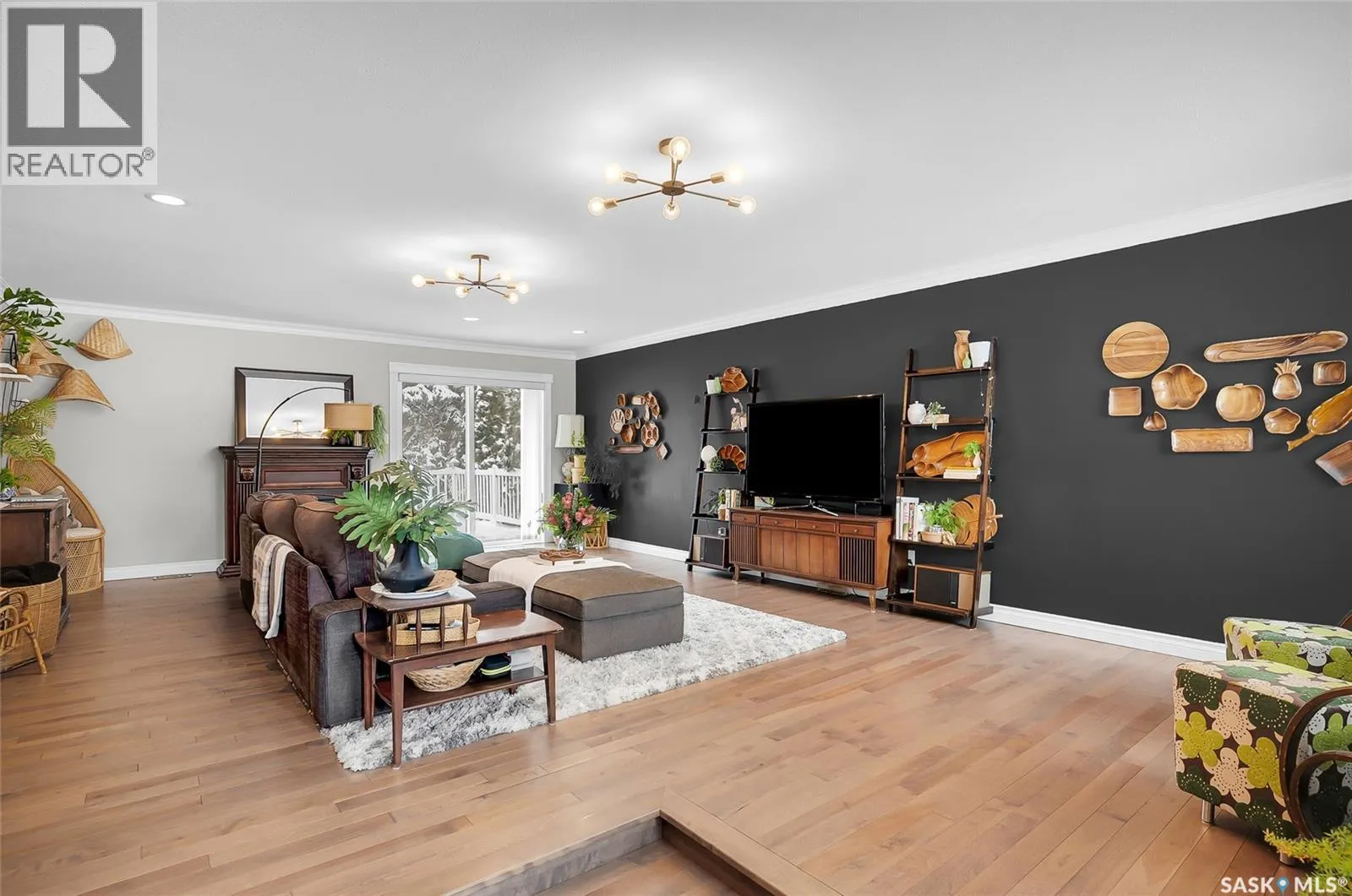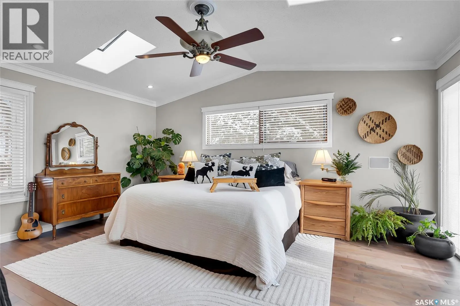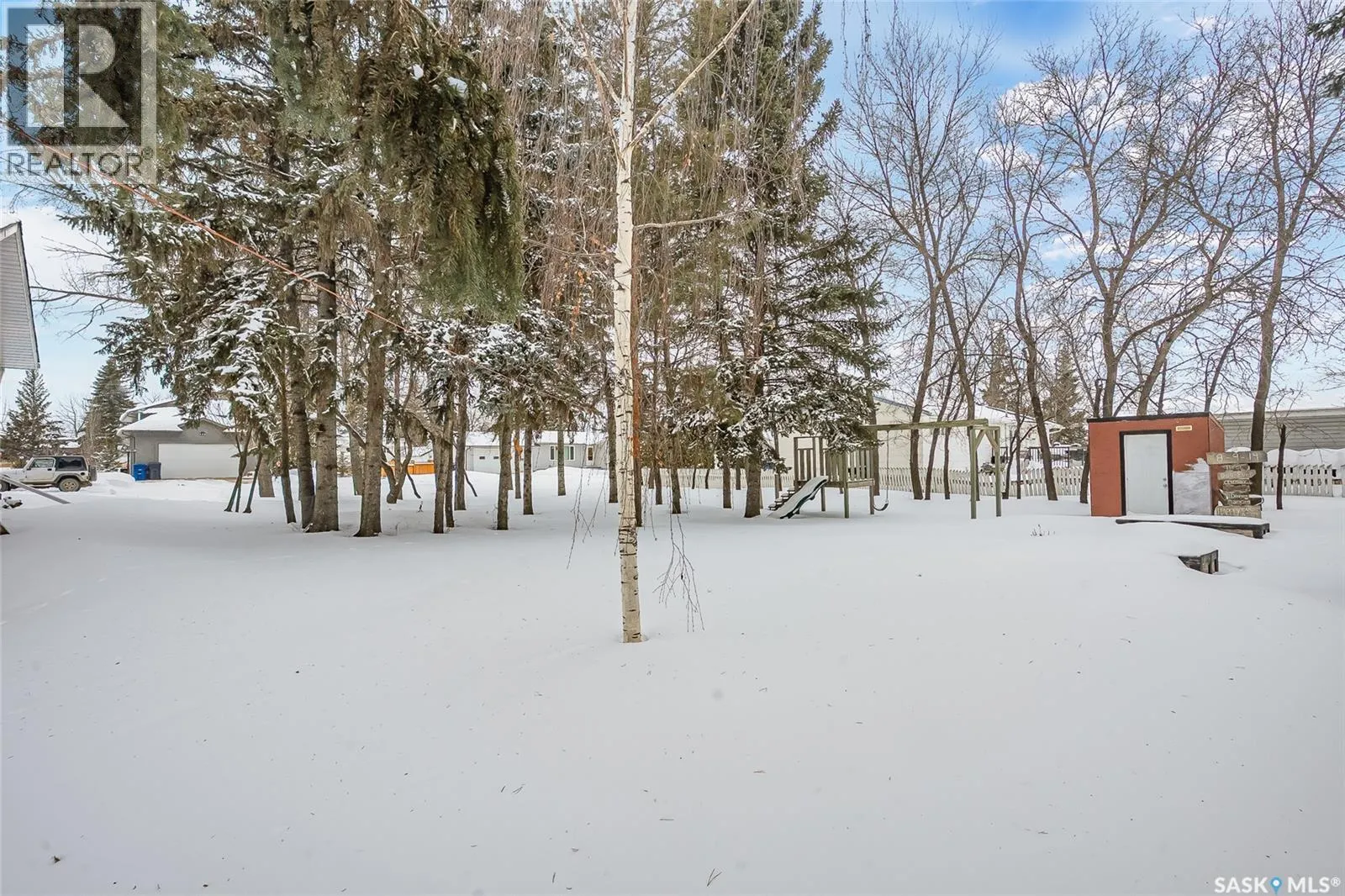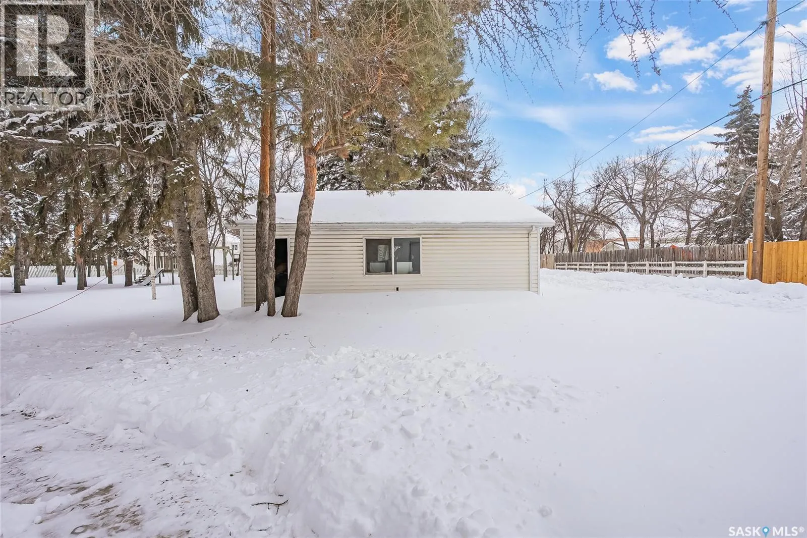 Welcome to 111 Norman Avenue in Aberdeen, where you get full on acreage energy without leaving town! Sitting on four lots wrapped in mature trees and privacy, this property feels like youâre living at the lake, yet youâre just minutes to Highway 11 for an easy commute to Warman, Saskatoon, or a quick escape north to Lakeland. This thoroughly updated bungalow brings the vibe with hardwood throughout the main floor, a bright modern 4-piece bath with updated plumbing (2025), and a primary bedroom that honestly feels like a boutique retreat â vaulted ceilings, skylight, built-in speakers, patio doors (replaced 2015) leading to the deck, plus a dreamy ensuite with soaker tub and your own dry sauna. The oversized living room (converted from the original attached garage) gives you that open, flexible space perfect for hosting, creating, or just spreading out, while the basement is wired for a projector so movie nights hit different. Major upgrades bring peace of mind: shingles redone in 2024, sewer line replaced from the town to the house (cost shared between seller and town), attic insulation topped up in 2022, plumbing updated in the kitchen in 2025, furnace tuned up with parts replaced in 2025, and appliances replaced in 2014 (fridge updated in 2016). With central air and thoughtful improvements throughout, this home is truly move-in readyâ¦.but the real flex? Two detached garages (single and double), with 220 power in the single garage, two driveways, nine off-street parking spots, RV parking, and endless room for hobbies, side hustles, car builds, boats, trailers, and all the toys. The massive back deck and private yard make everyday life feel like a weekend getaway. If youâve been craving space, freedom, and a slower pace without sacrificing connection, this is that rare small-town lifestyle upgrade that just makes sense. (id:27476)