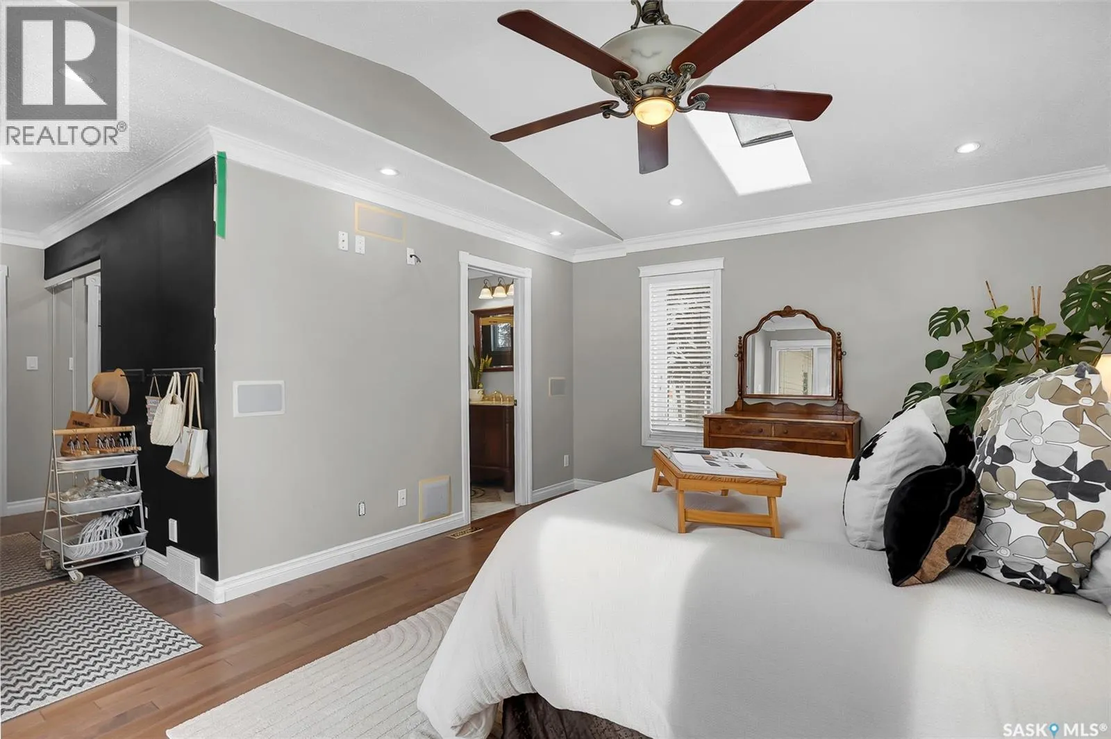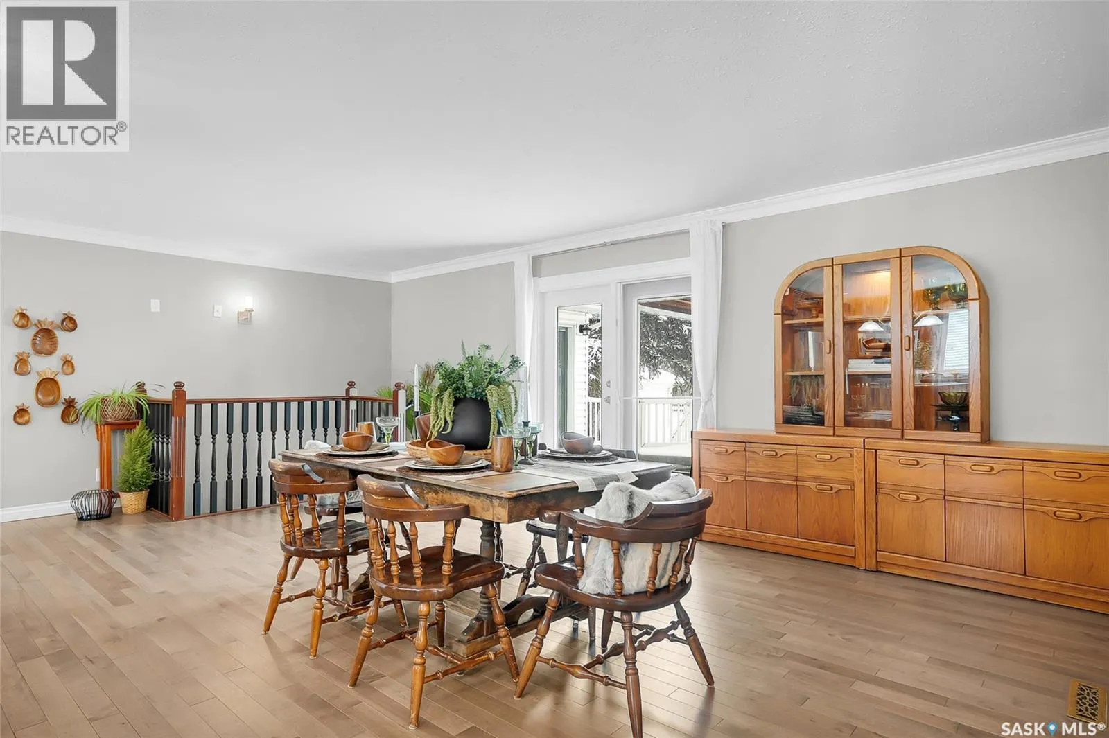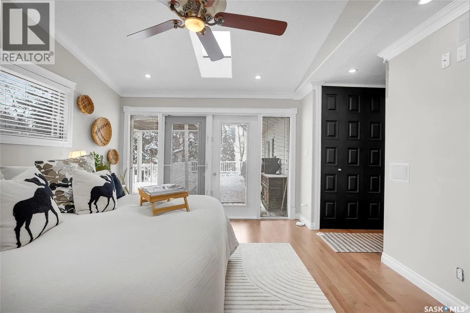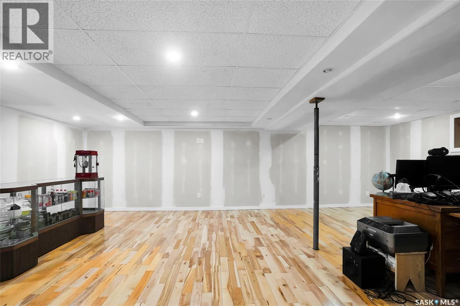 Welcome to 111 Norman Avenue in Aberdeen, where you get full on acreage energy without leaving town! Sitting on four lots wrapped in mature trees and privacy, this property feels like youâre living at the lake, yet youâre just minutes to Highway 11 for an easy commute to Warman, Saskatoon, or a quick escape north to Lakeland. This thoroughly updated bungalow brings the vibe with hardwood throughout the main floor, a bright modern 4-piece bath with updated plumbing (2025), and a primary bedroom that honestly feels like a boutique retreat â vaulted ceilings, skylight, built-in speakers, patio doors (replaced 2015) leading to the deck, plus a dreamy ensuite with soaker tub and your own dry sauna. The oversized living room (converted from the original attached garage) gives you that open, flexible space perfect for hosting, creating, or just spreading out, while the basement is wired for a projector so movie nights hit different. Major upgrades bring peace of mind: shingles redone in 2024, sewer line replaced from the town to the house (cost shared between seller and town), attic insulation topped up in 2022, plumbing updated in the kitchen in 2025, furnace tuned up with parts replaced in 2025, and appliances replaced in 2014 (fridge updated in 2016). With central air and thoughtful improvements throughout, this home is truly move-in readyâ¦.but the real flex? Two detached garages (single and double), with 220 power in the single garage, two driveways, nine off-street parking spots, RV parking, and endless room for hobbies, side hustles, car builds, boats, trailers, and all the toys. The massive back deck and private yard make everyday life feel like a weekend getaway. If youâve been craving space, freedom, and a slower pace without sacrificing connection, this is that rare small-town lifestyle upgrade that just makes sense. (id:27476)